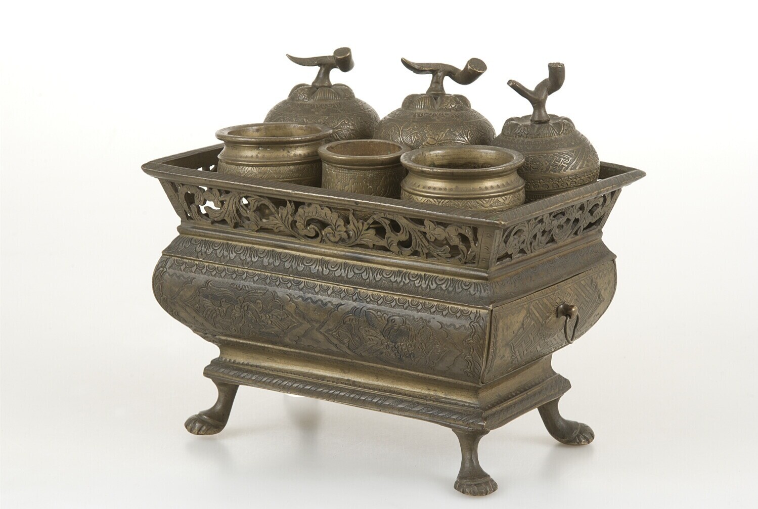 Messingen sirihbak, onderdeel van een messingen siri...