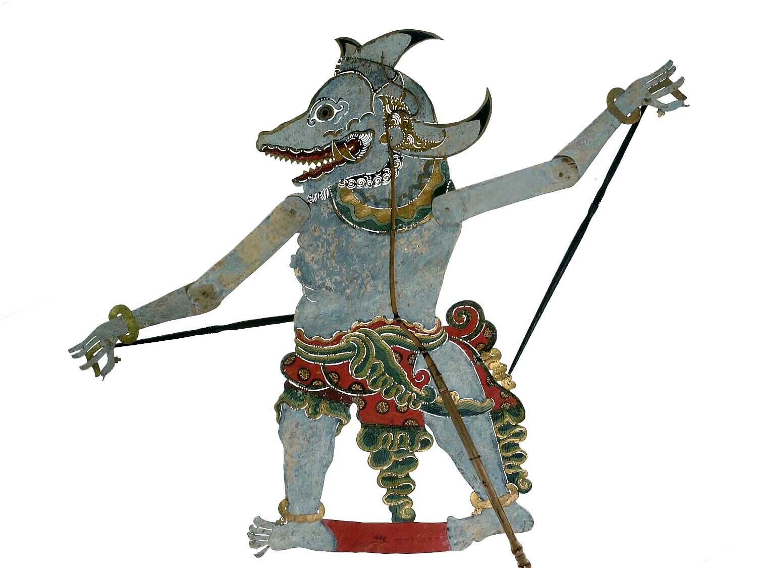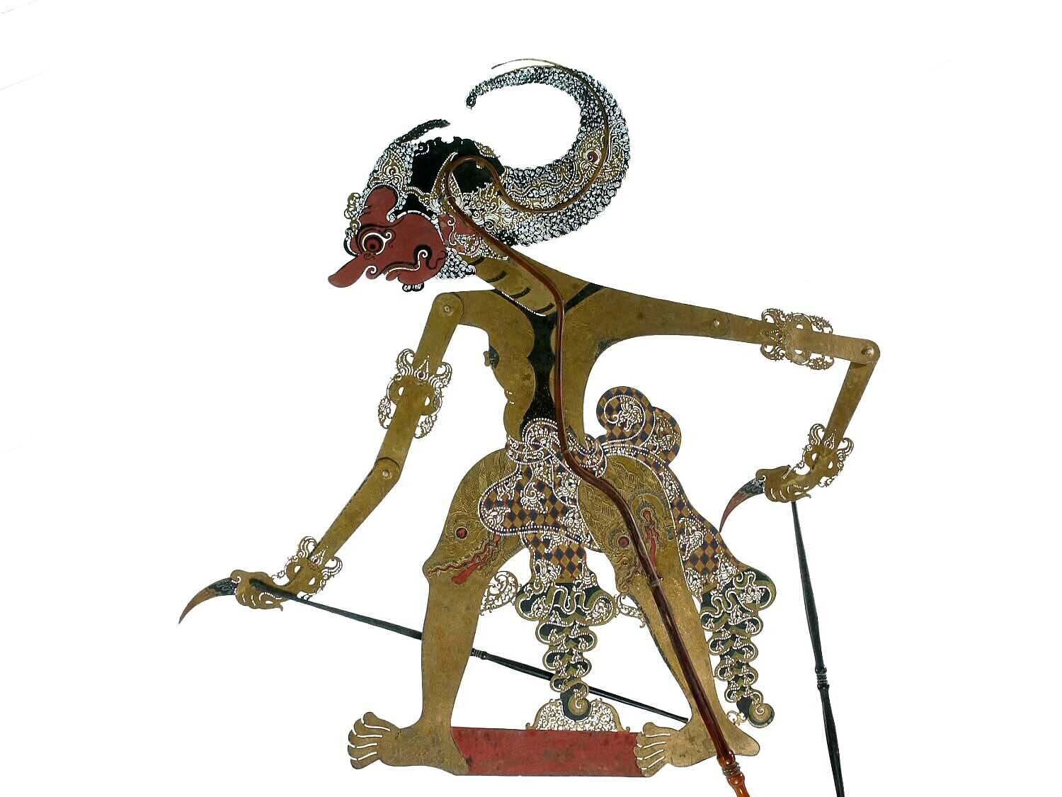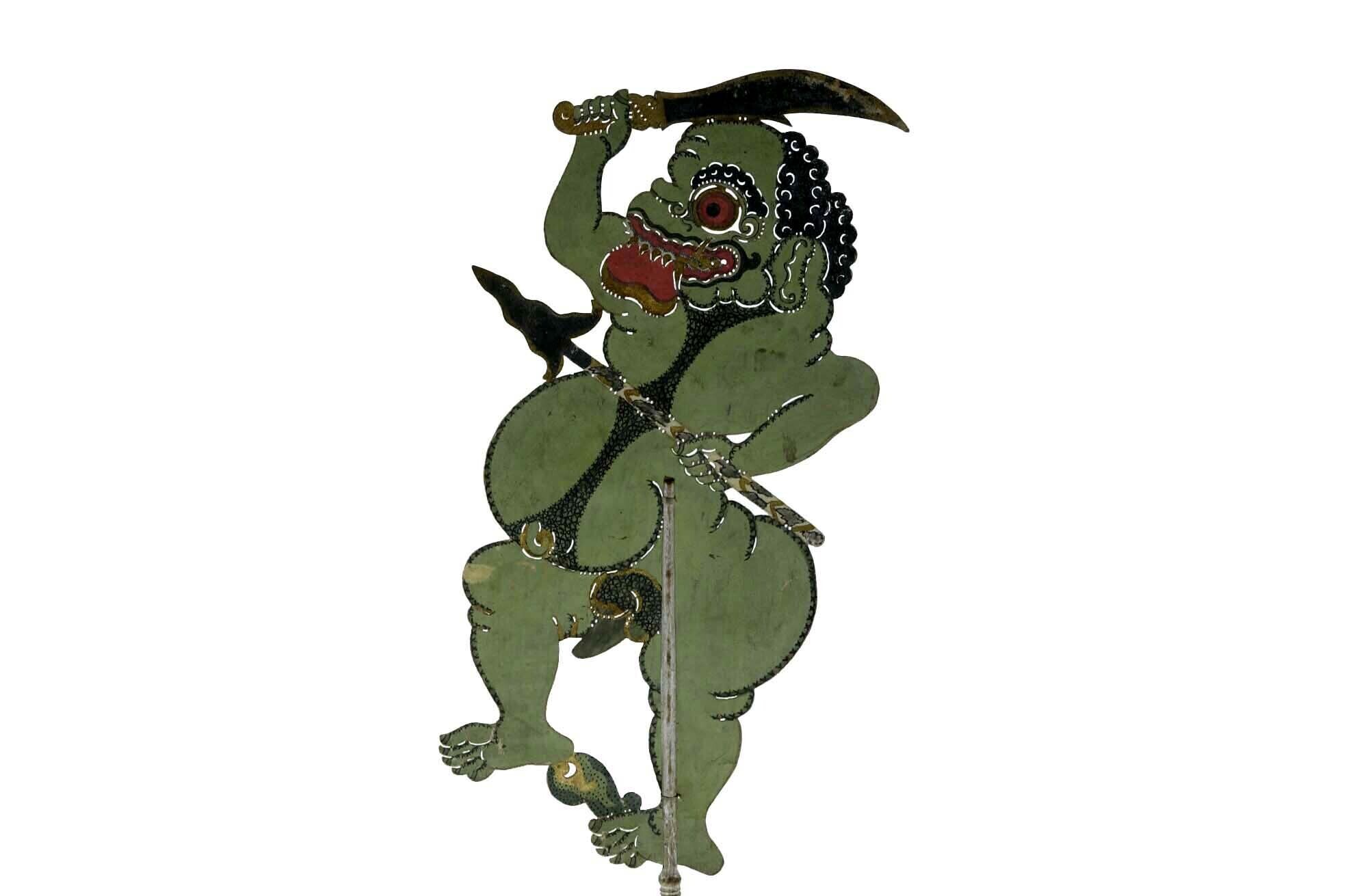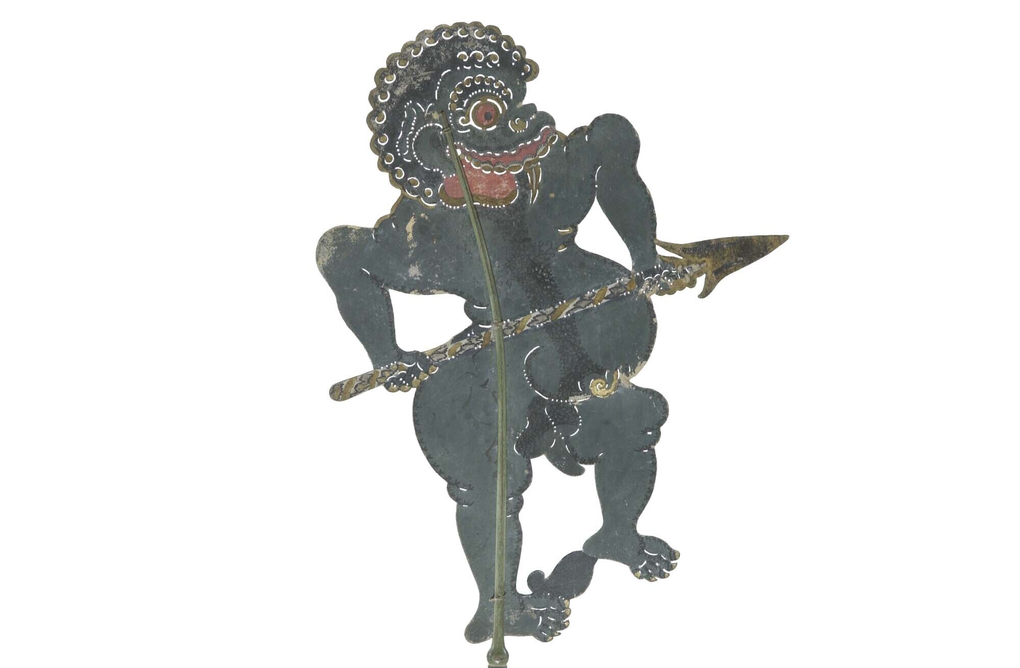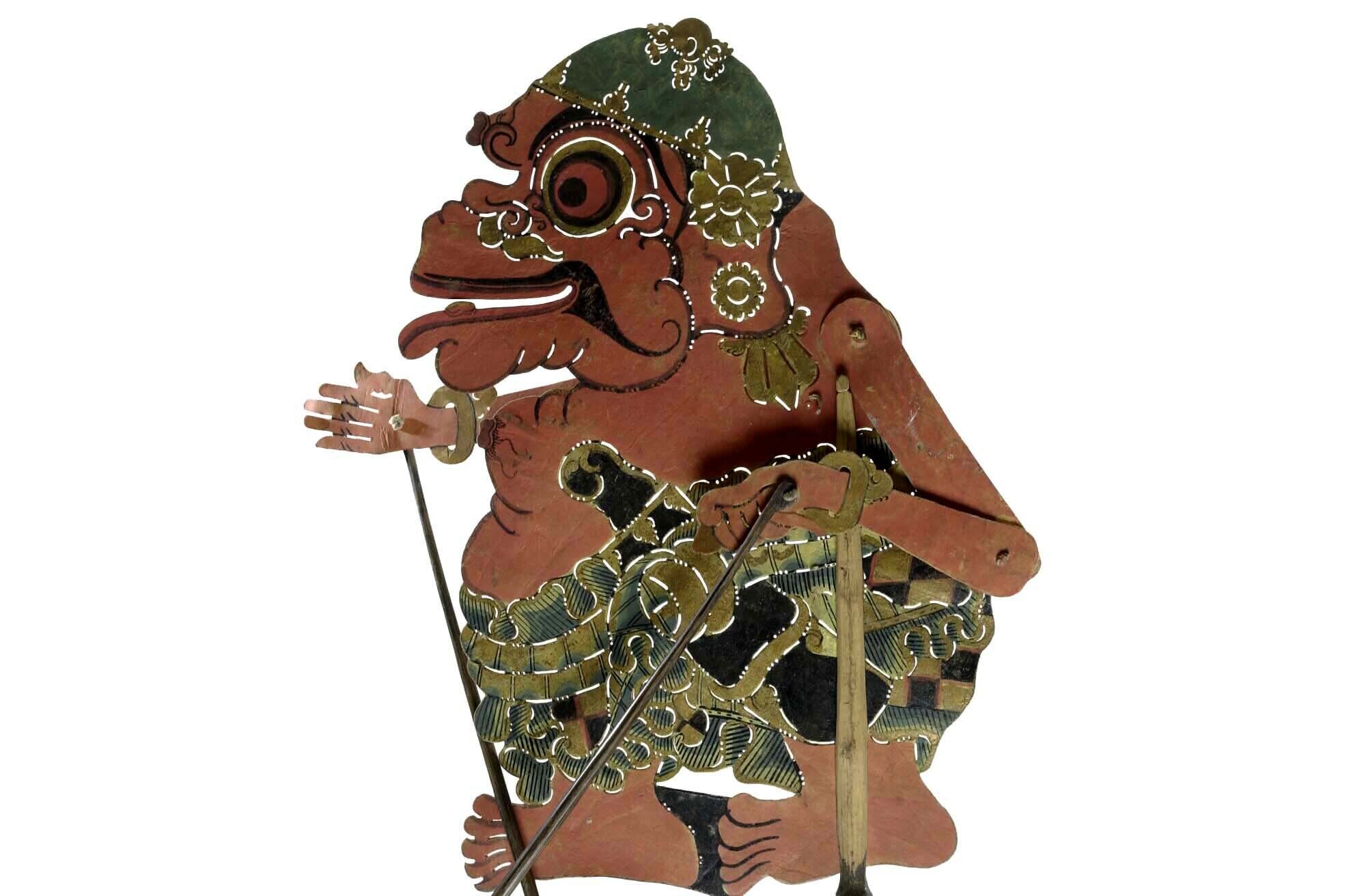 Wajangpop, demonenfiguur met wijd openstaande bek en...