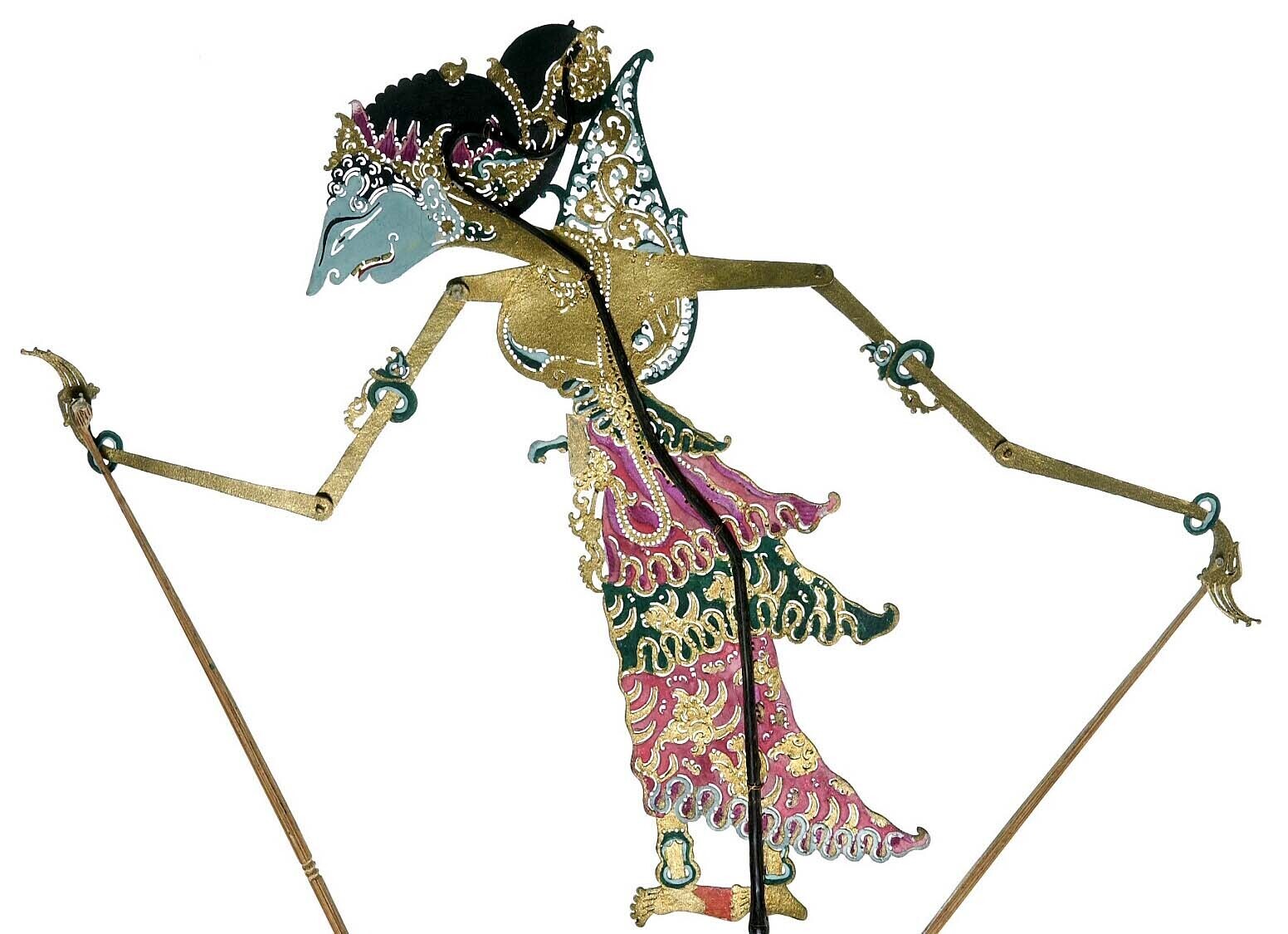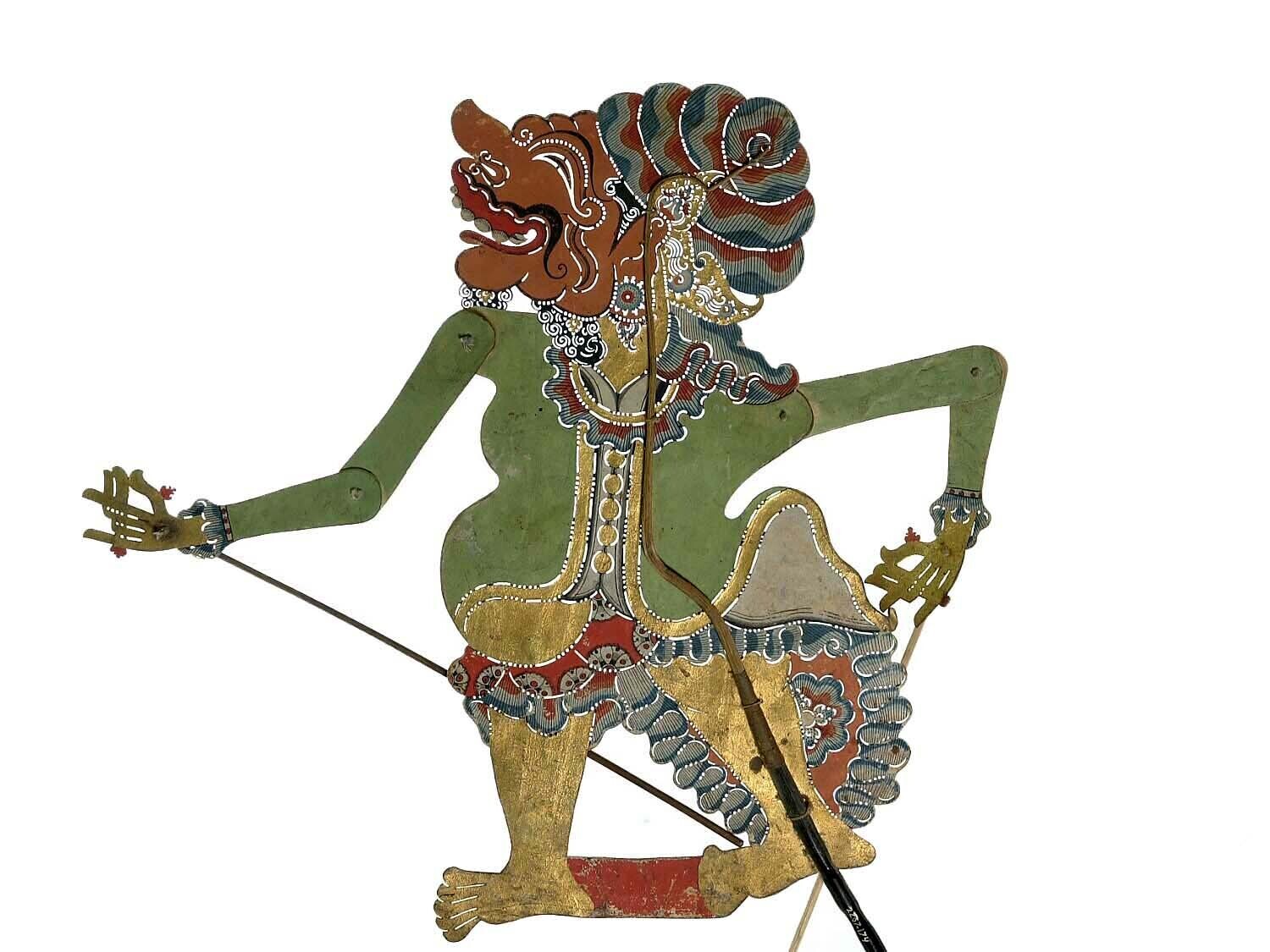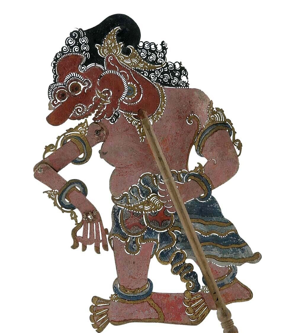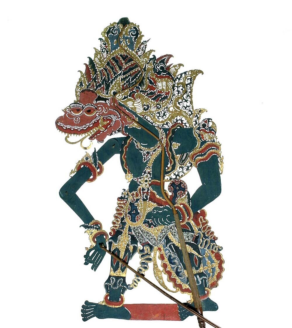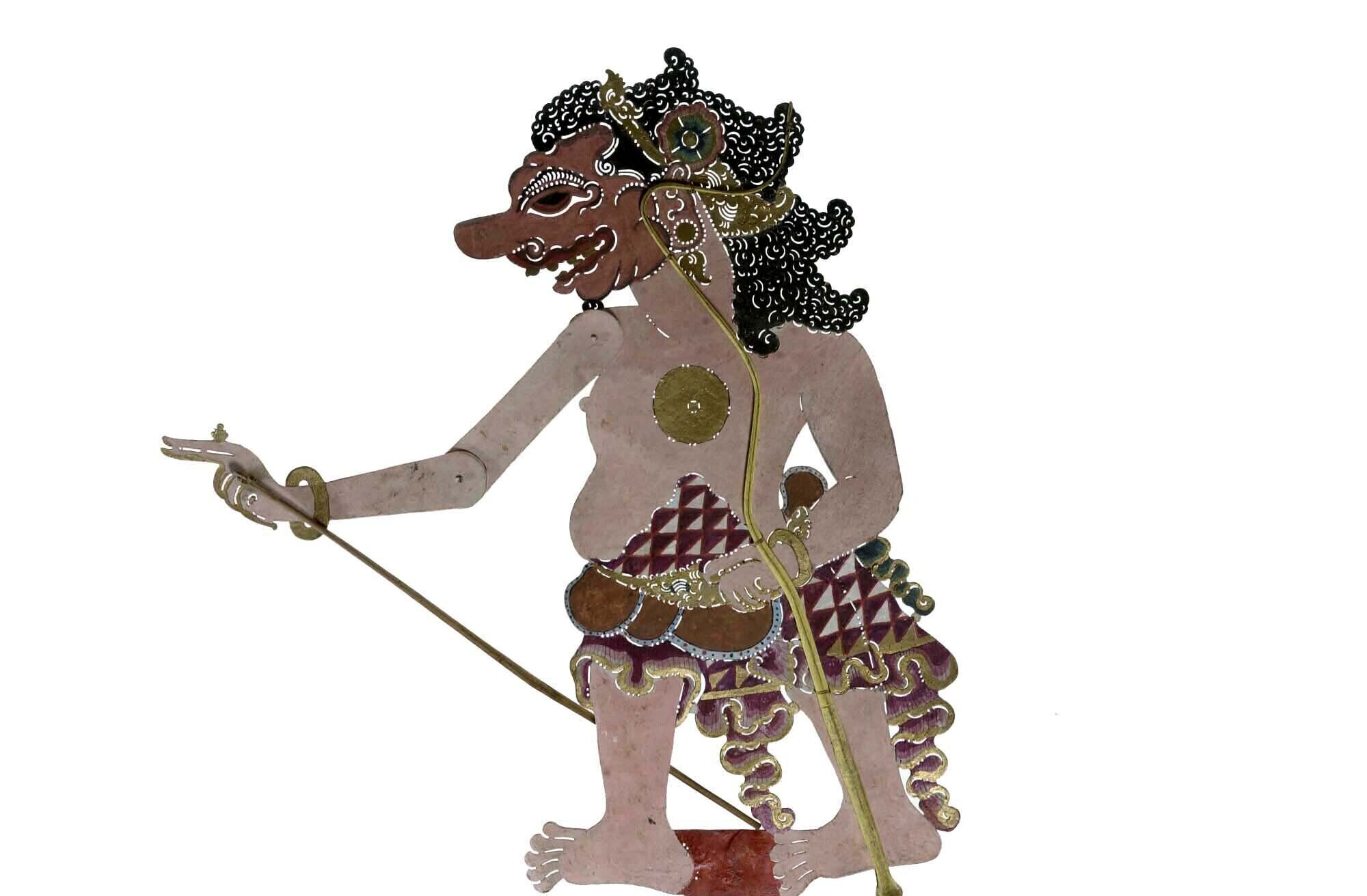 Wajangpop, demonenfiguur met wijd openstaande bek en...