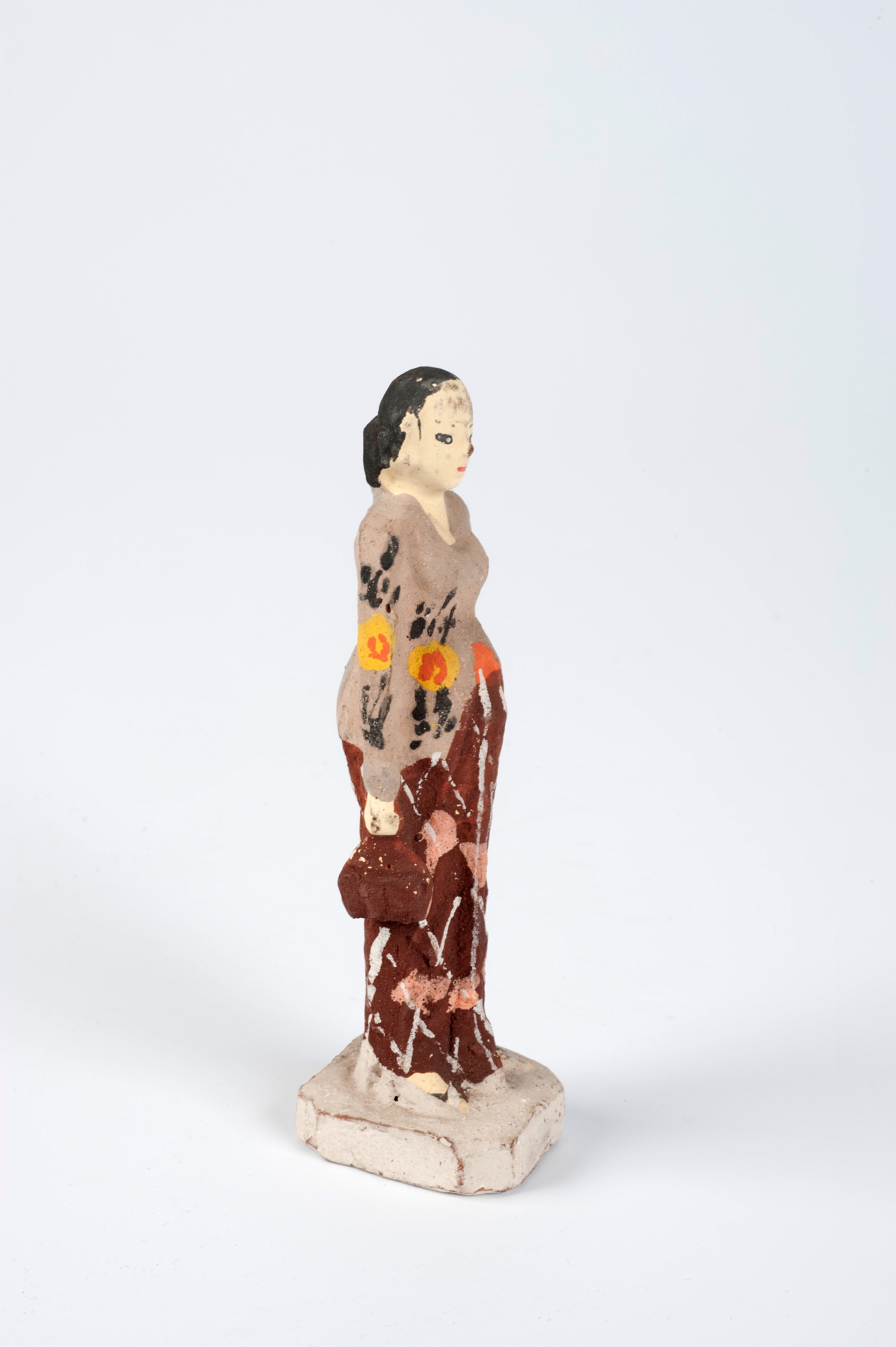 Beschilderd beeld van aardewerk in de vorm van een z...