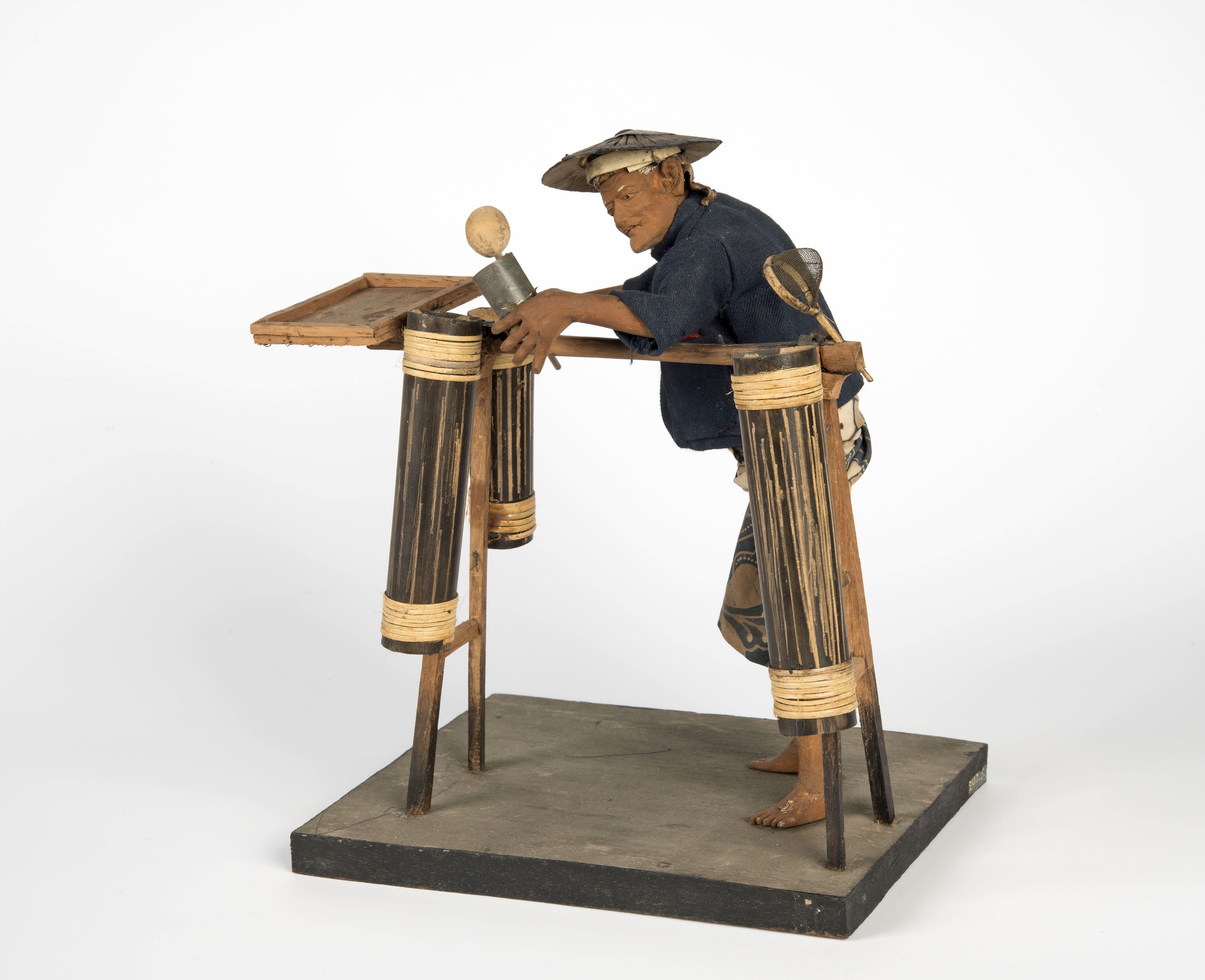 Model van een palmwijnverkoper met attributen