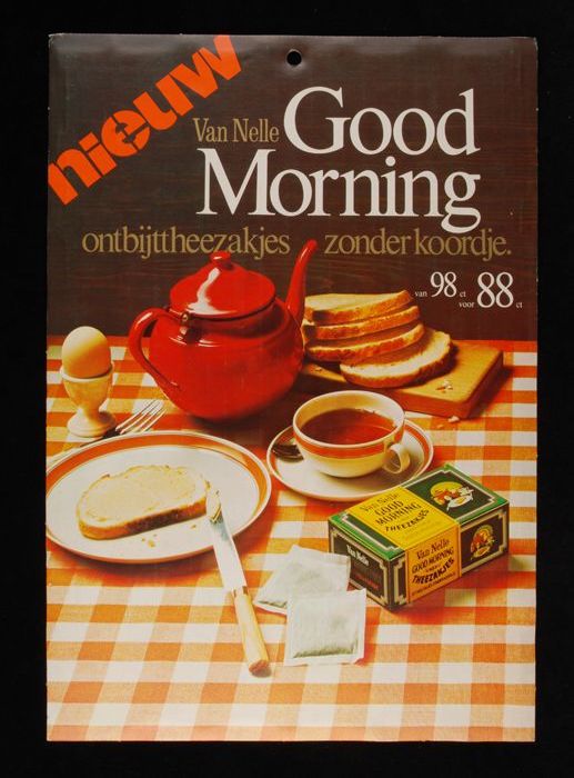 Twee reclameborden "Good Morning" ontbijttheezakjes ...