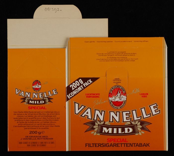 Plat gevouwen doos "VAN NELLE'S LICHTE SHAG", BM, te...