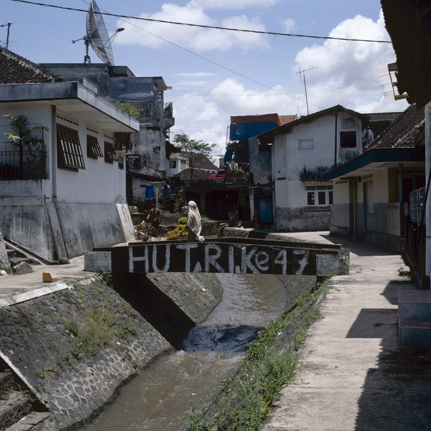 Street view in Malang, with a dish antenna on top of...