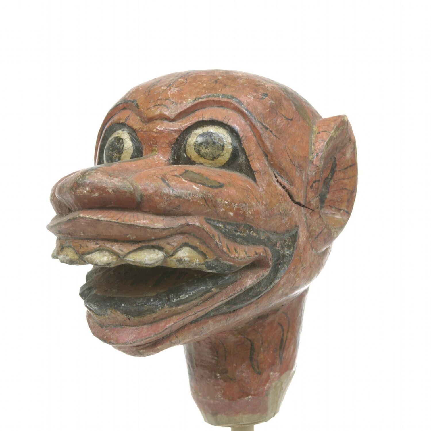 Kop van een wajangpop: aapachtig gezicht