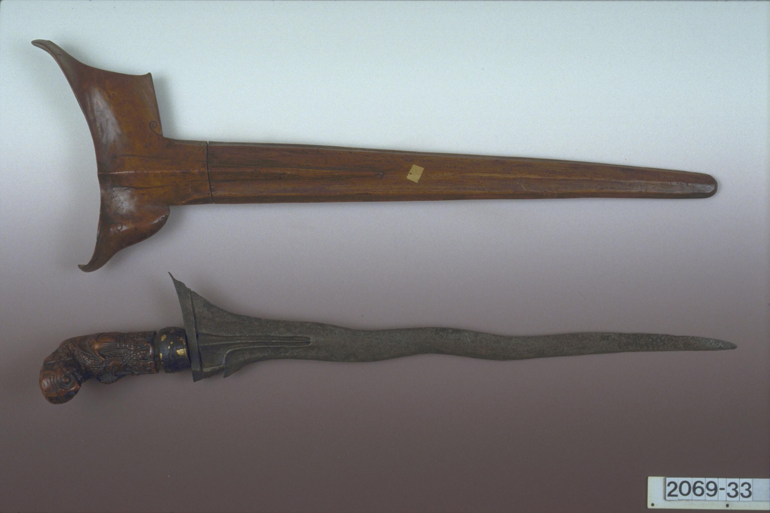 Rechte kris met houten greep en houten schede