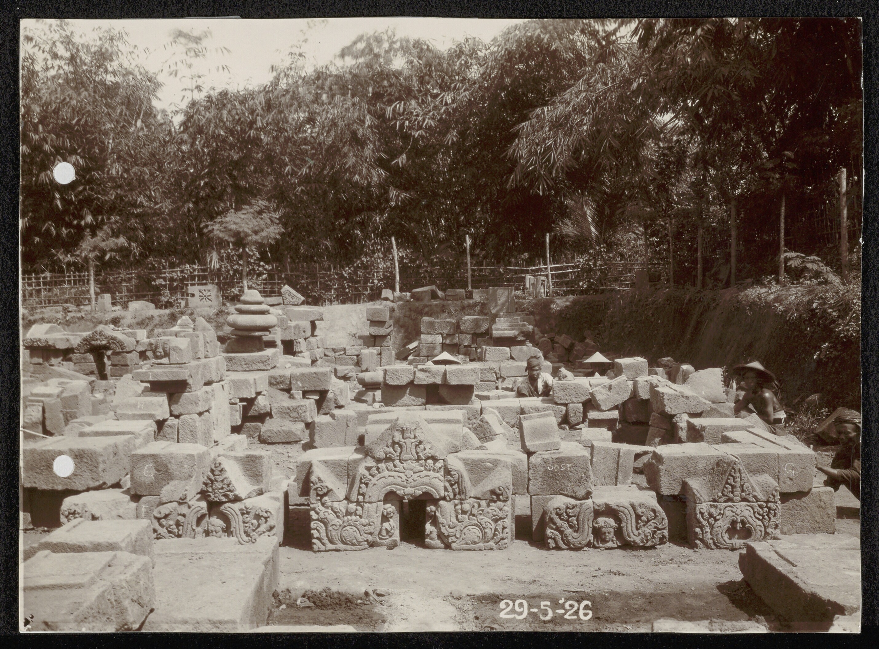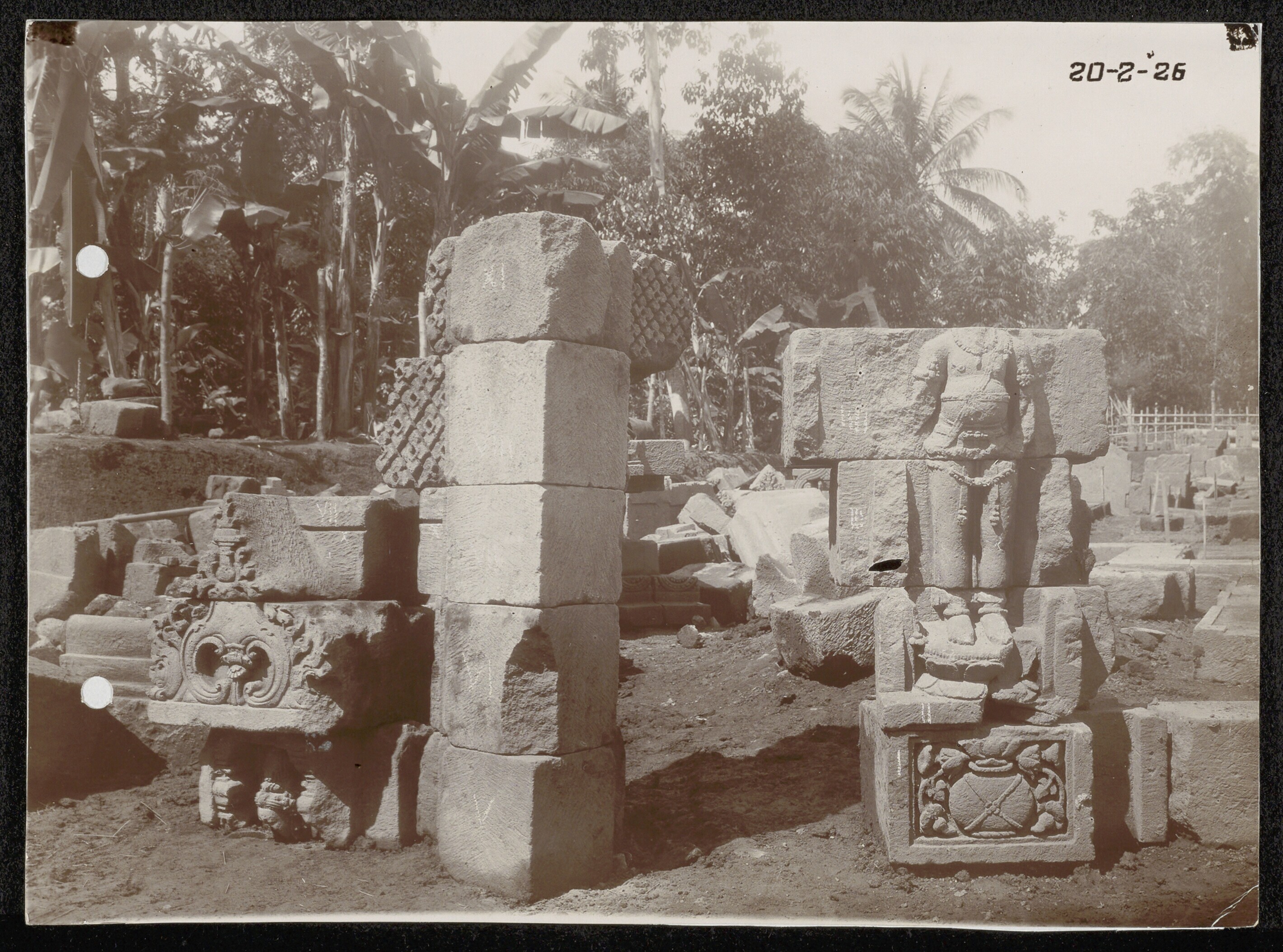Delen van een Indo-Javaanse tempel bij Karangnongko ...
