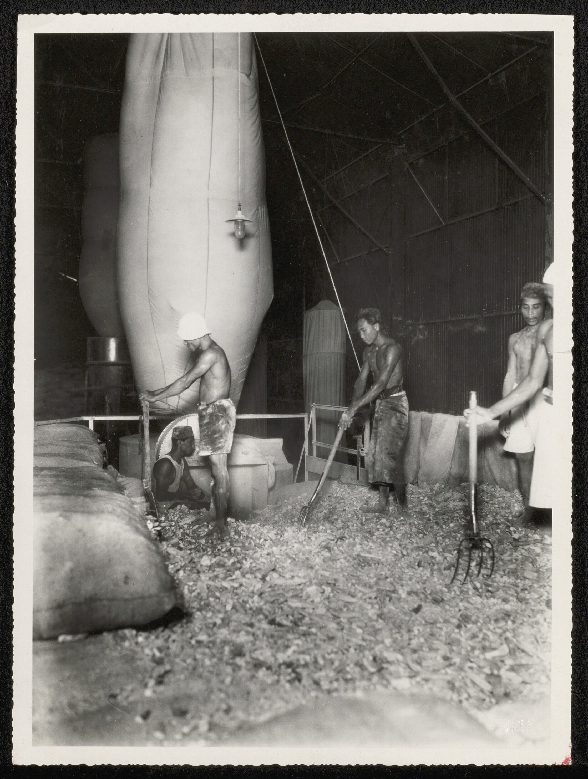 Gedroogde cassave (gaplek) in een loods te Soerabaja...