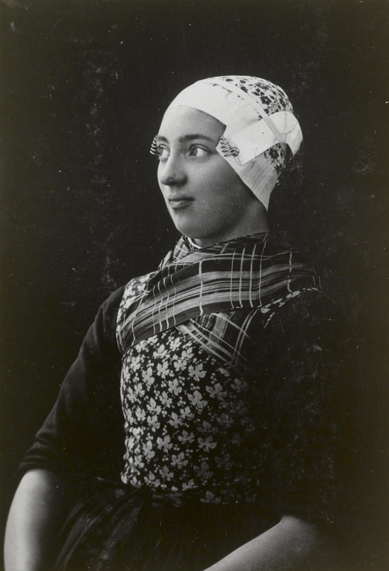 Vrouw in West-Friese streekdracht, circa 1900 (zwart...