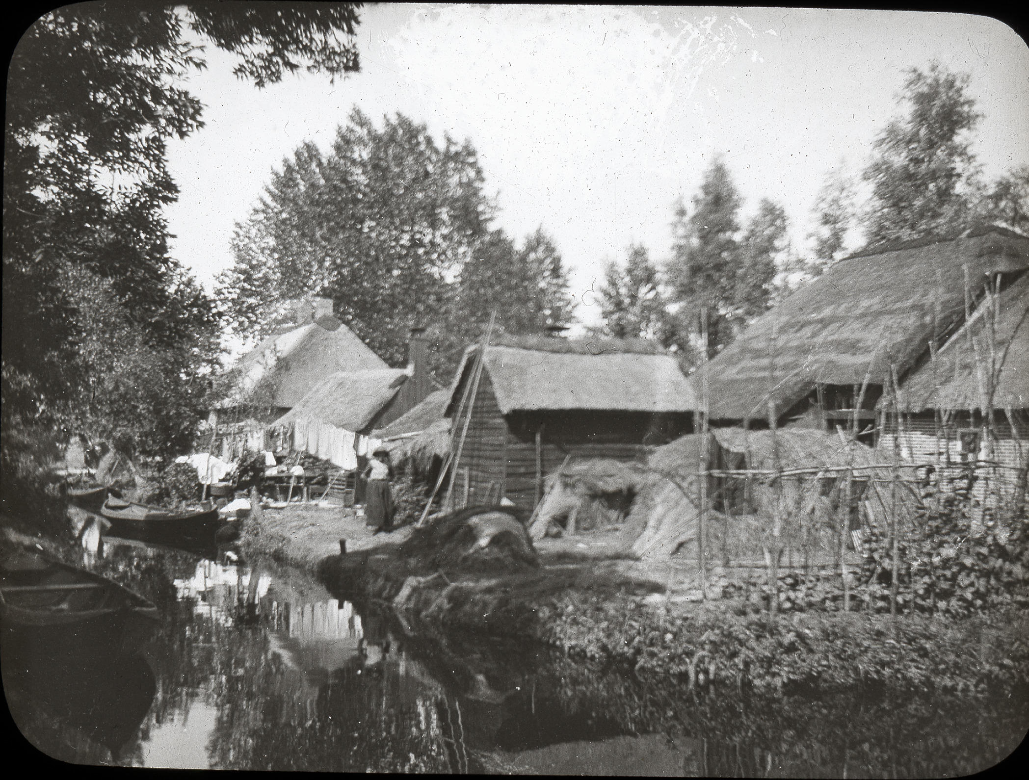 Erf, Giethoorn, vermoedelijk circa 1900 (zwart-wit dia)