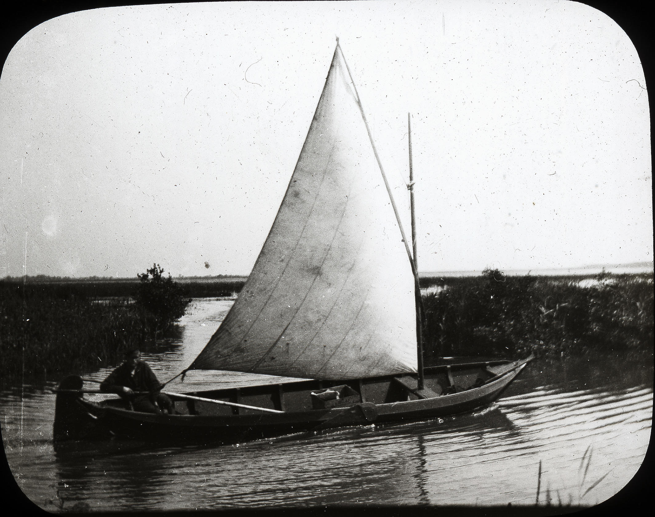 Zeilboot bij Giethoorn, vermoedelijk circa 1900 (zwa...