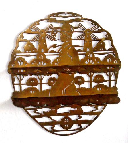Pijpenrek. Ovaal koperen rek. Opengewerkt, gezaagd ...