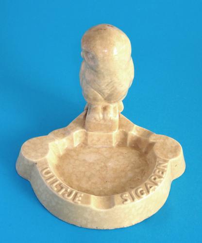 Asbak. Asbak met een opzij kijkende uil op de rand ...
