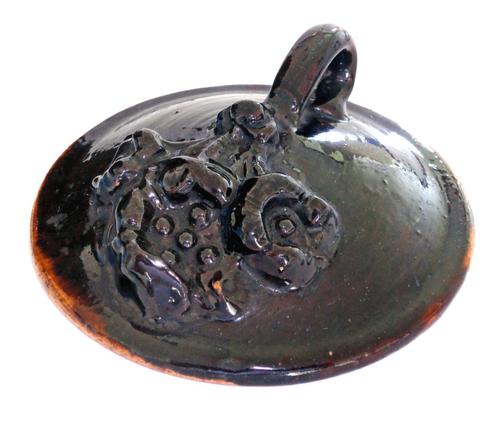 Asbak. Witte pot met bladeren versierd, berge binne...