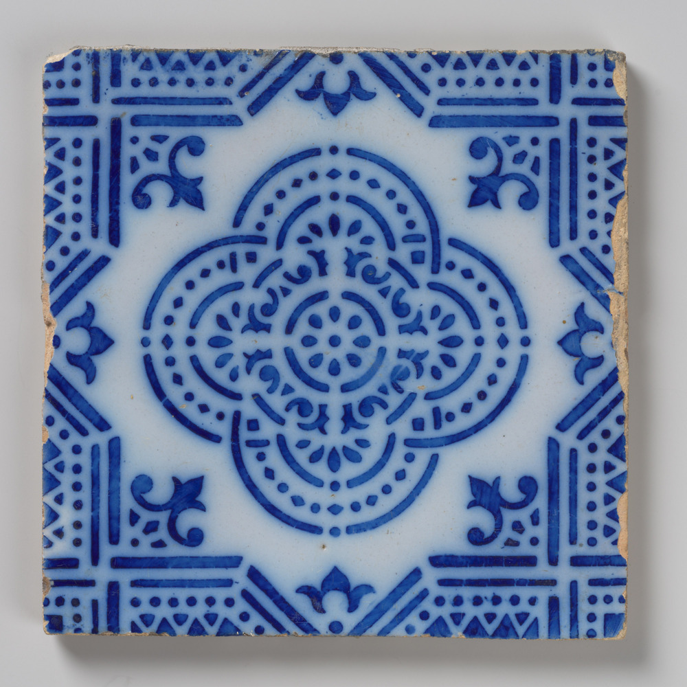 tegel van keramiek met tinglazuur, voorstellende: ro...