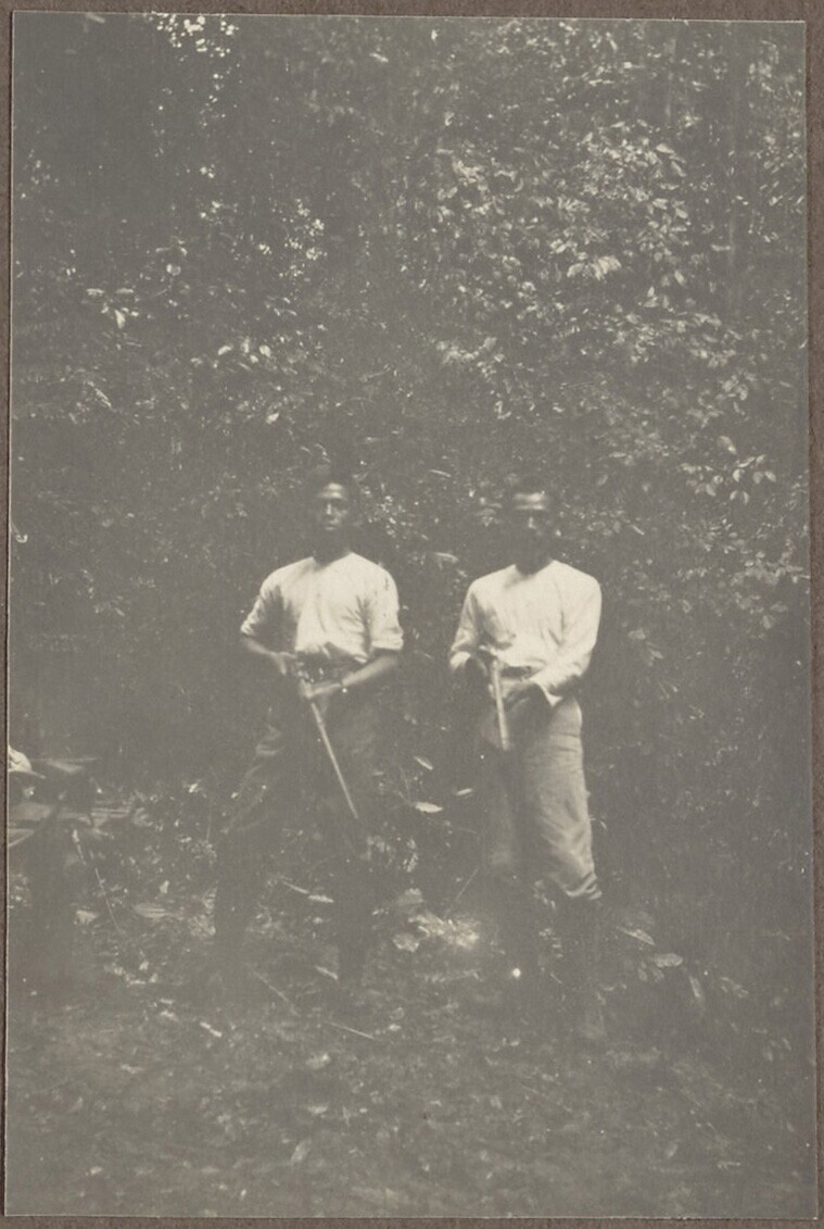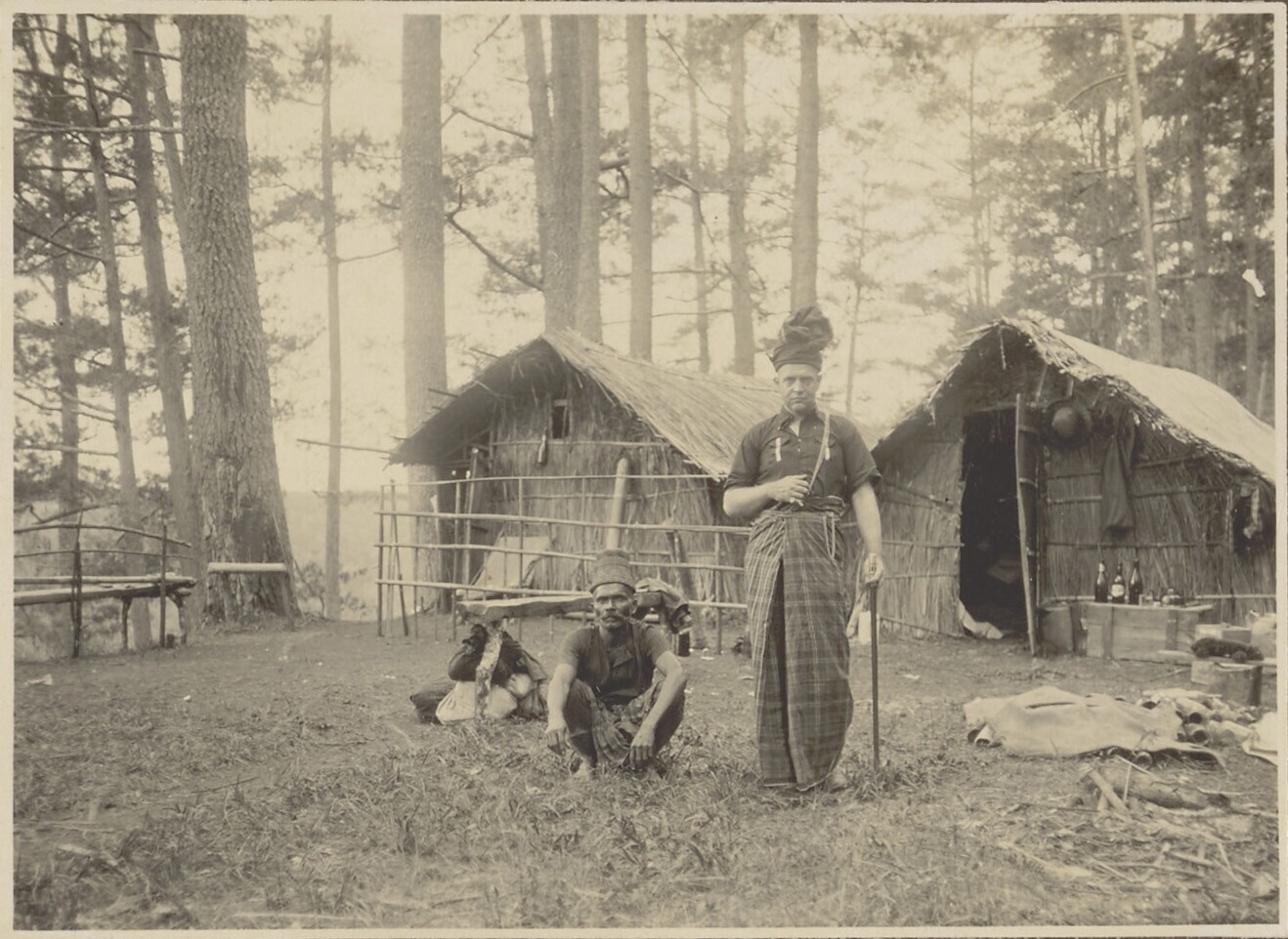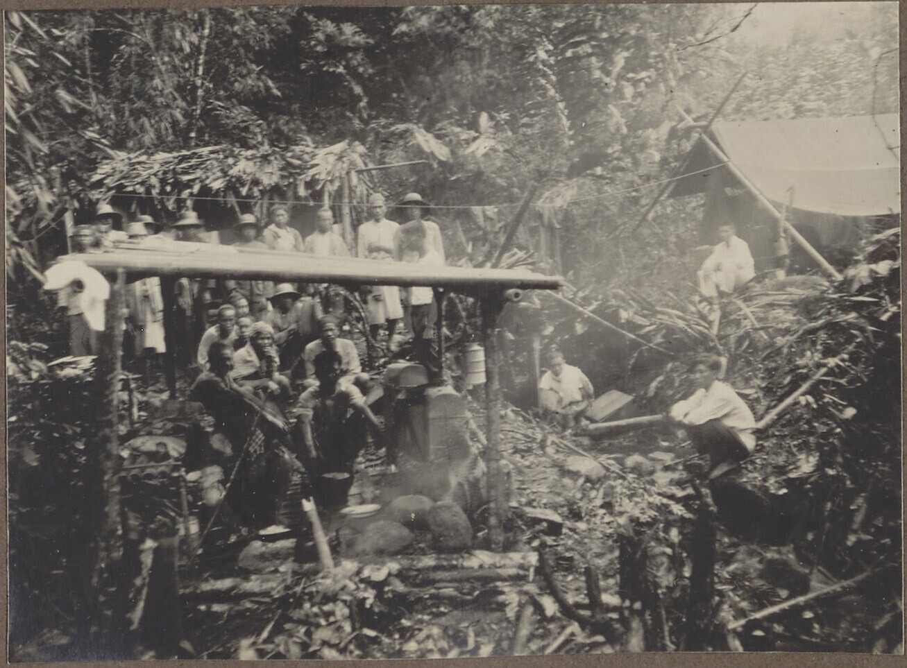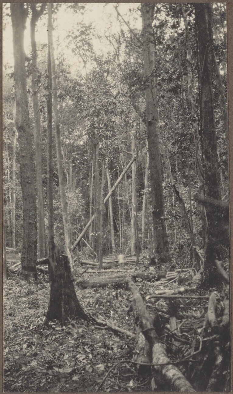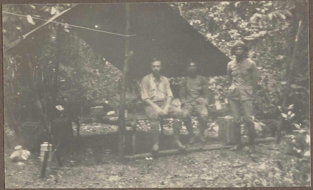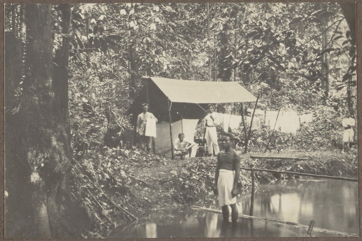 Bivak in een bos met ijzerhoutbomen, omgeving Moeara...