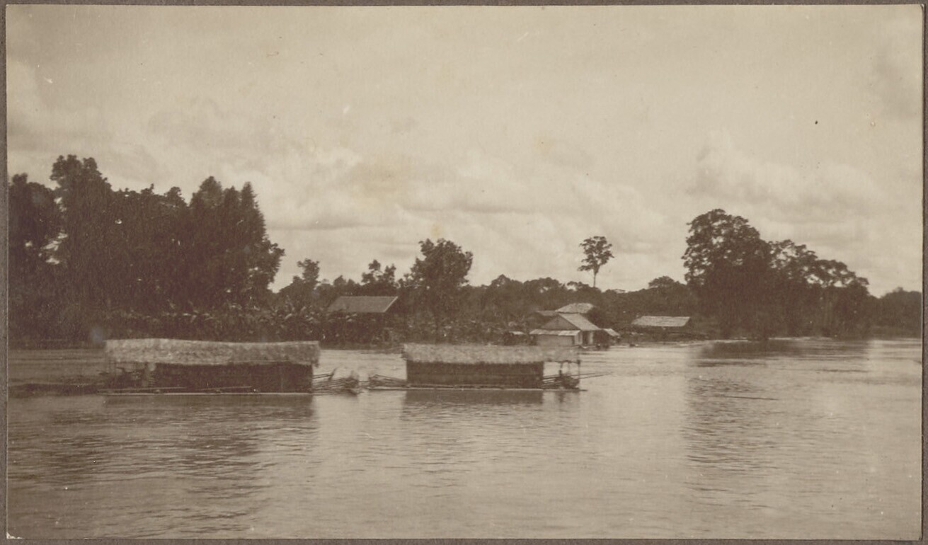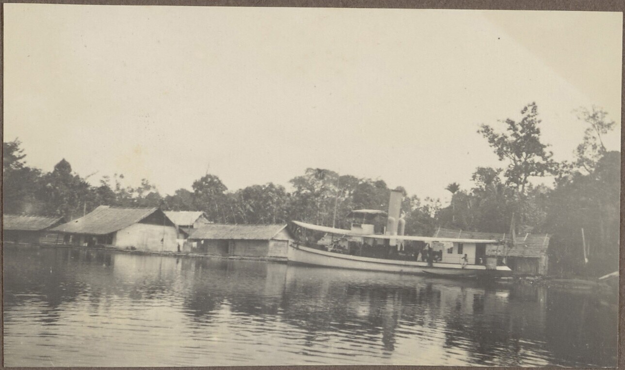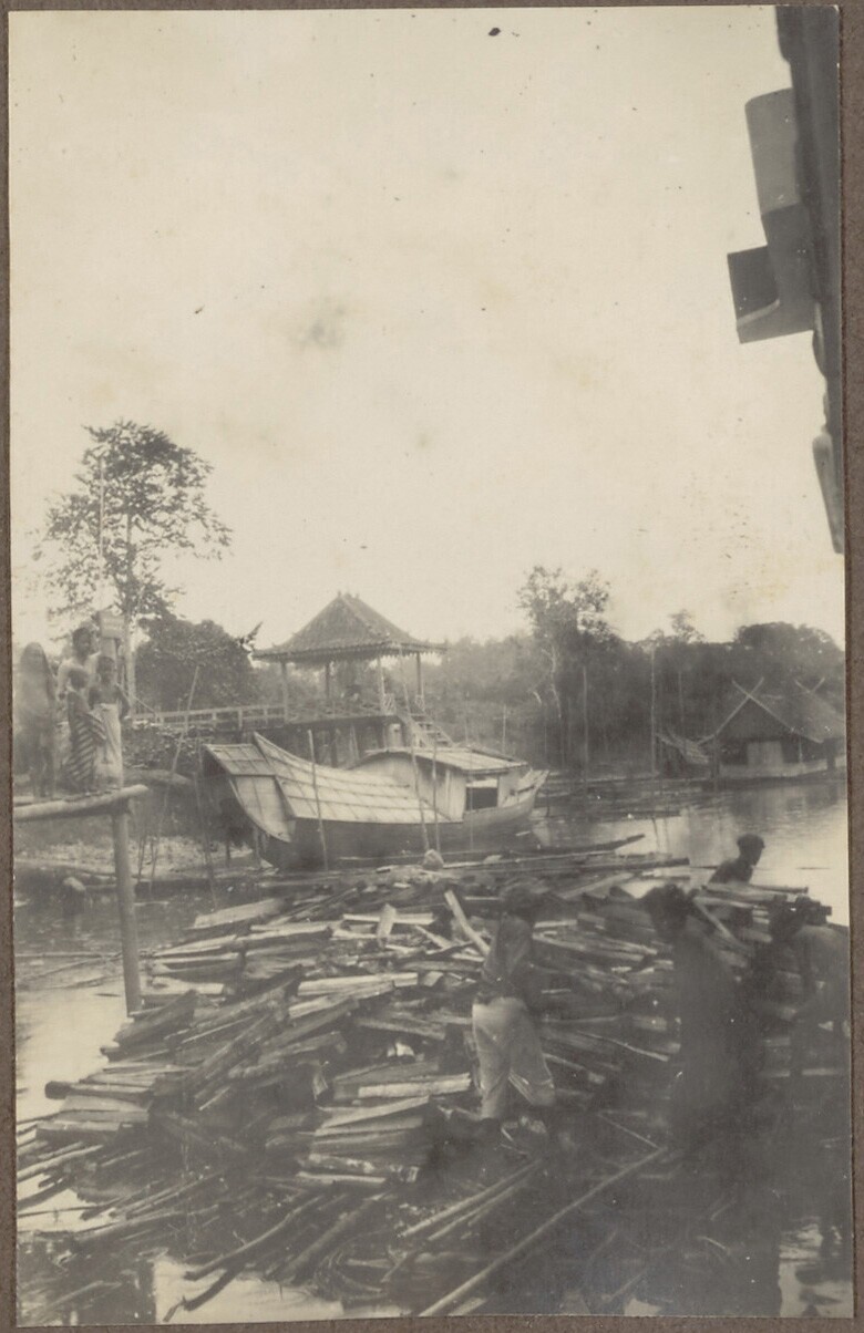 De raderboot 'Ogan' van de KPM op de rivier bij Moea...