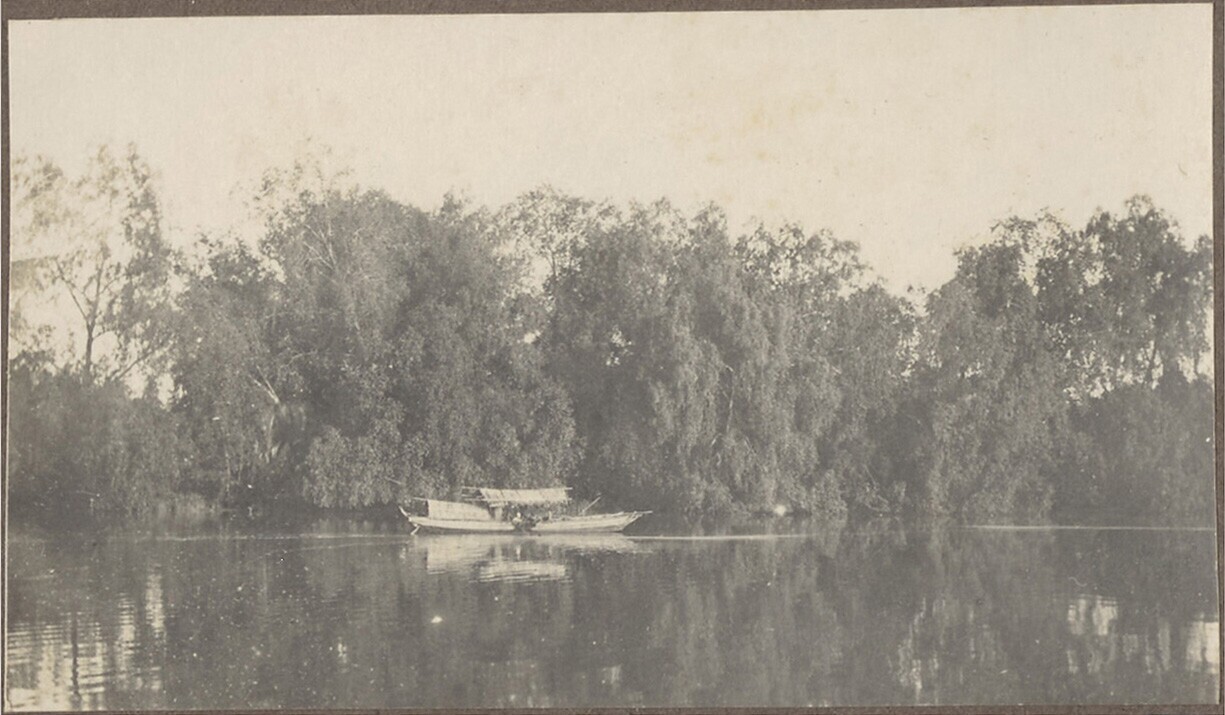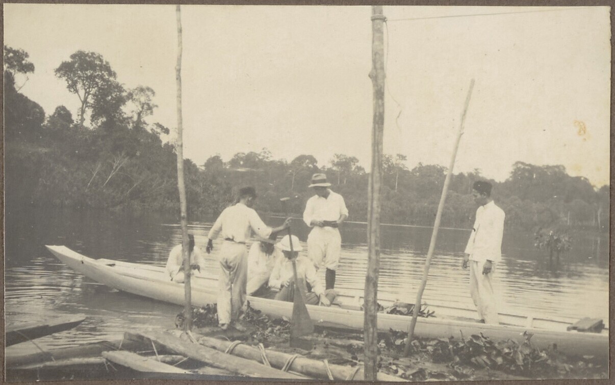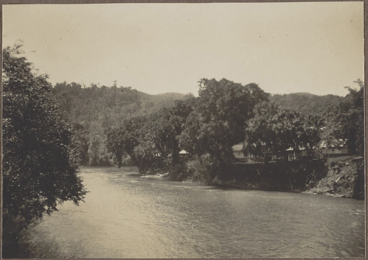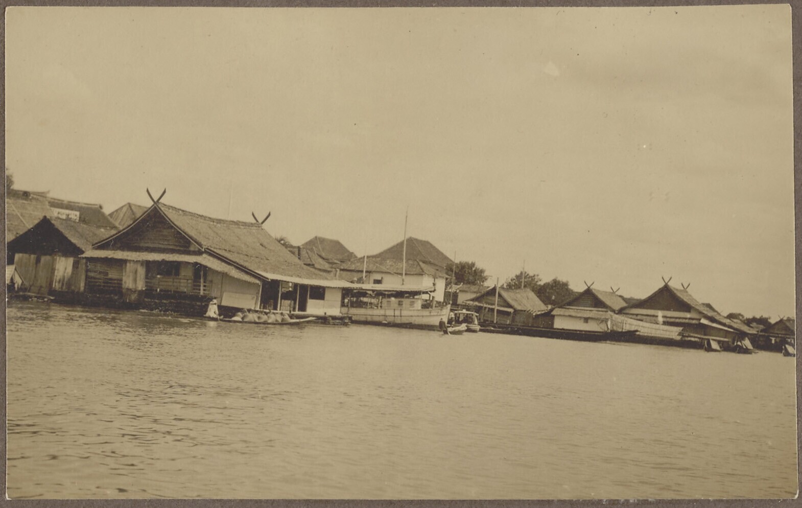 De raderboot 'Ogan' van de KPM op de rivier bij Moea...