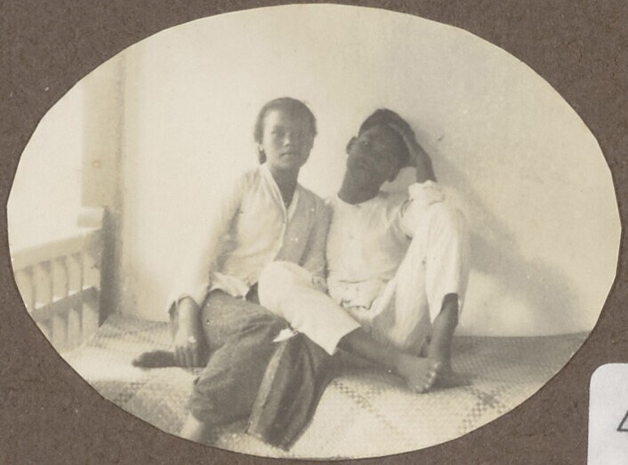 Hem en Cor Japing in de klamboekamer van hun huis op...