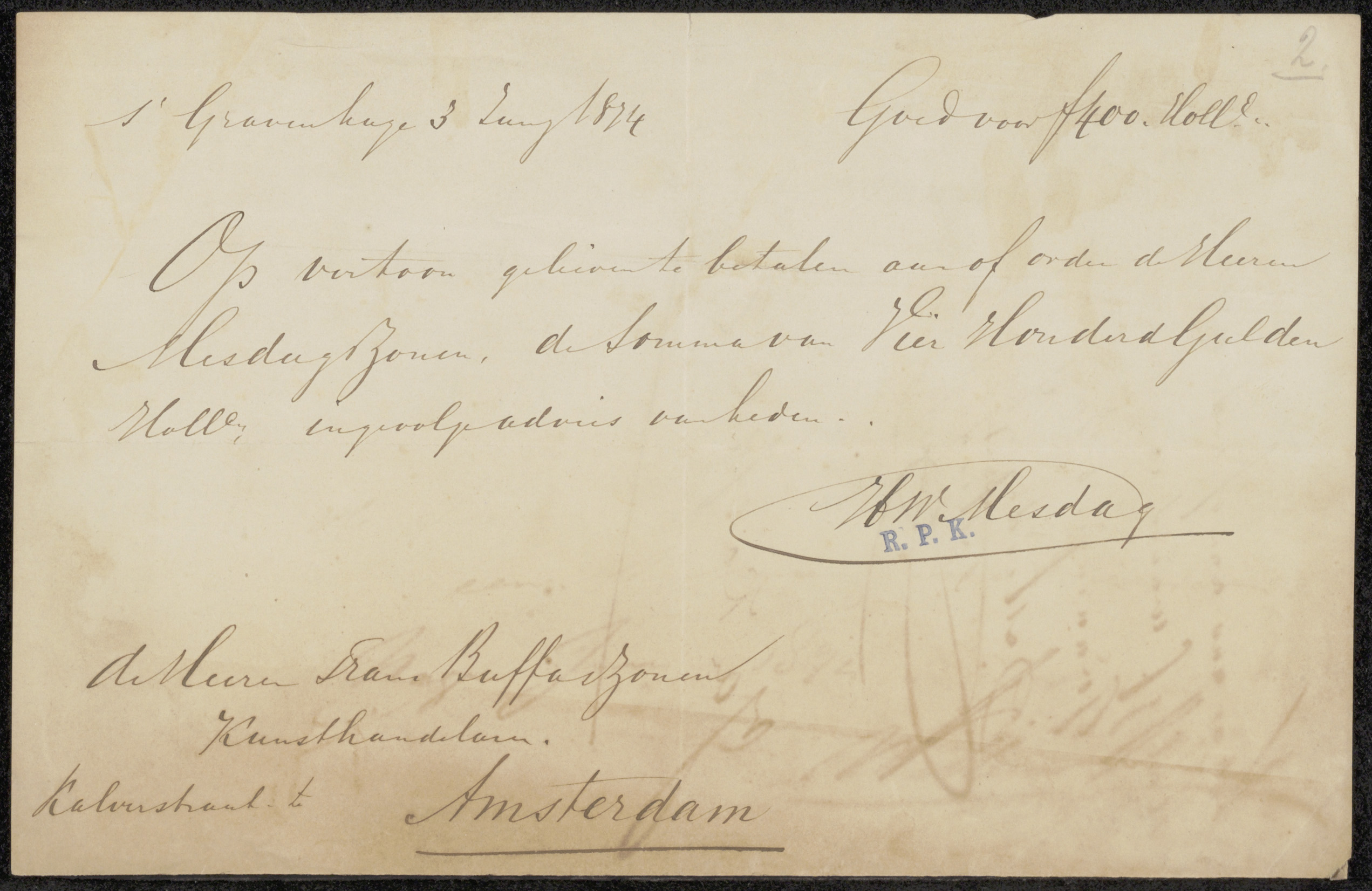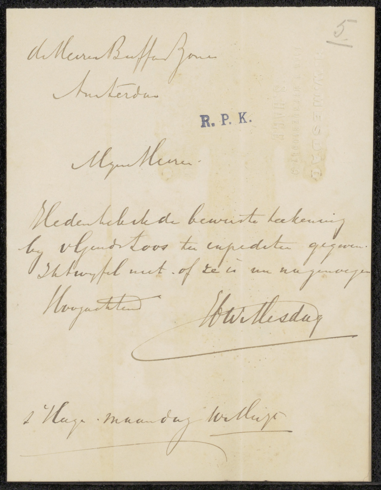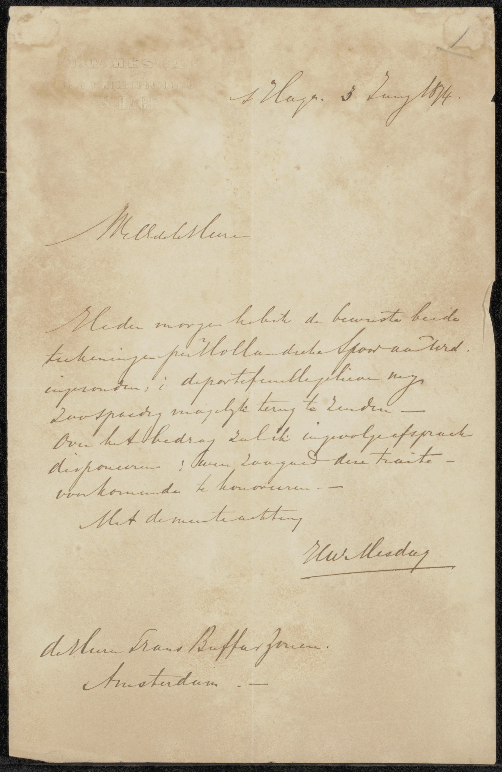 Brief aan Frans Buffa en Zonen