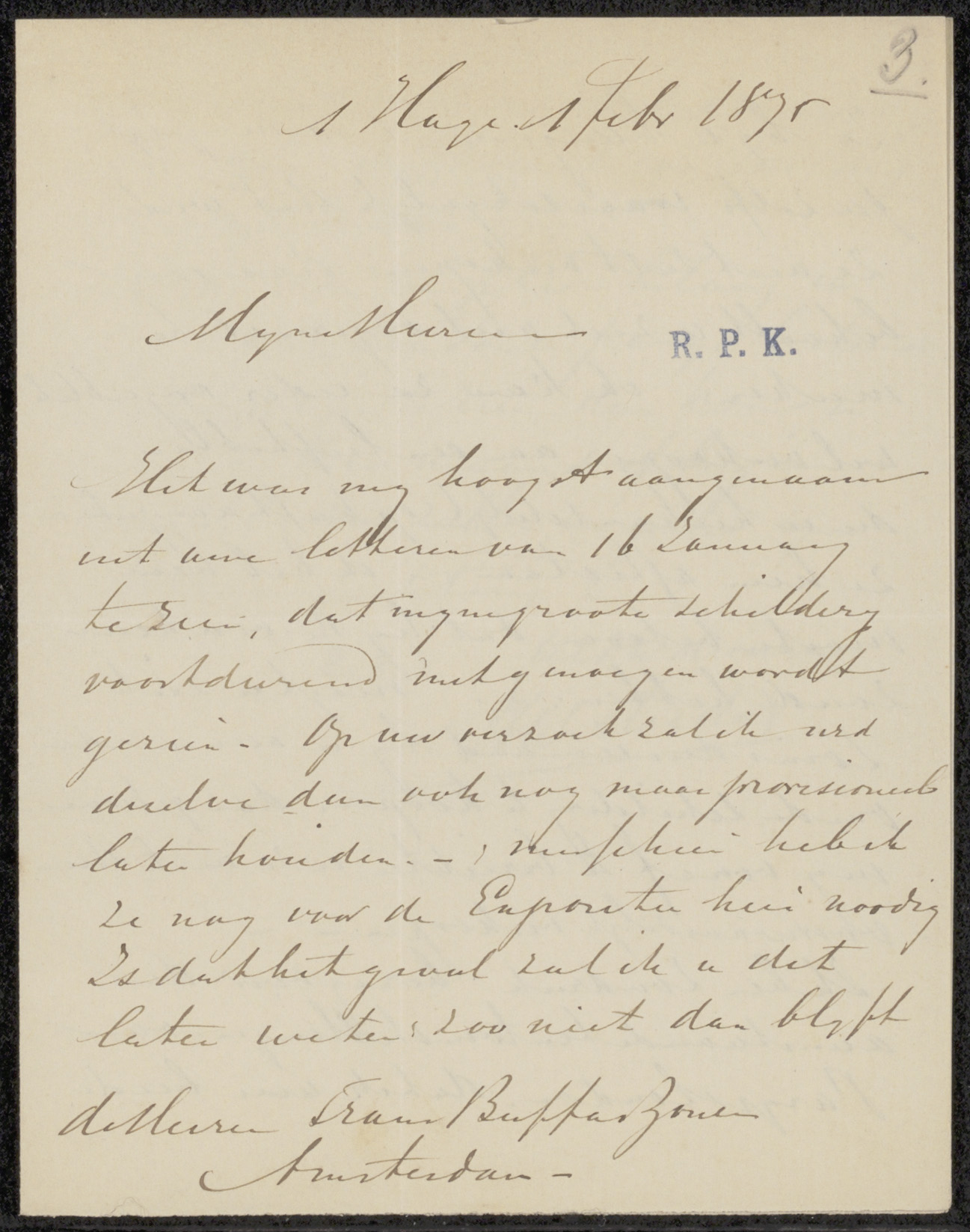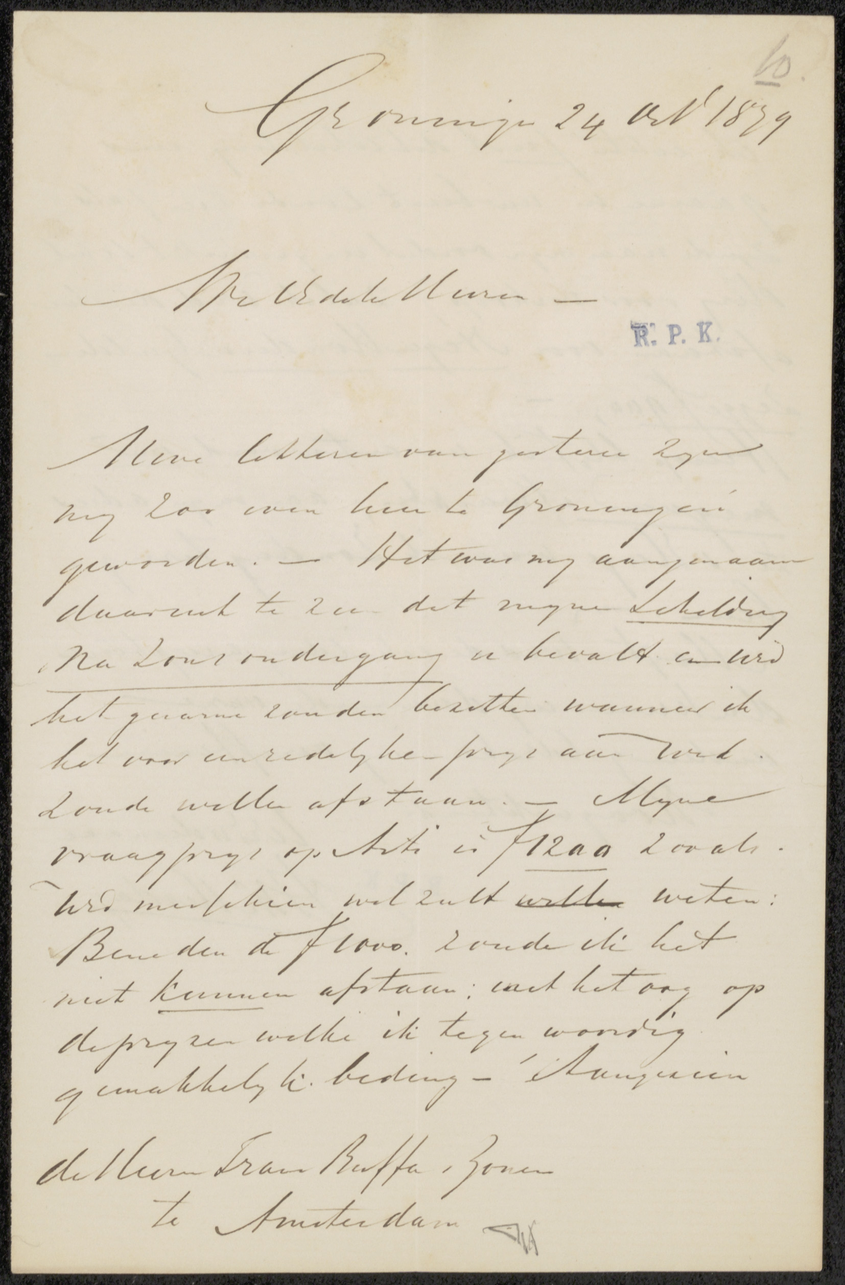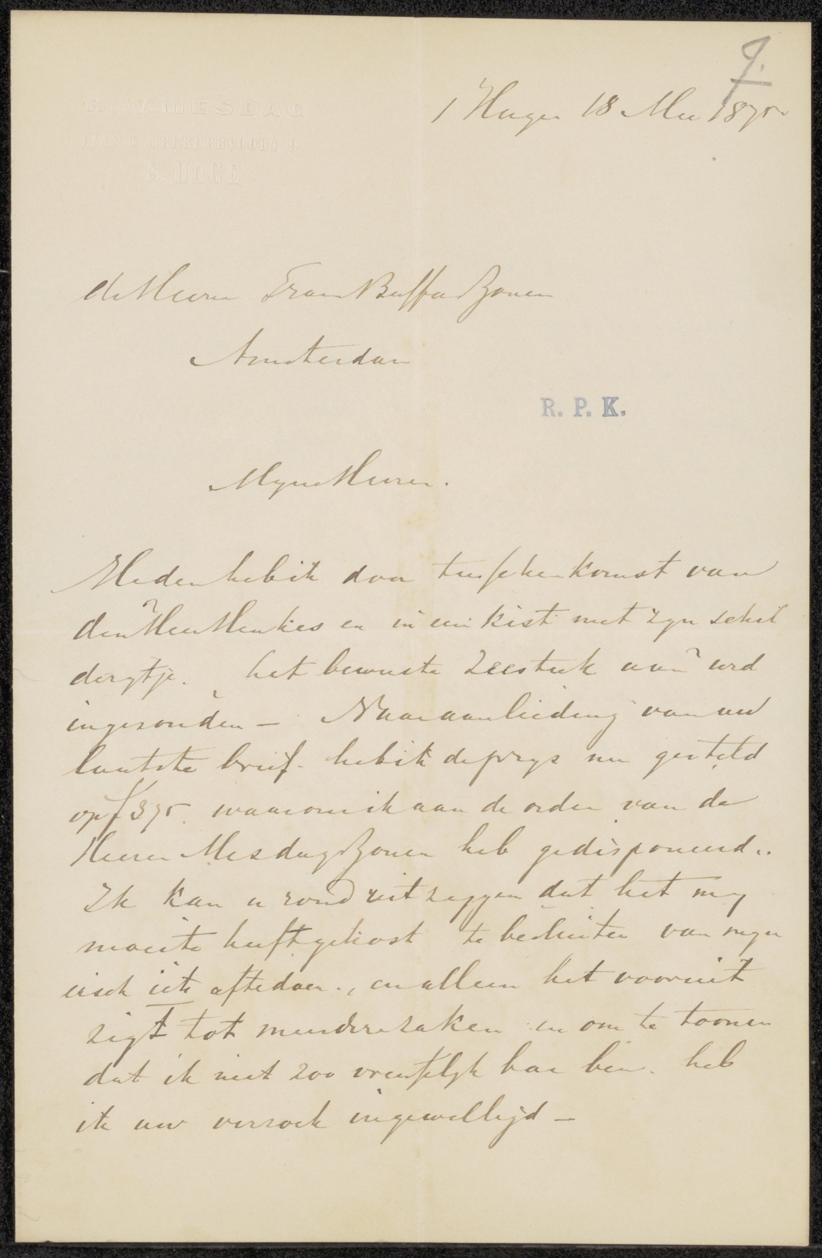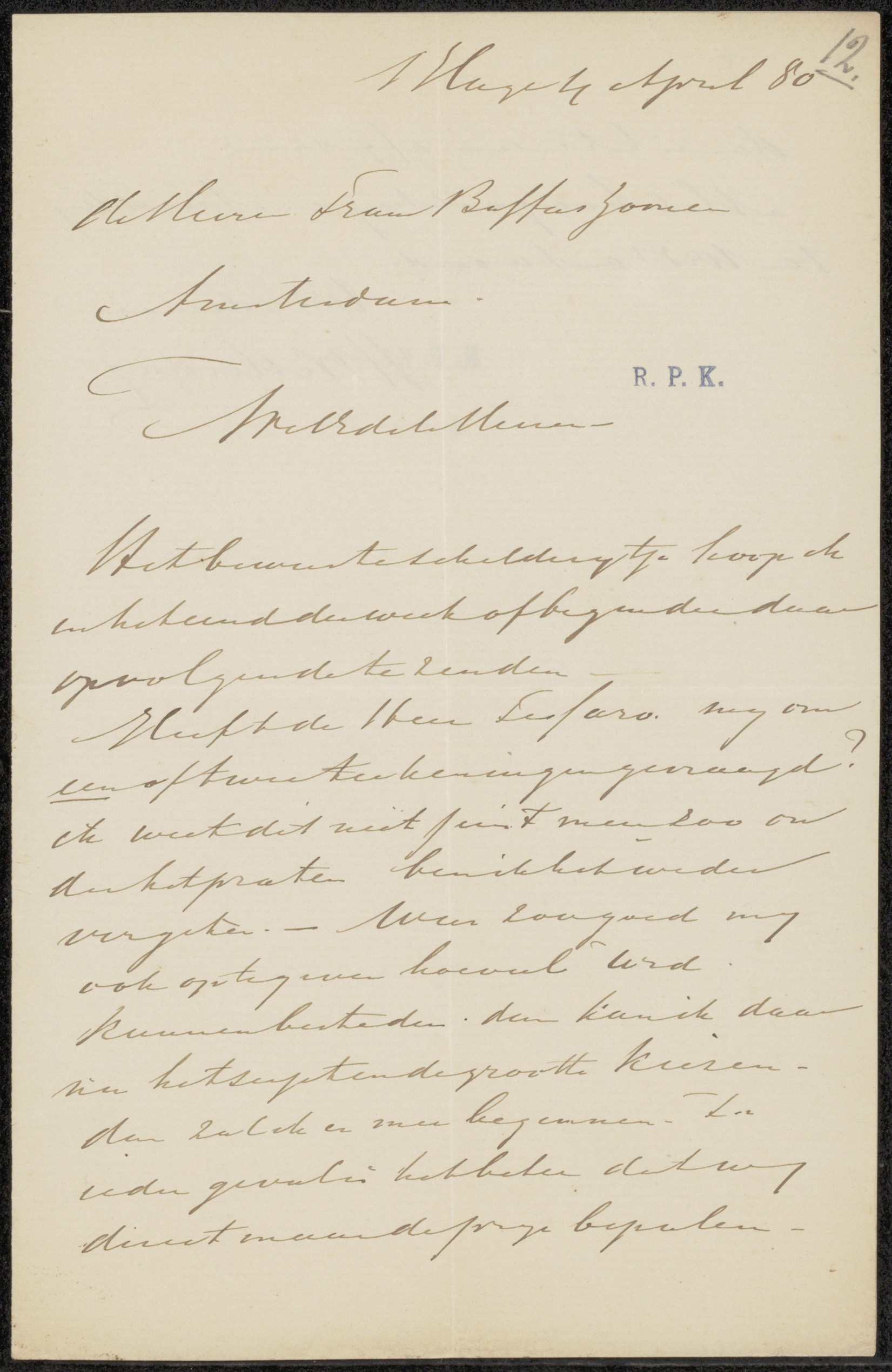 Brief aan Pieter Haverkorn van Rijsewijk