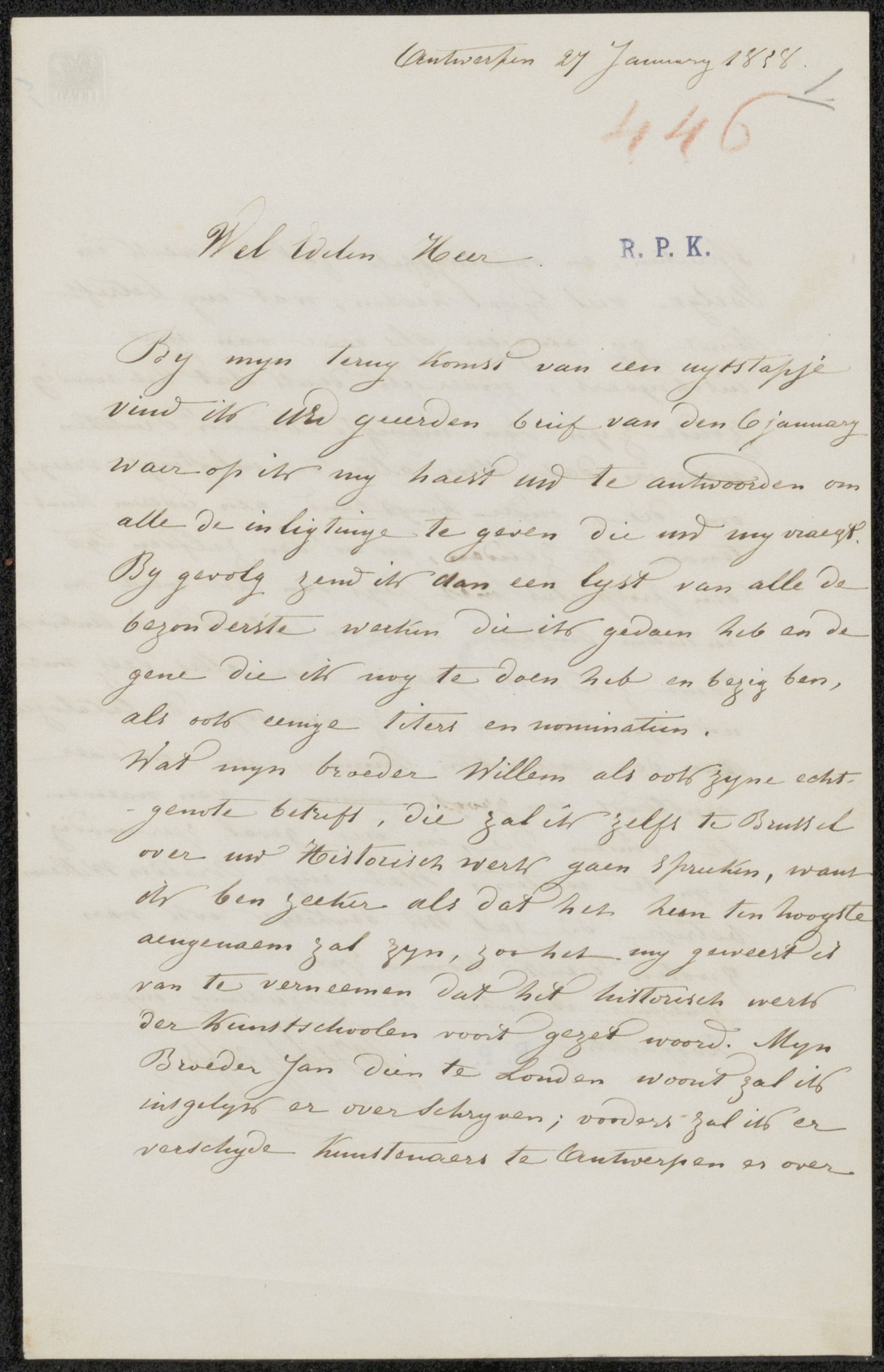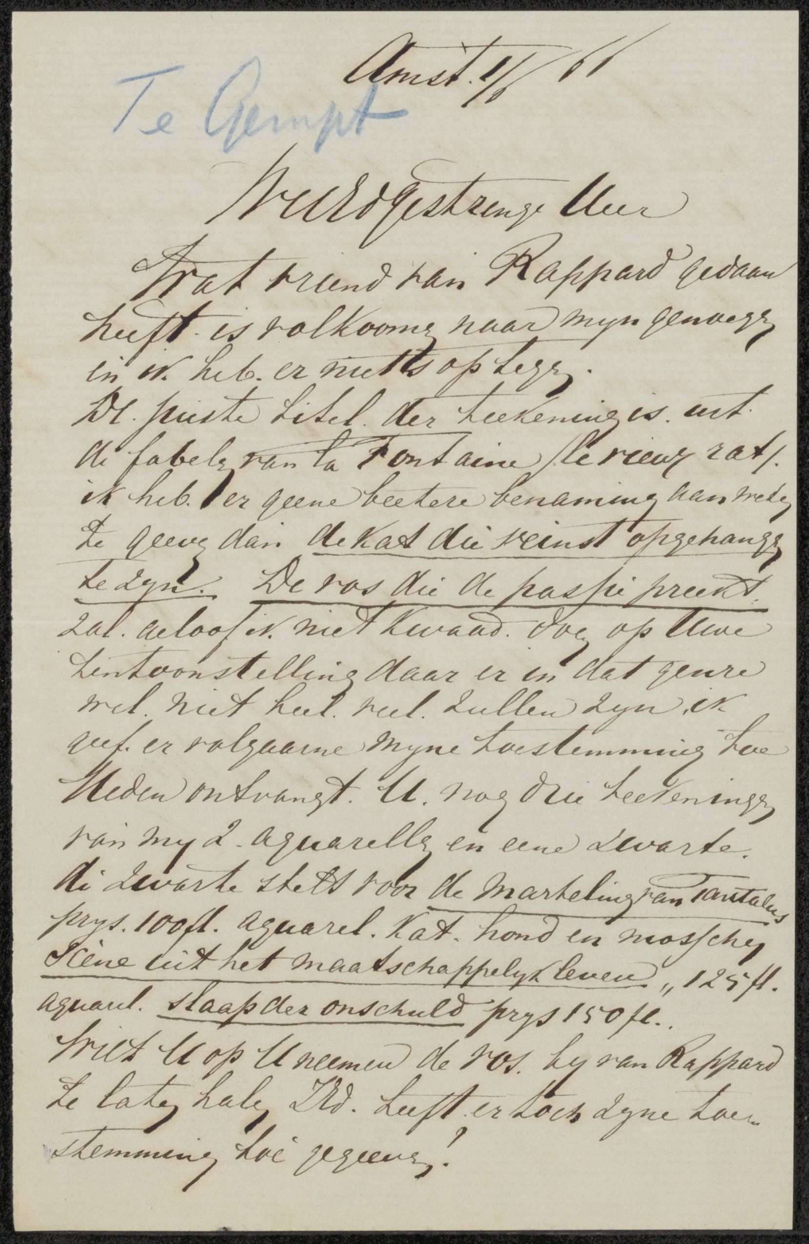 Brief aan Johannes Jacobus Franciscus Wap