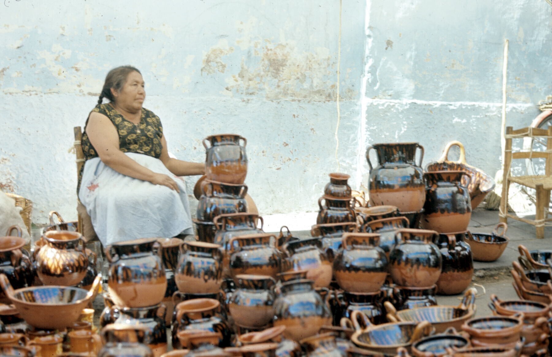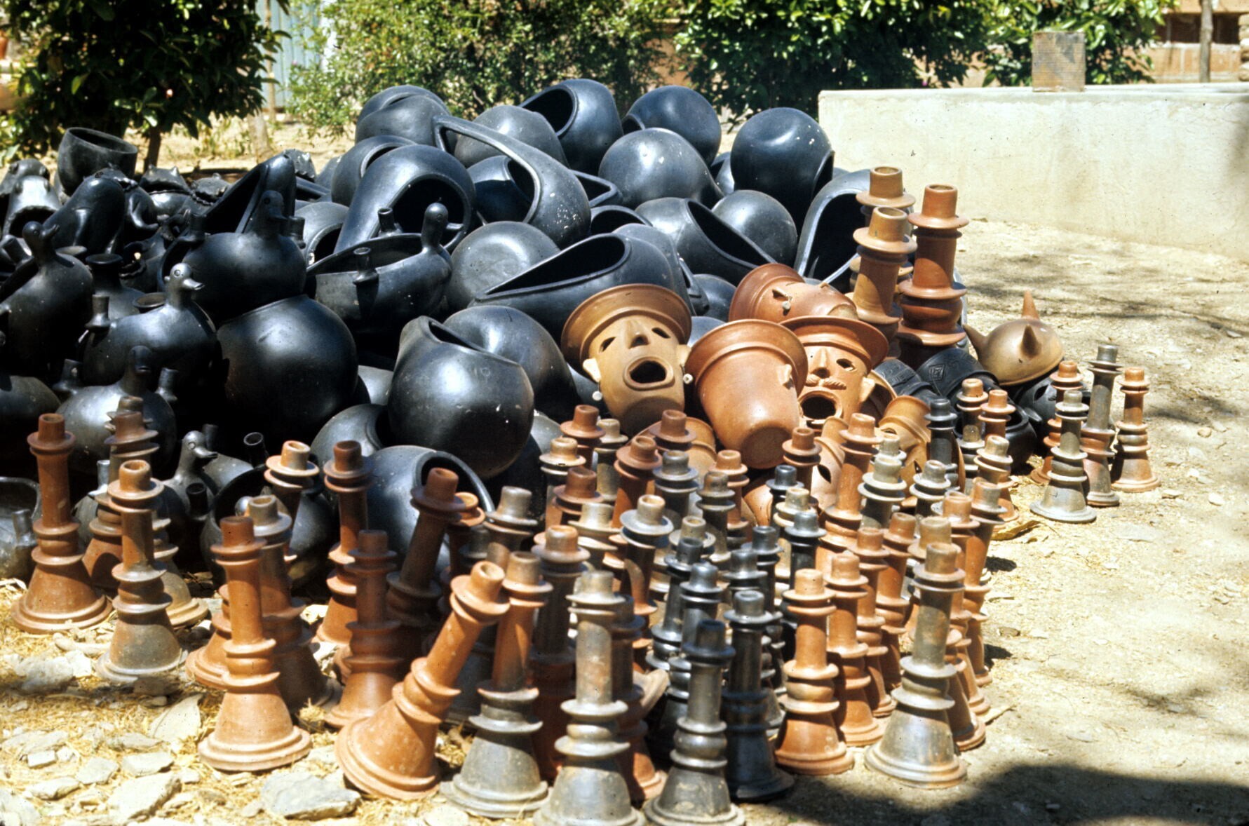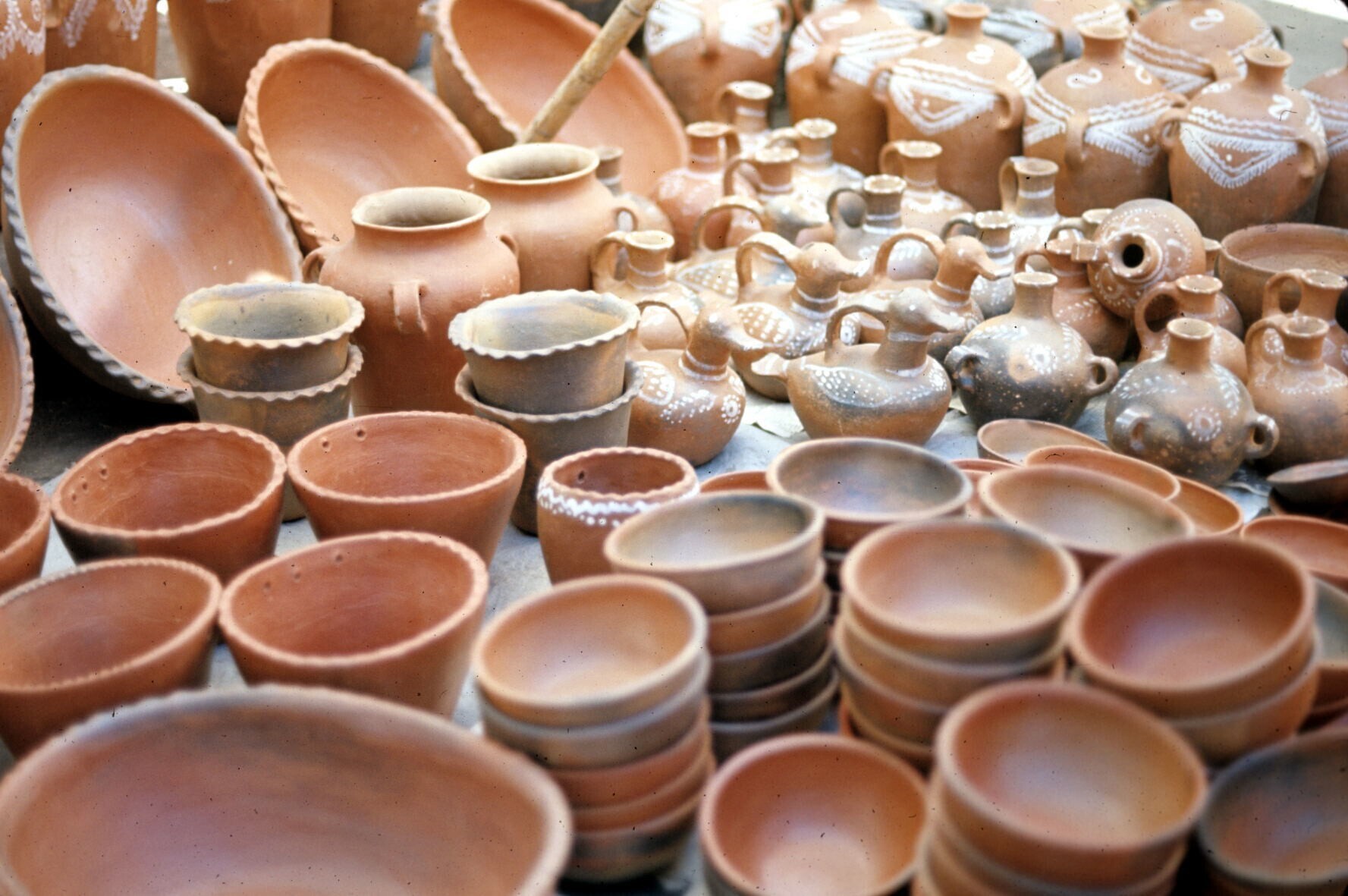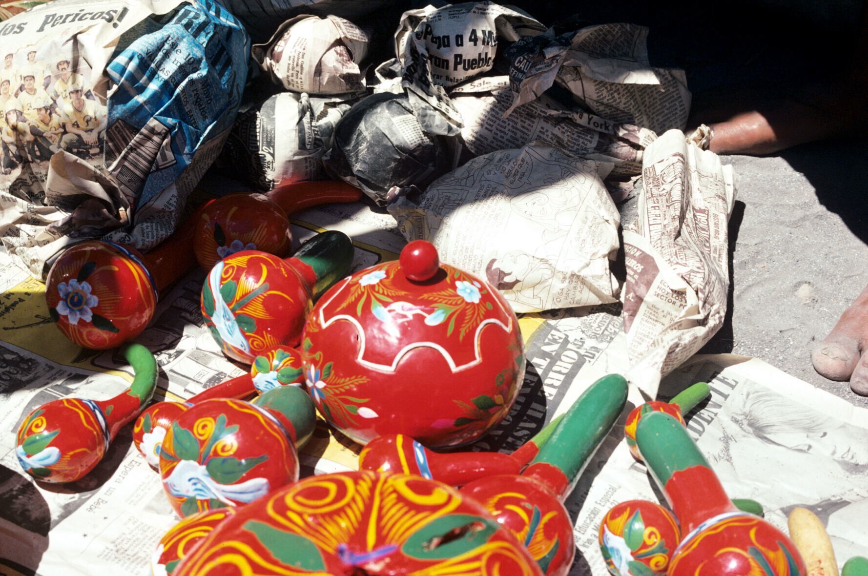 aardewerk (op voorgrond aardewerkuit Acatlán, Pue.) ...