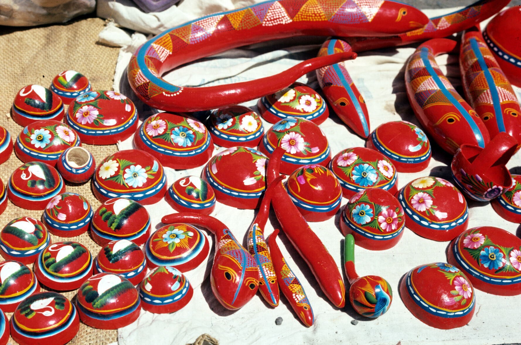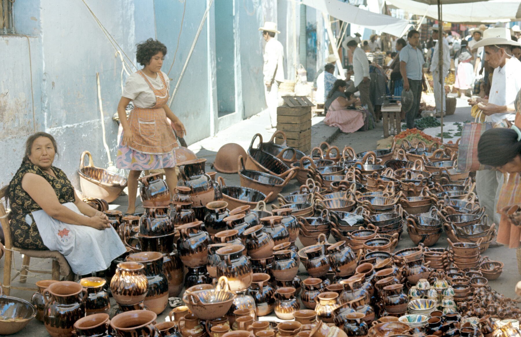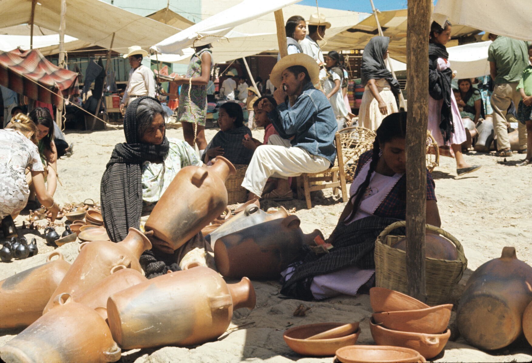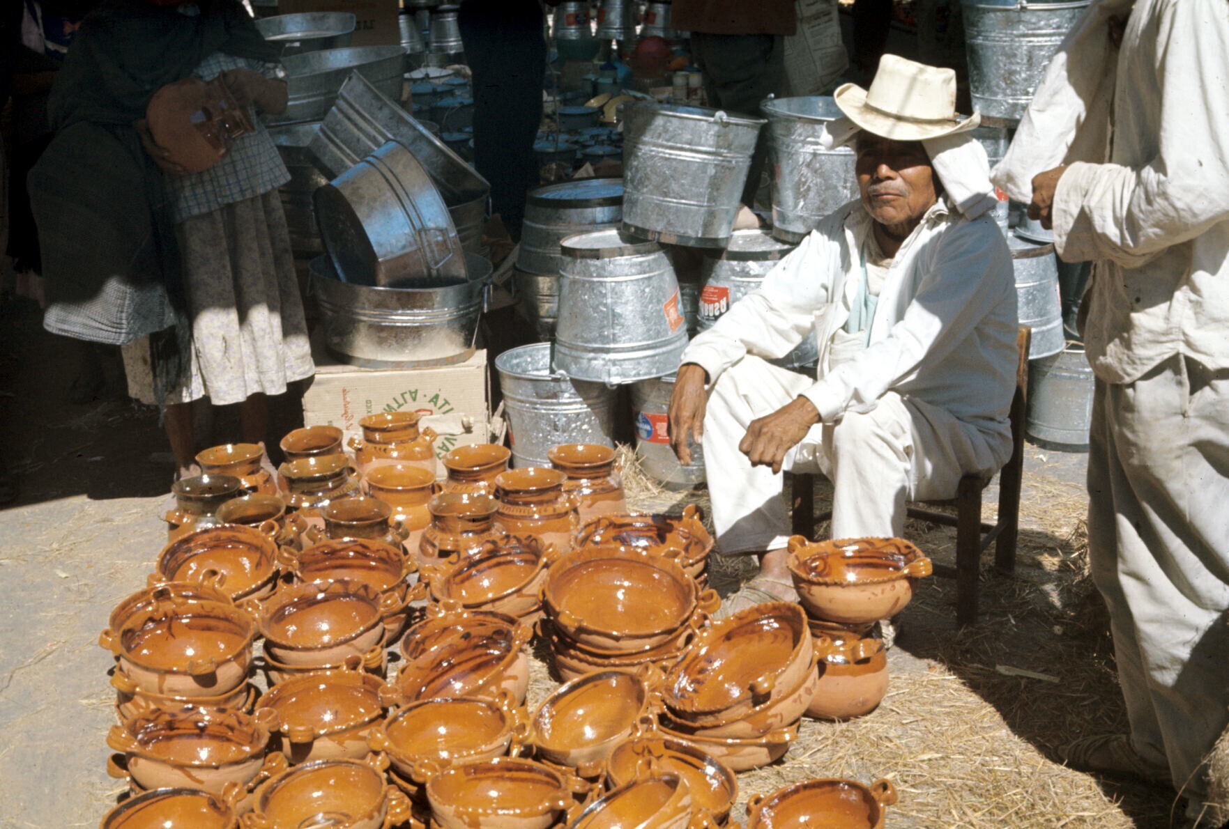 aardewerk (op voorgrond aardewerkuit Acatlán, Pue.) ...