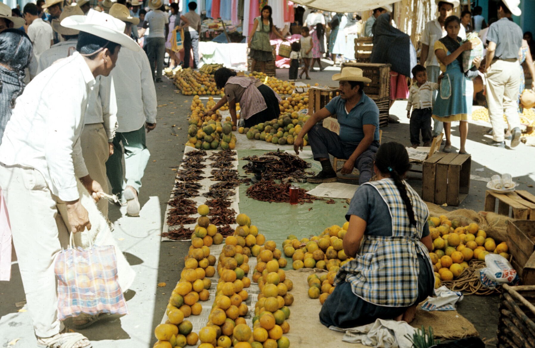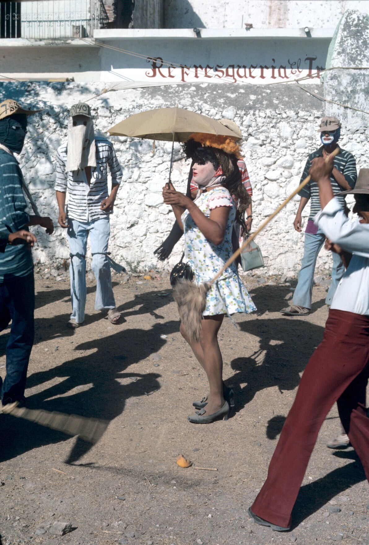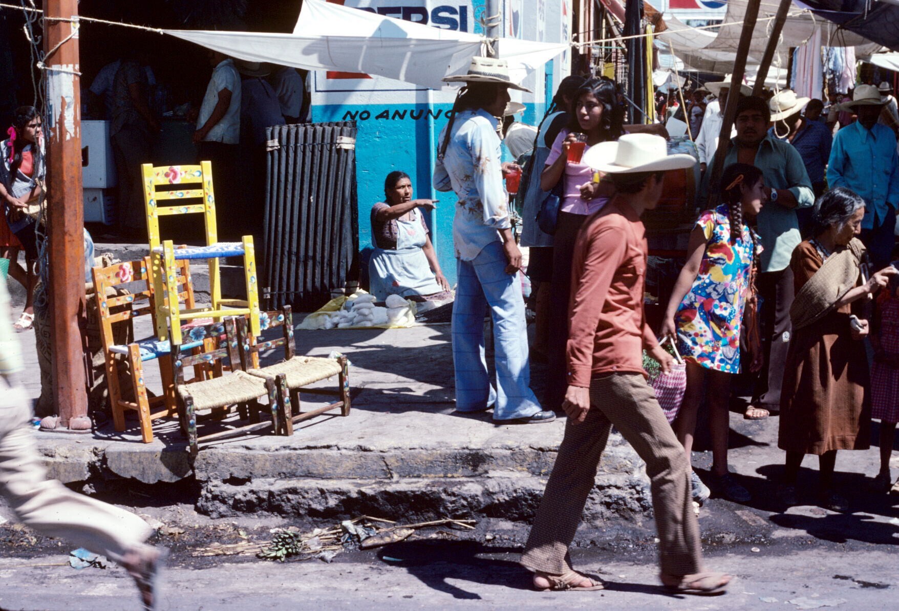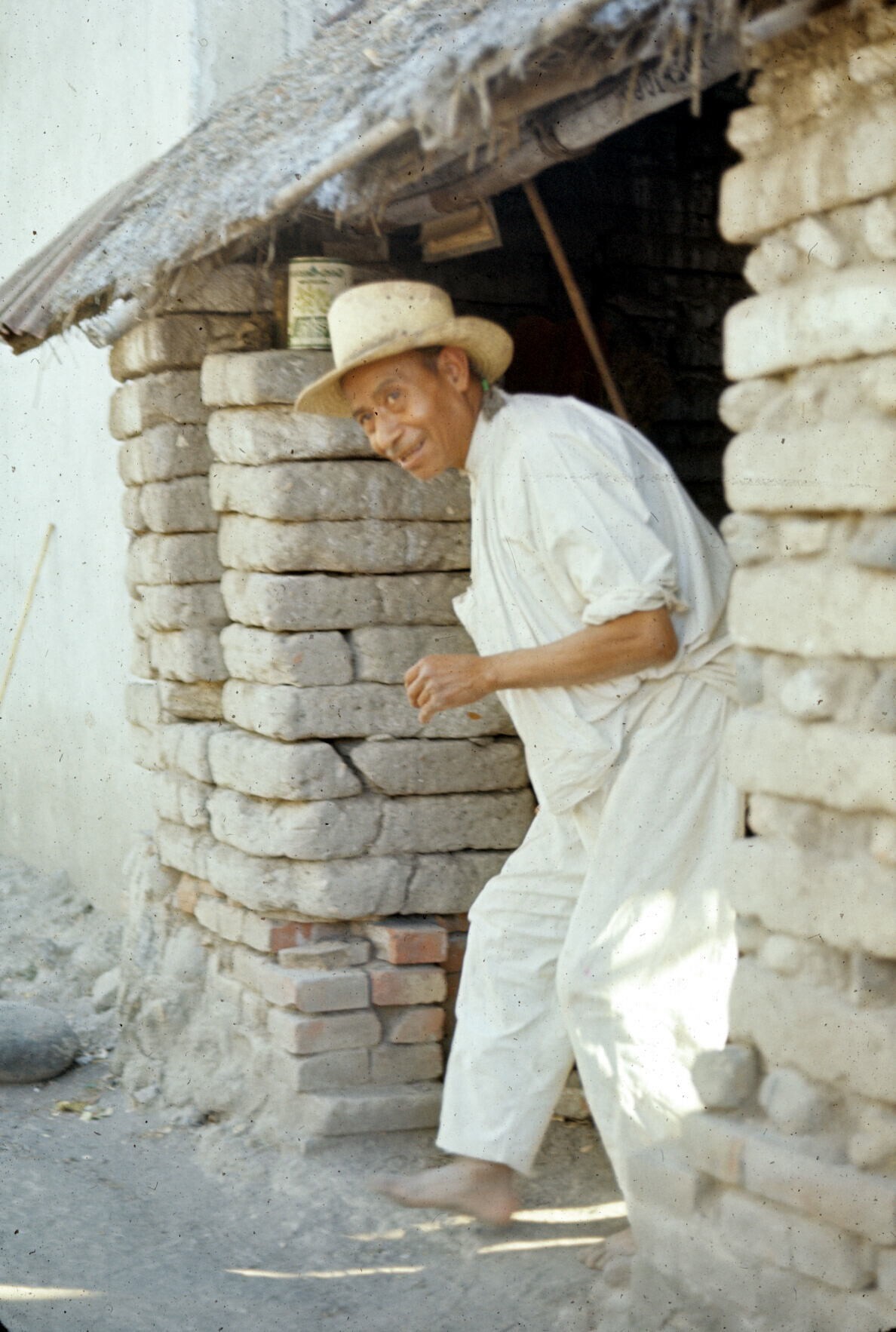 meisje, mand vlechtend op erf van tante zusjes Reyes