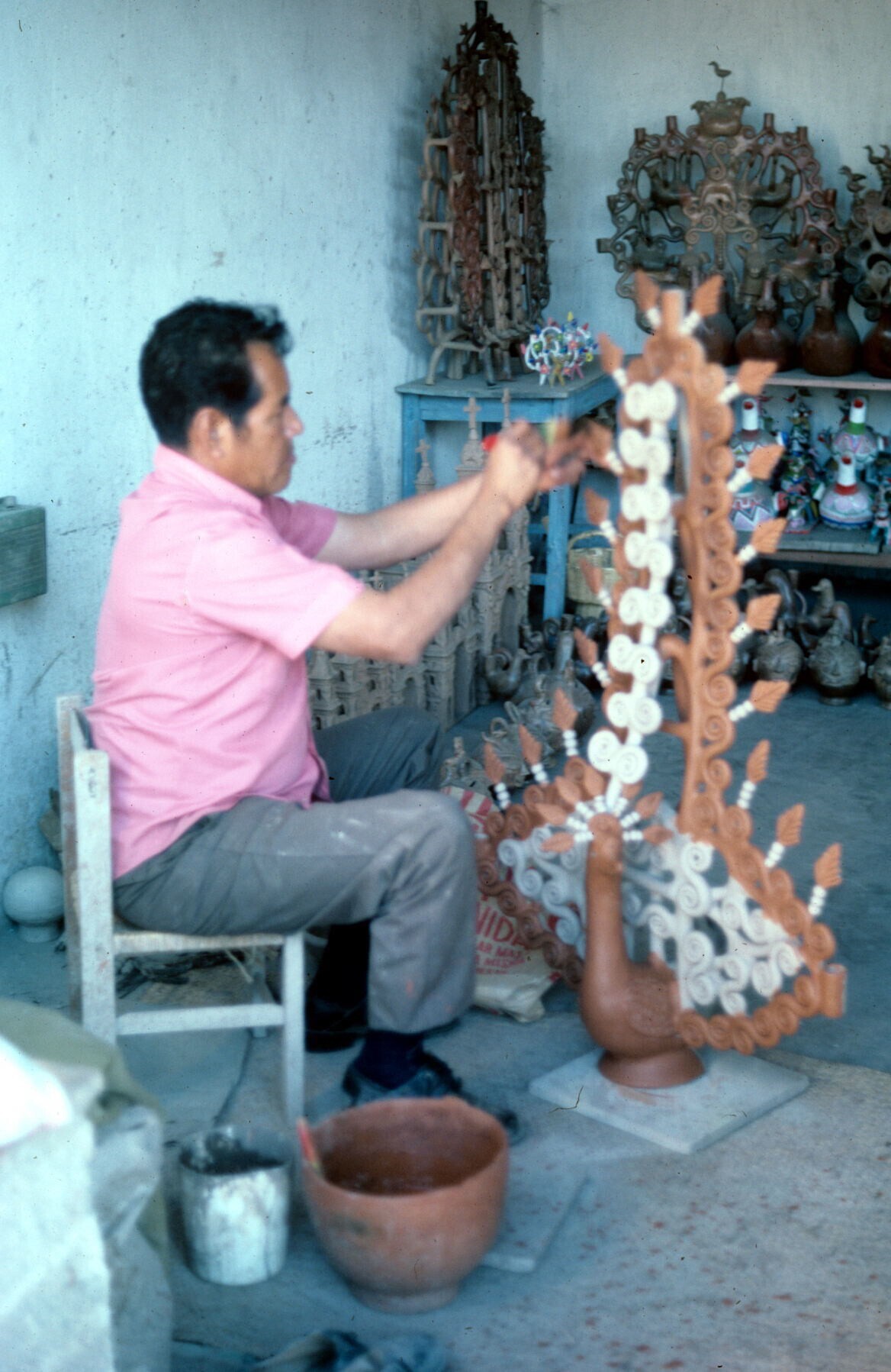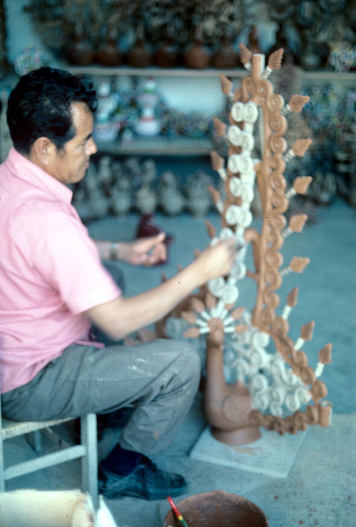 pottenbakker Aurelio Flores met levensboomkandelaar