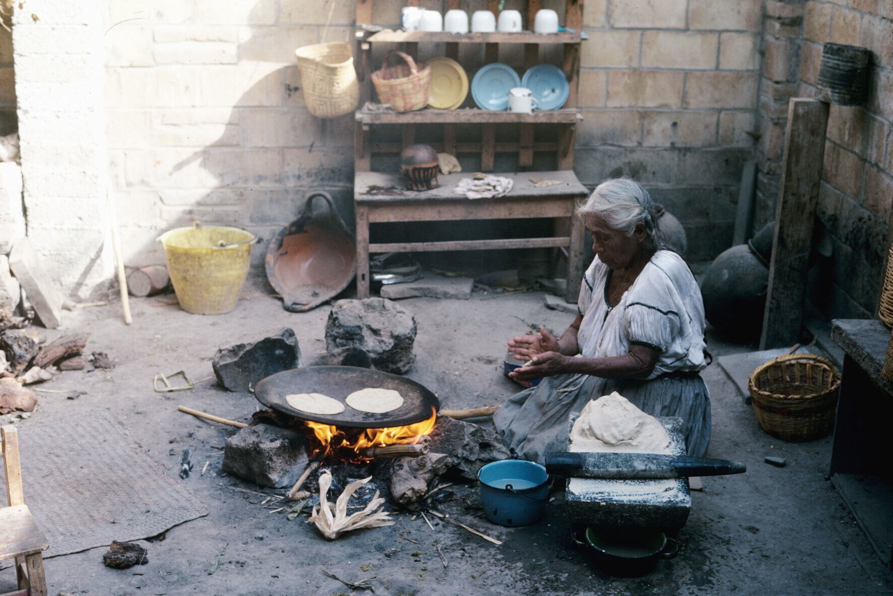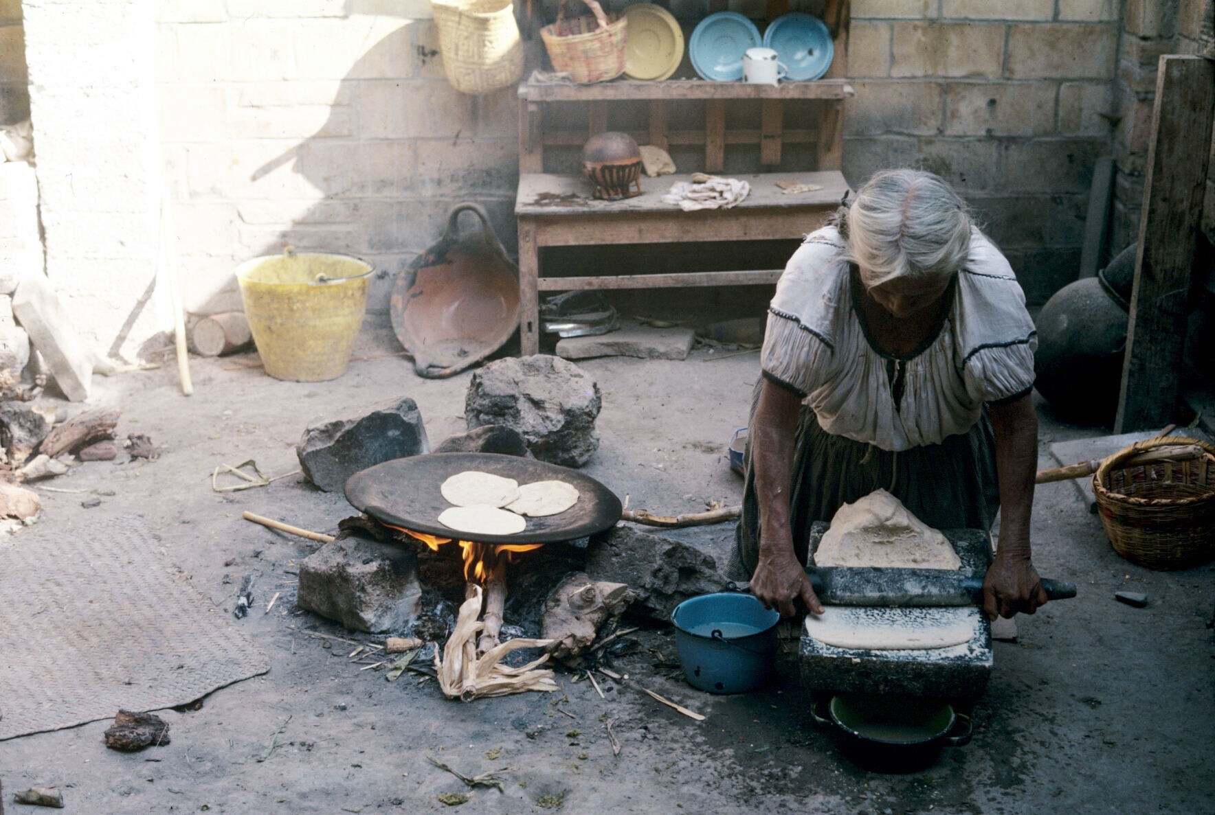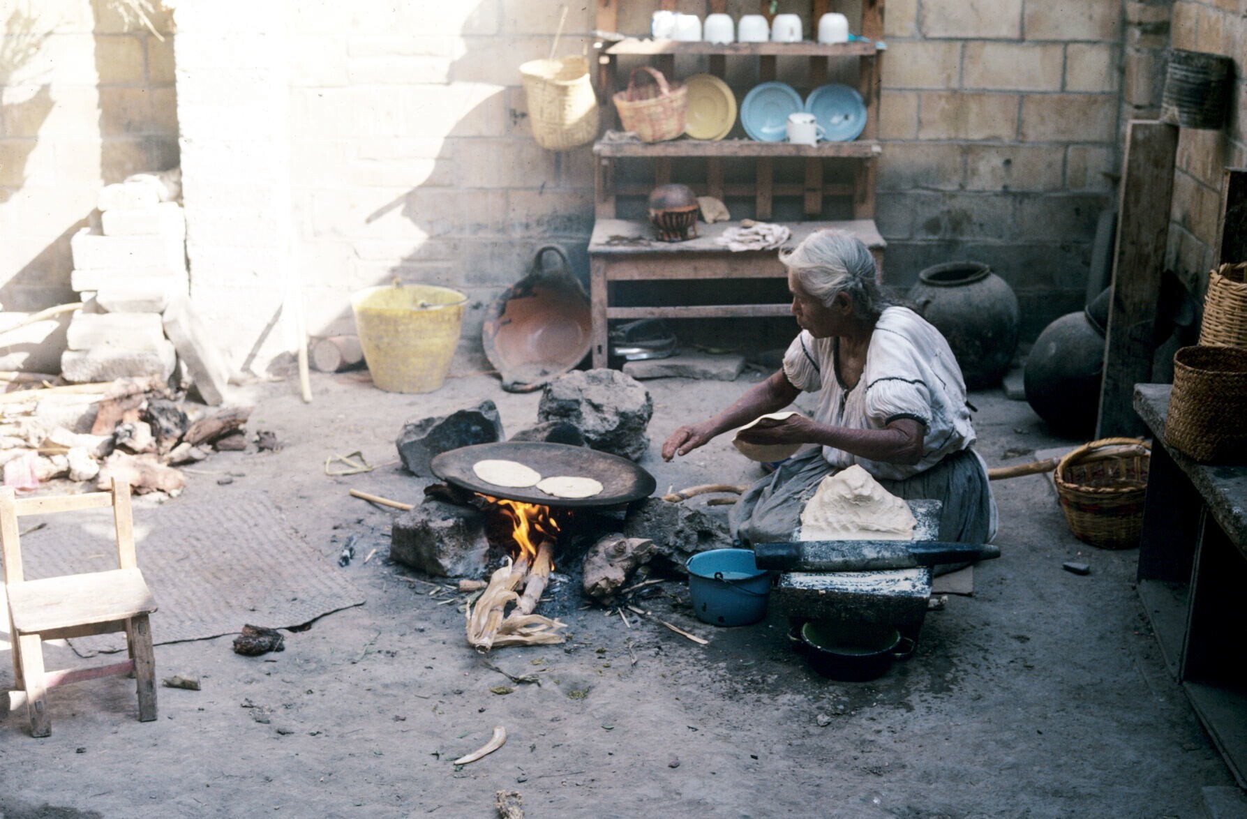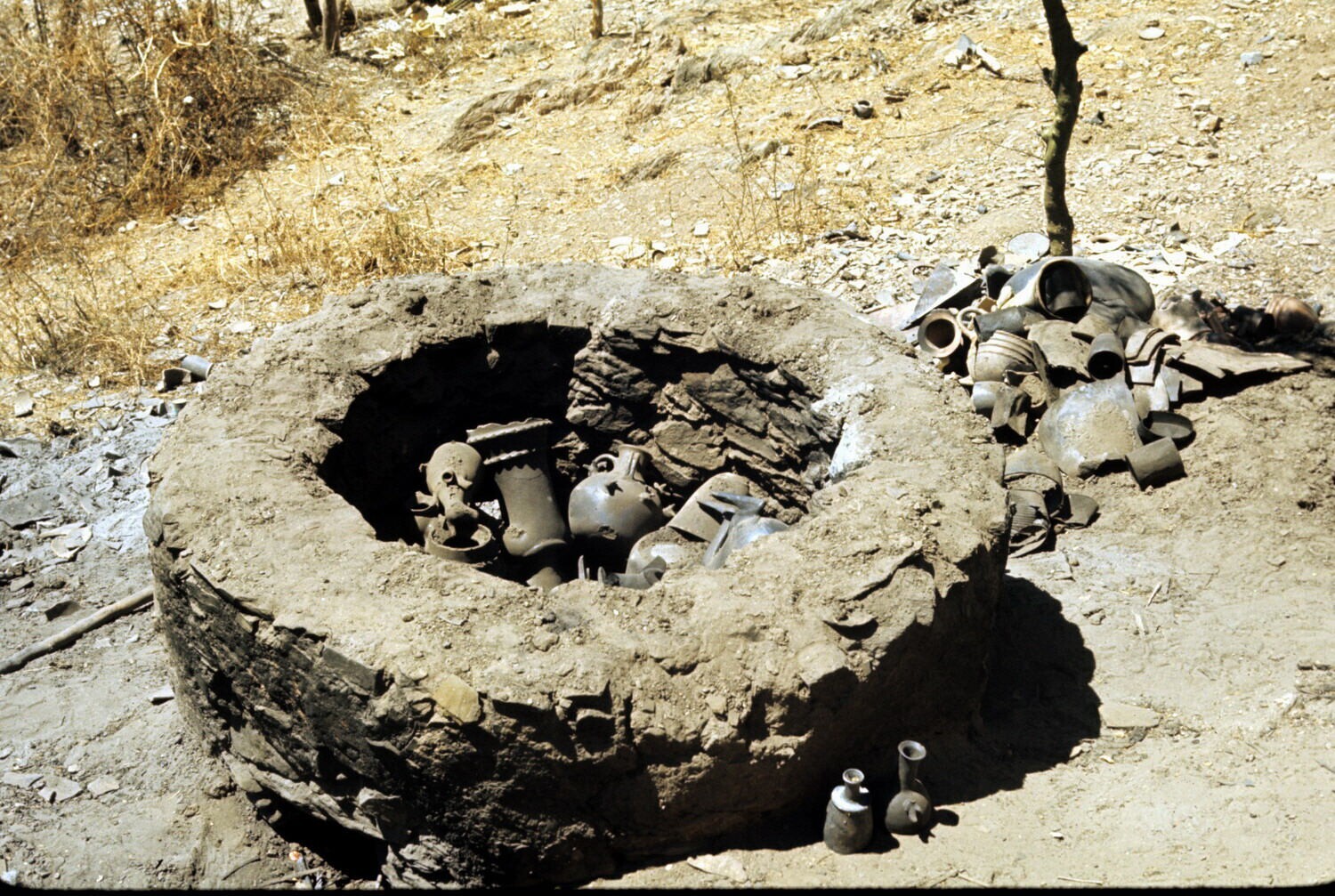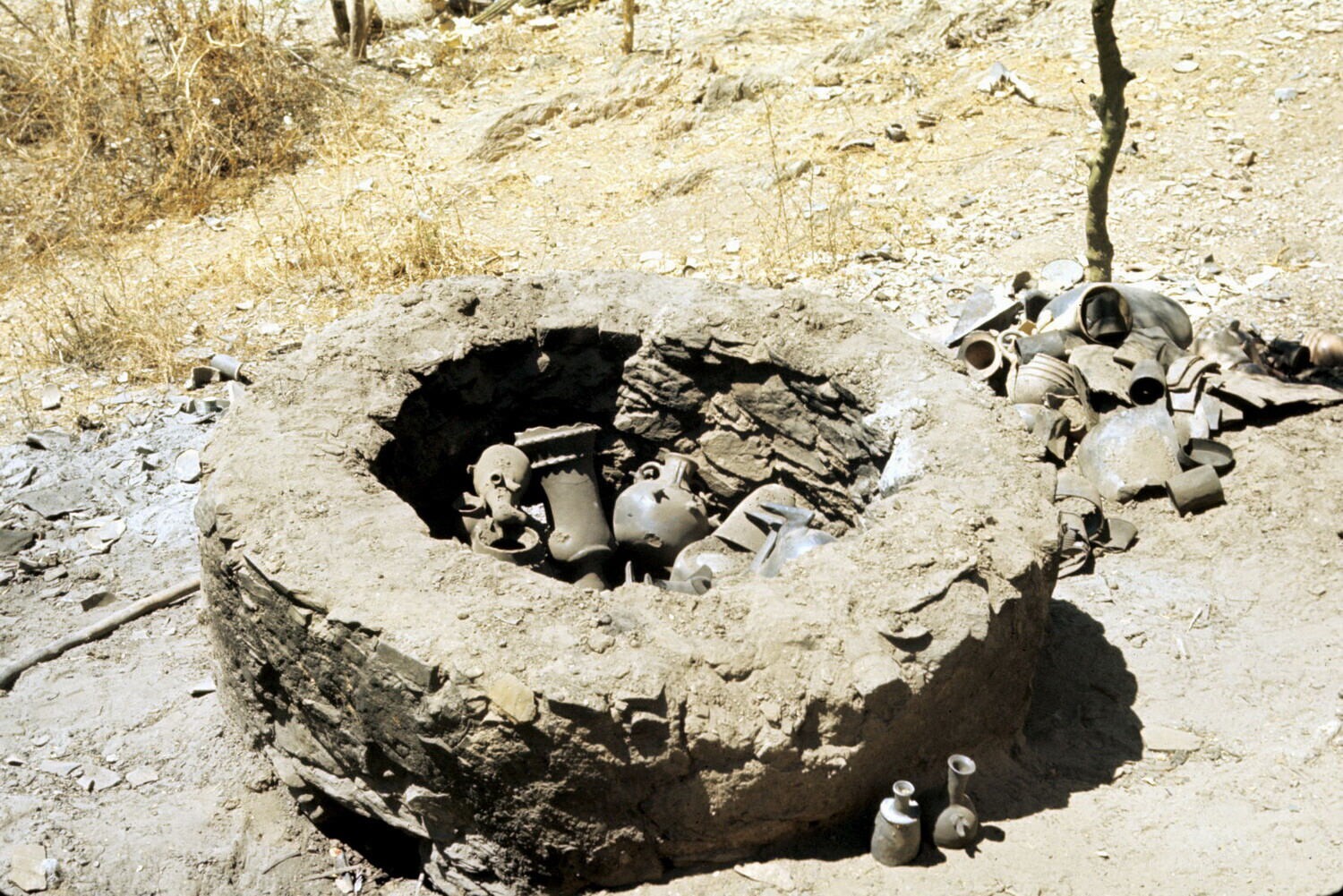 aardewerk in oven, in atelier van pottenbakker Herón...
