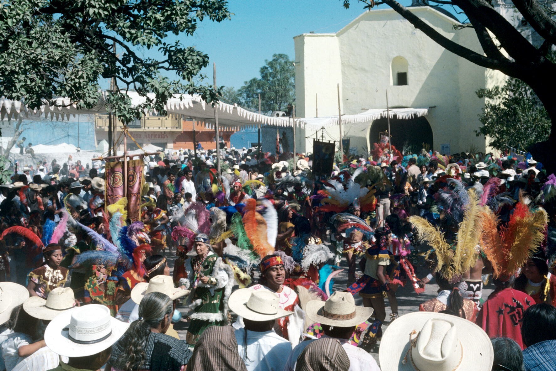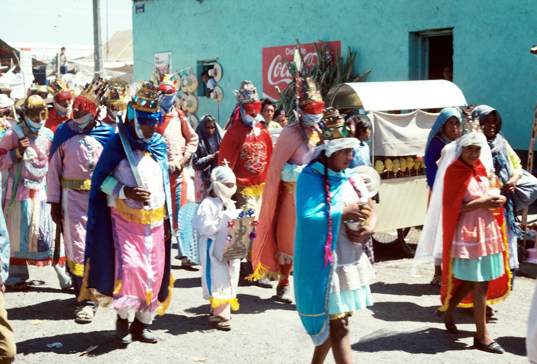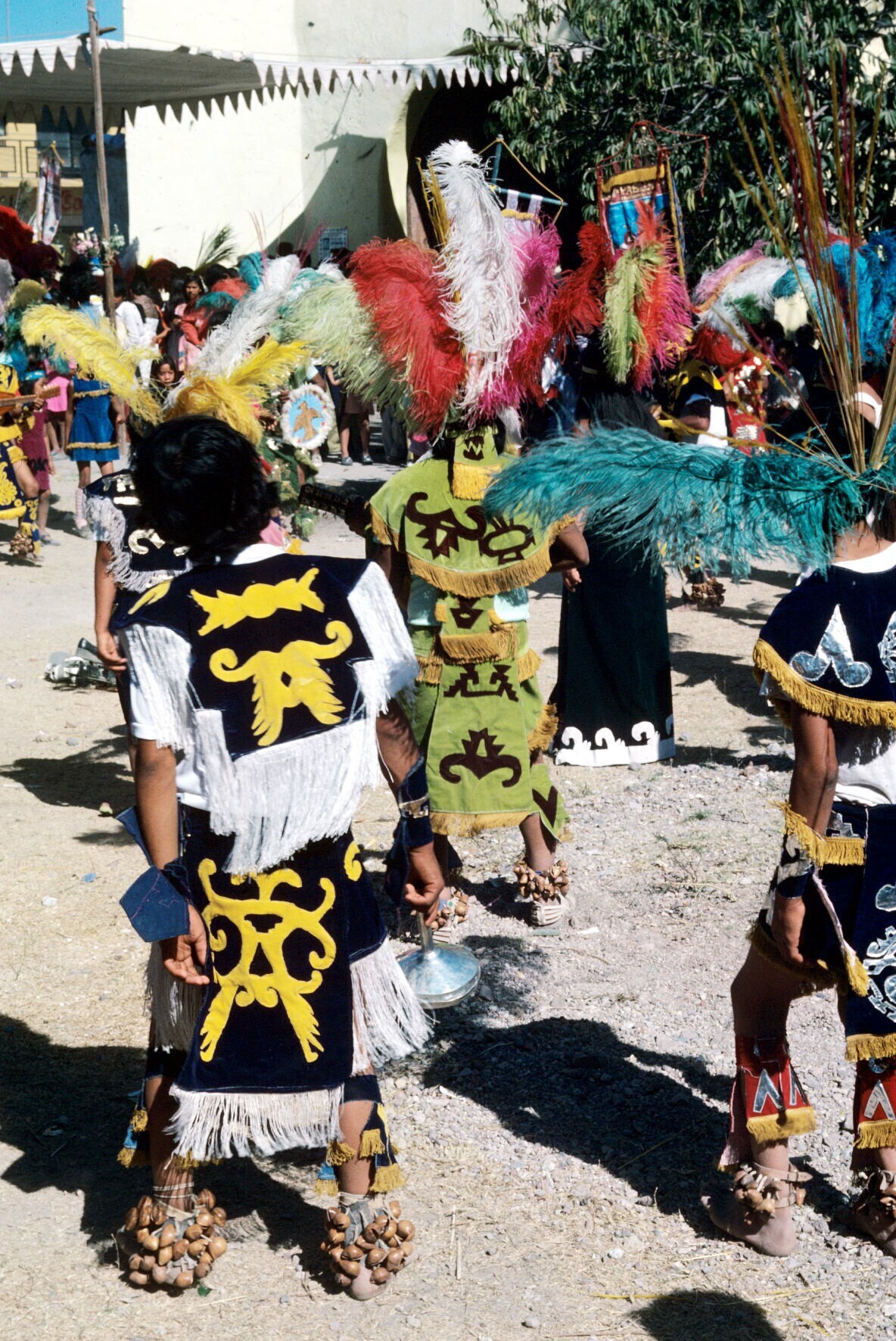 jongetje in conchero(dansers)kostuum, bij concherodans