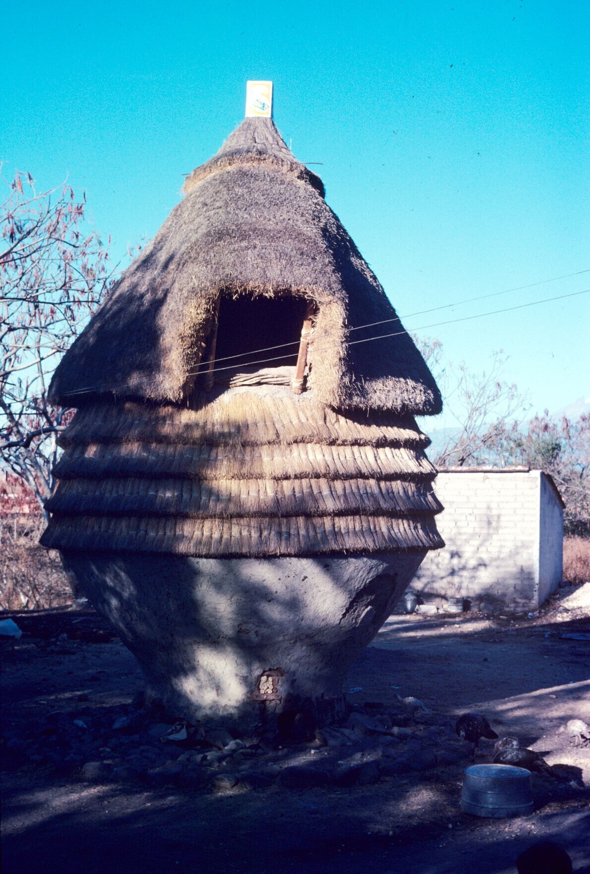 inwendige dakstructuur van cuezcomate (maïsopslagpla...