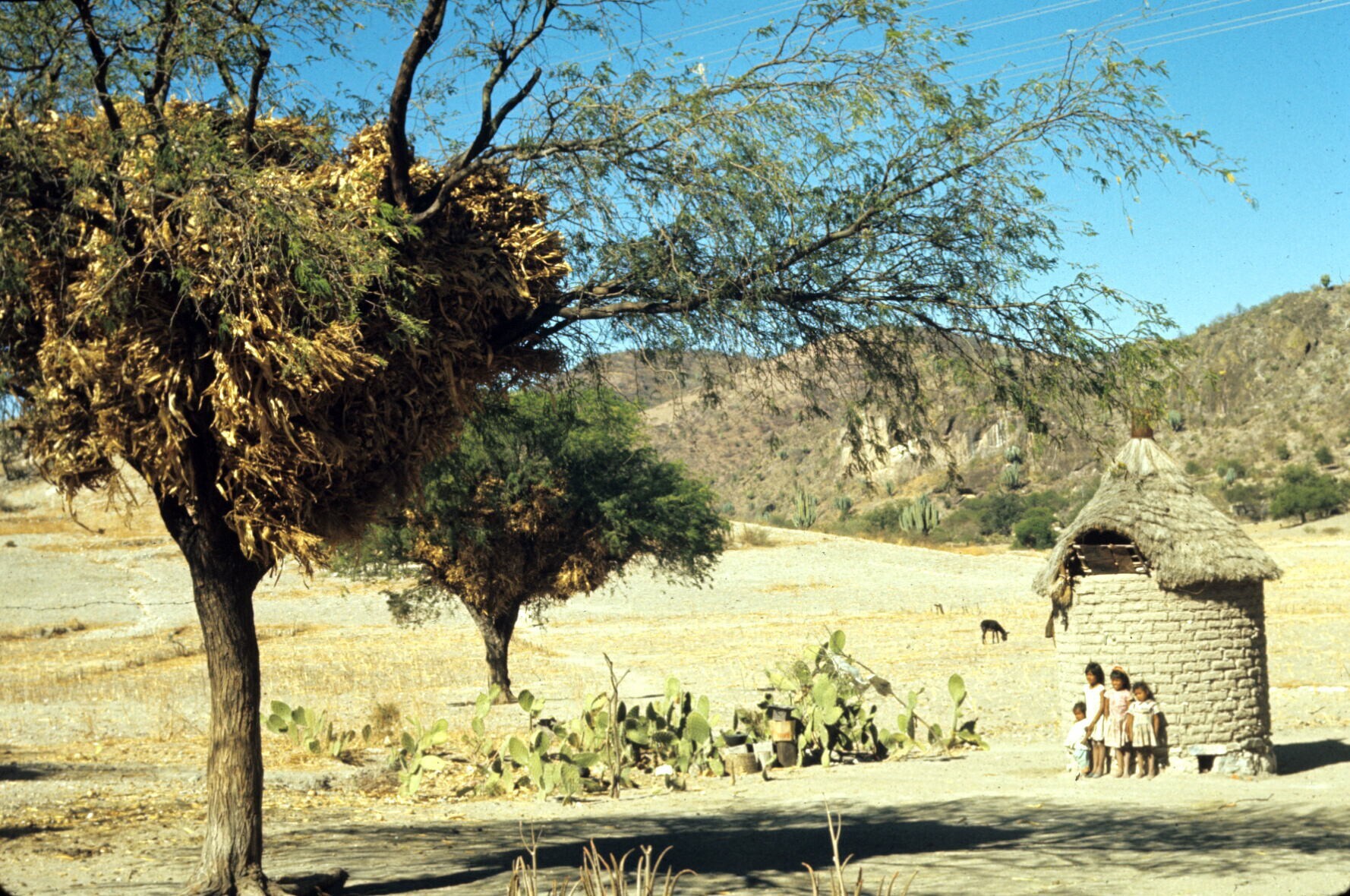 muildier en kalkoenen bij cuezcomate (maïsopslagplaats)