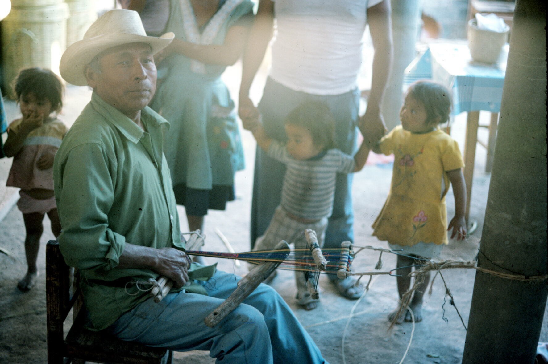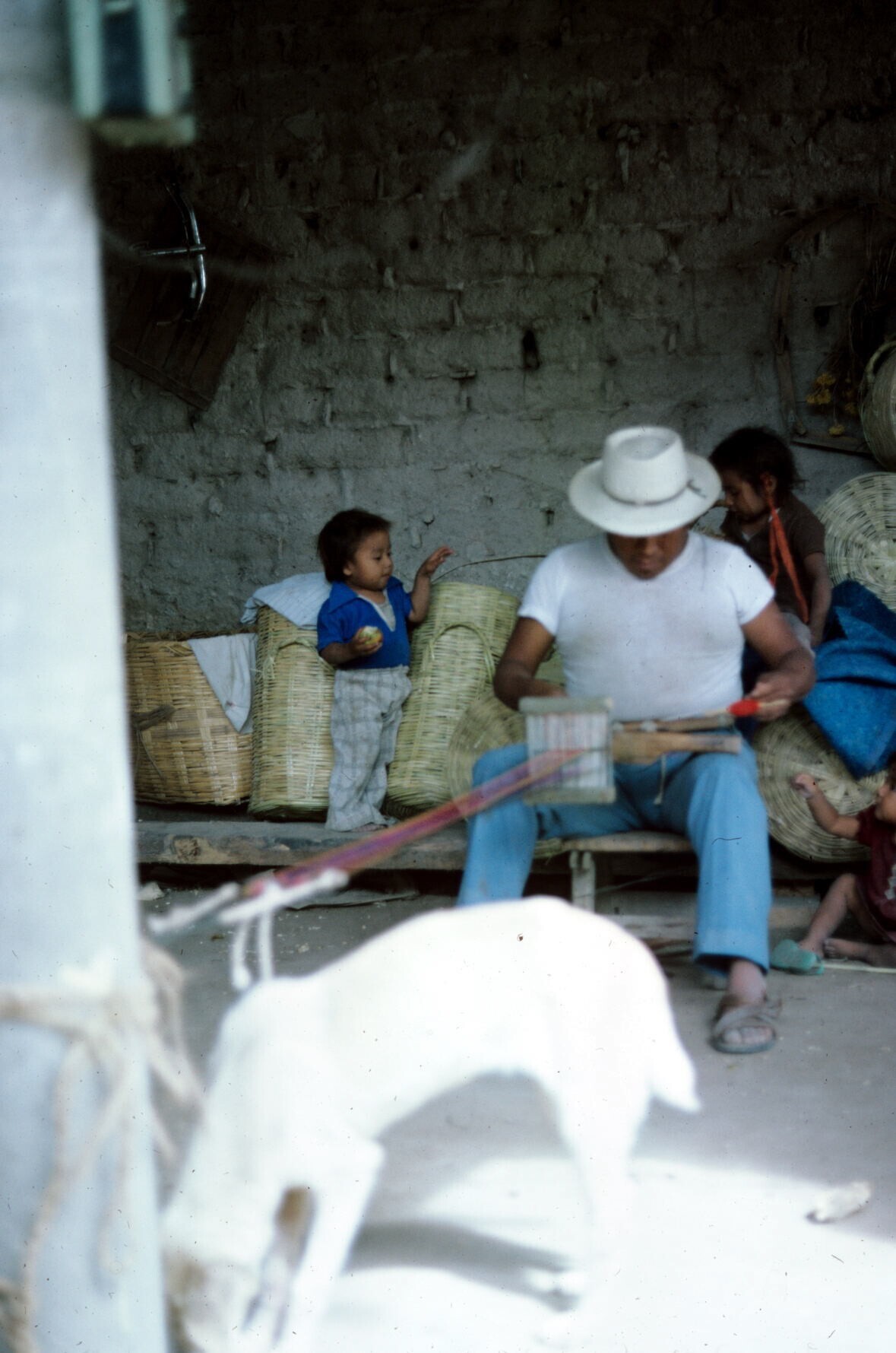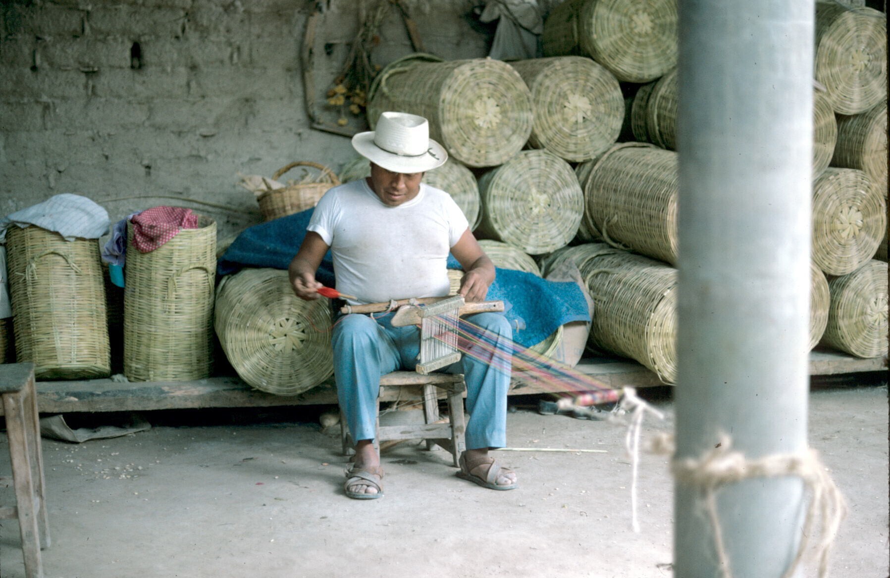 zwager van José Alfaro met heupweefgetouw, met zojui...