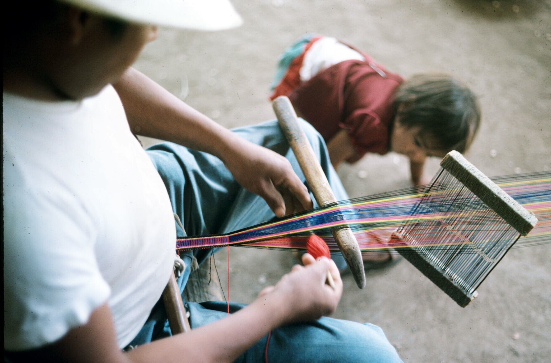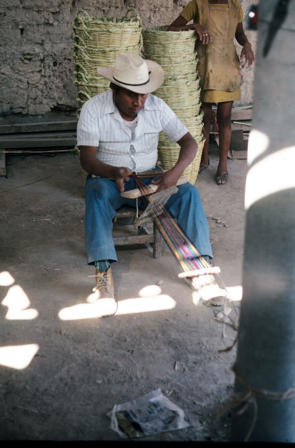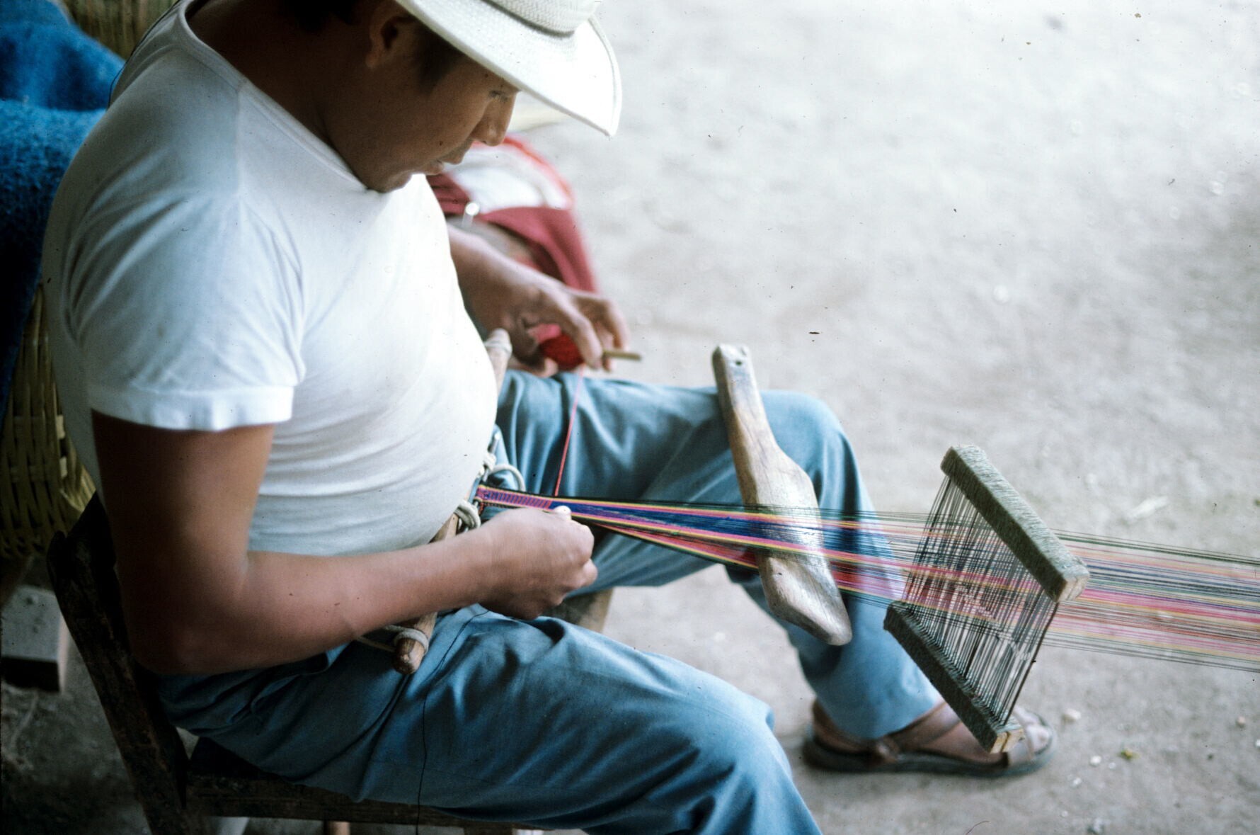 zwager van wever José Alfaro met heupweefgetouw, faj...