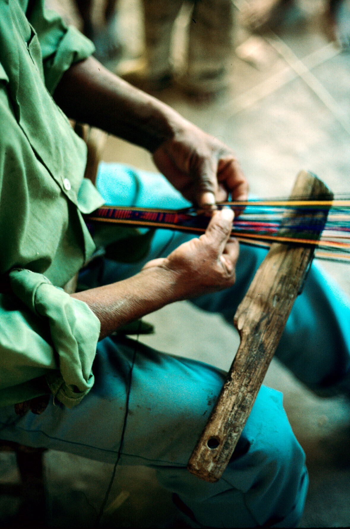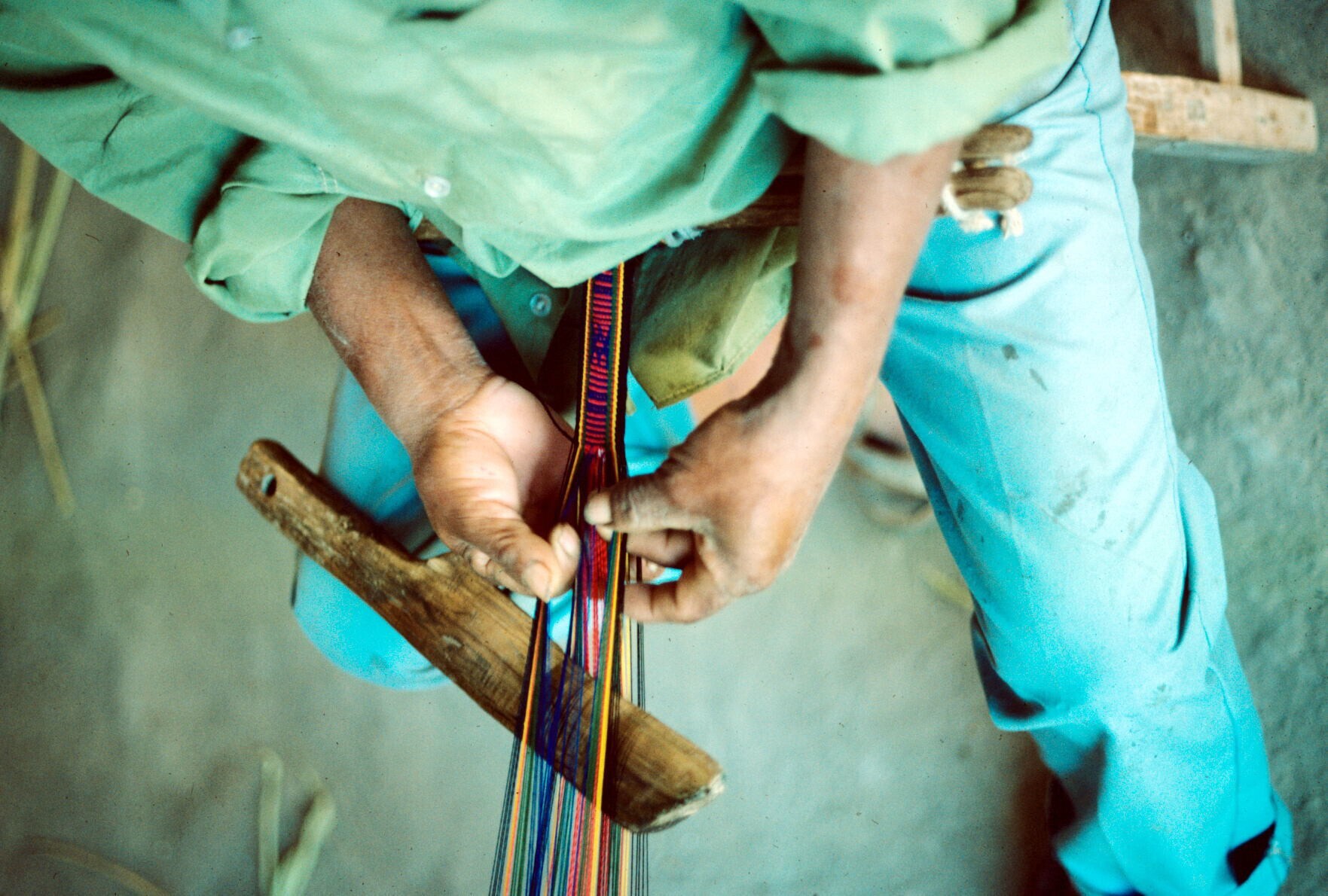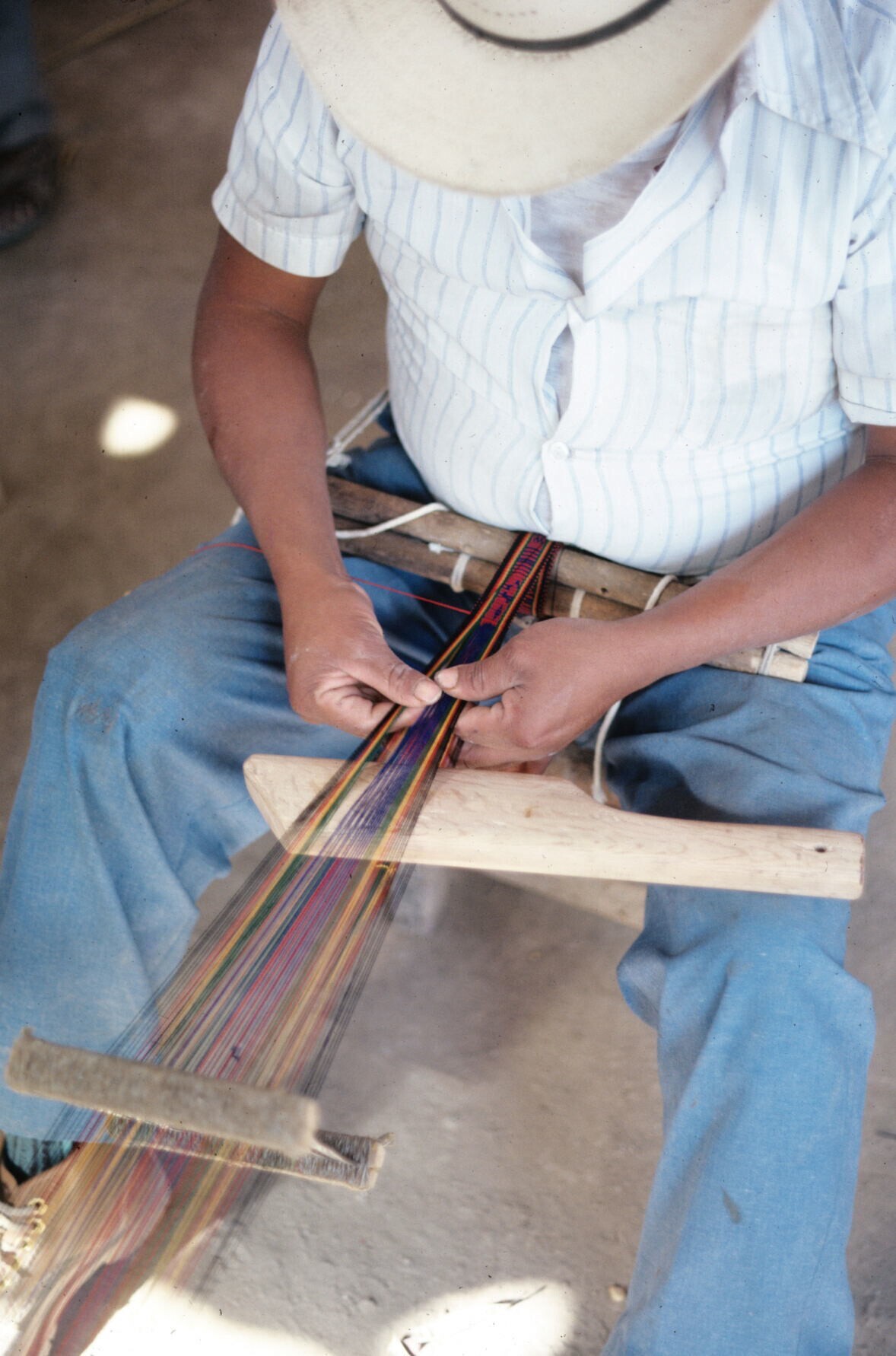 wever José Alfaro met heupweefgetouw, faja (ceintuur...