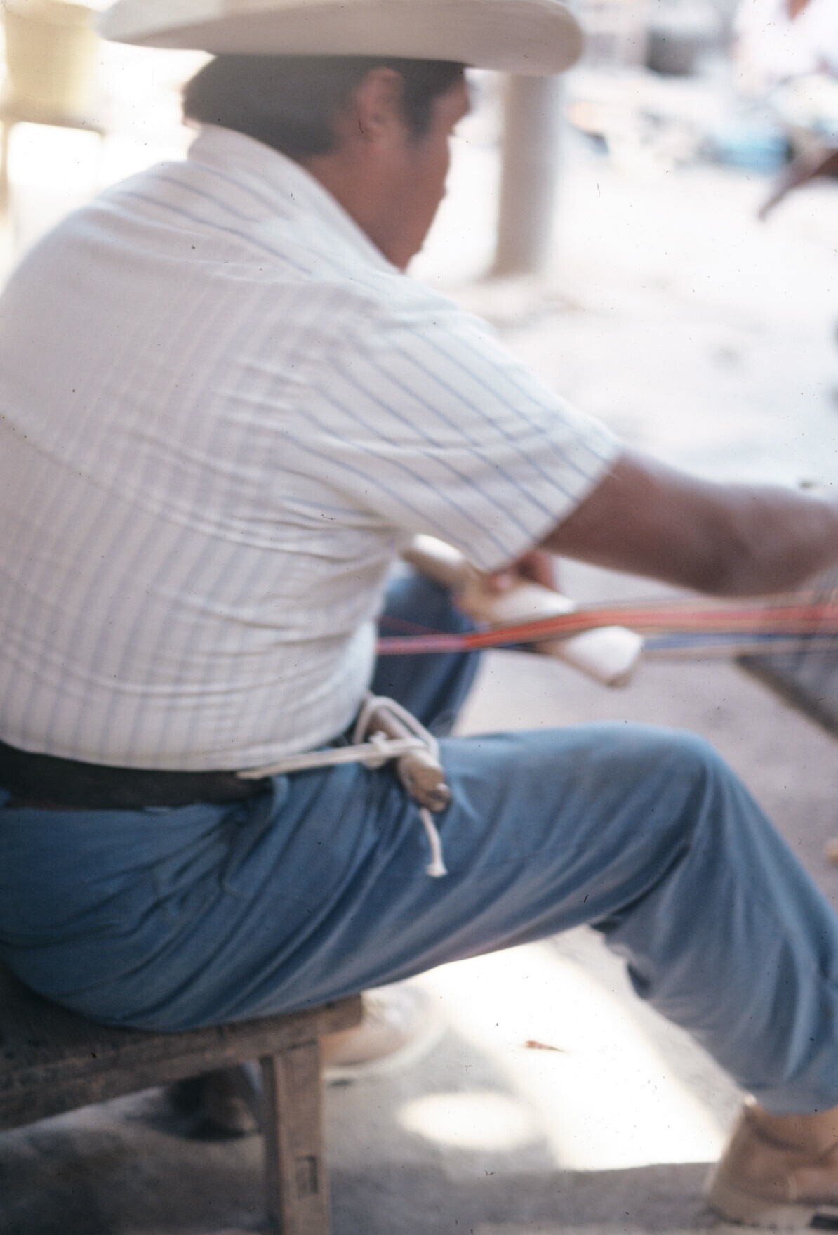 wever José Alfaro, zoyate (palmvezelceintuur) aan fa...