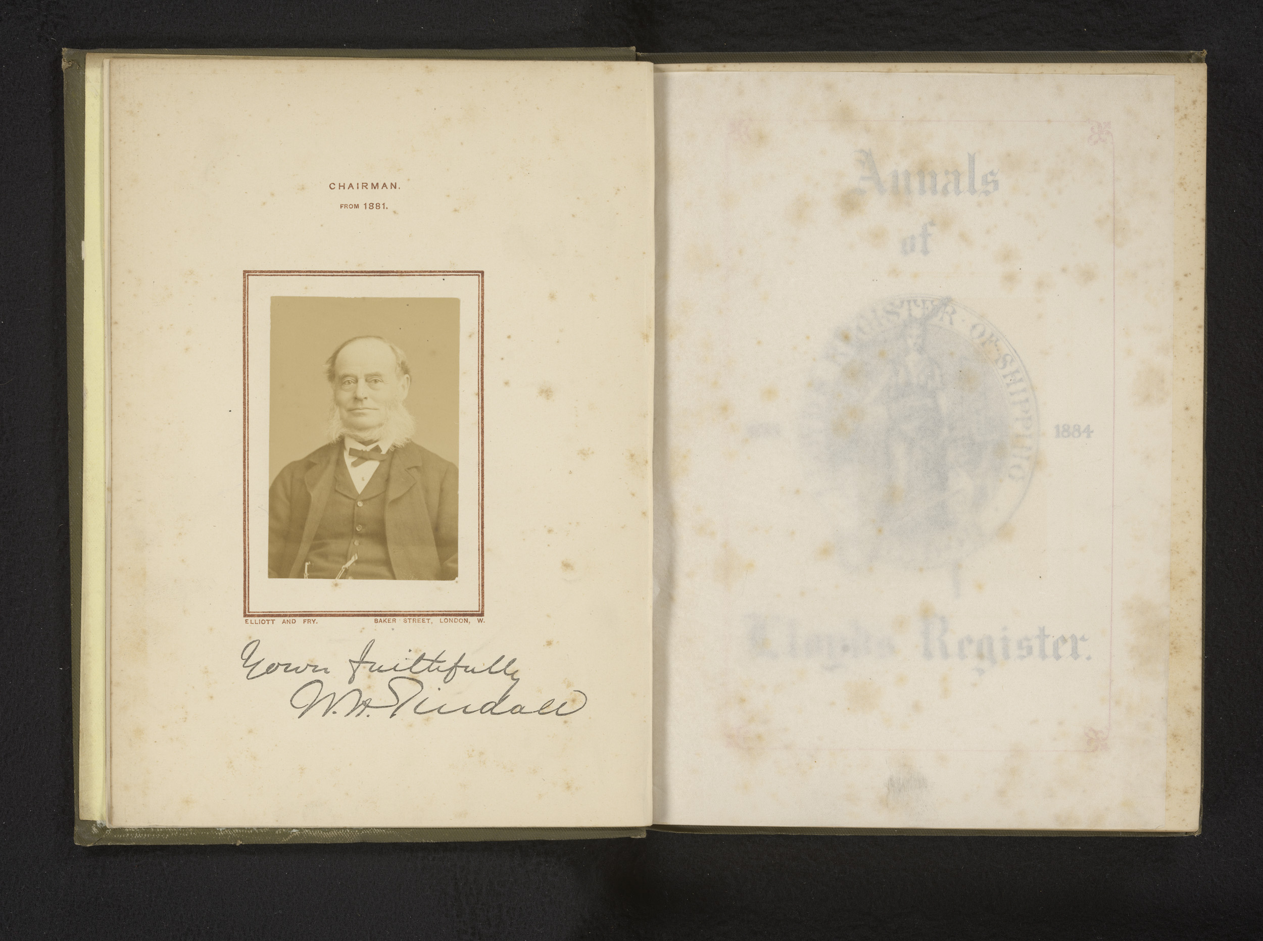 Portret van W.A. Tindall, voorzitter van Lloyd's Reg...