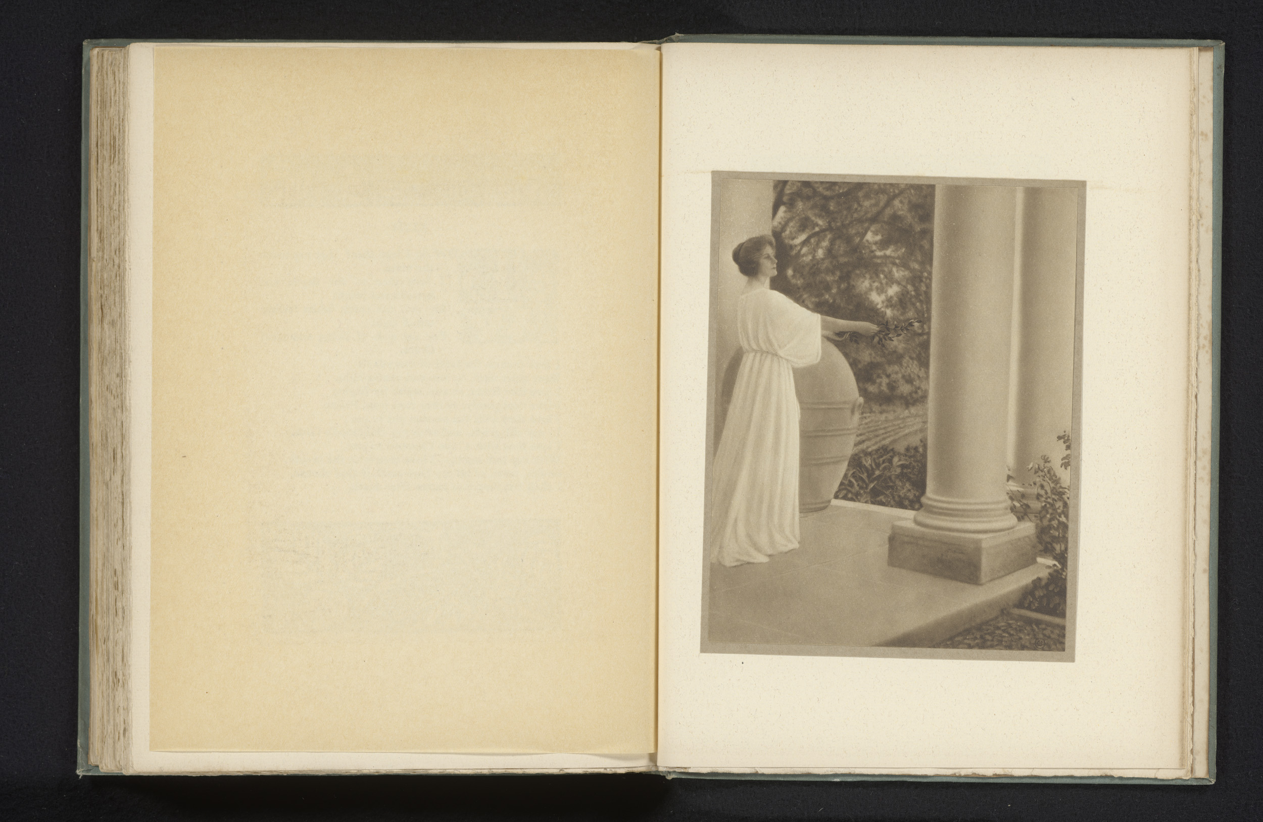 Vrouw met lauriertak bij een tempel