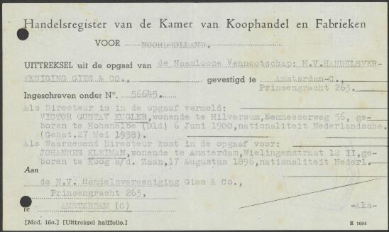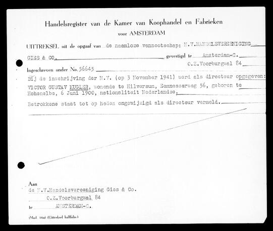 Uittreksel van de Kamer van Koophandel van Gies & Co...