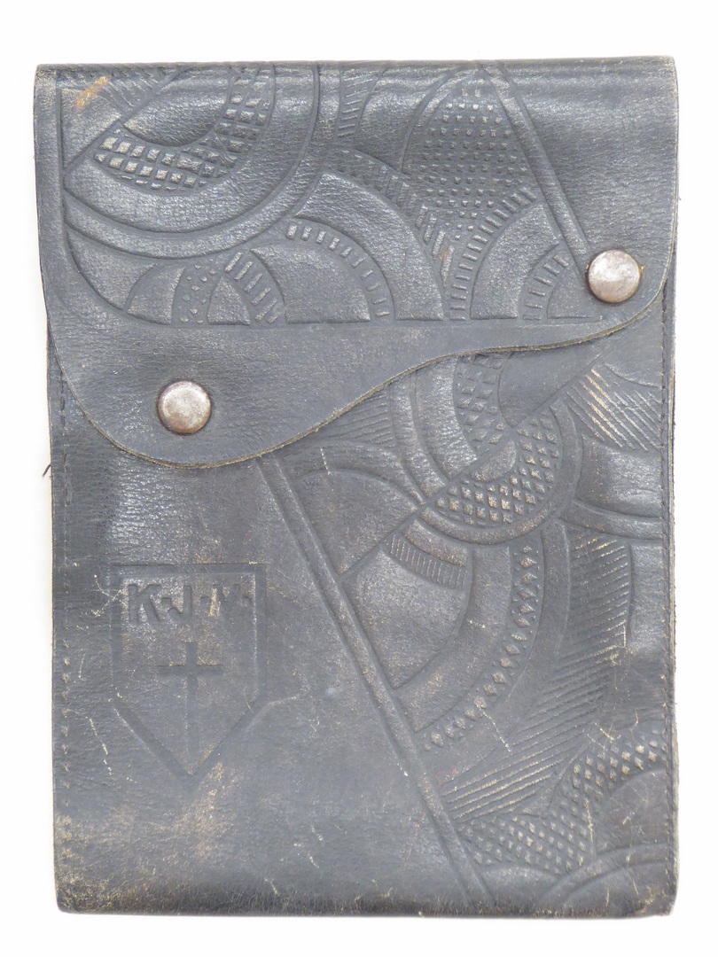 Zwarte beurs met blauw-groen geborduurd kruisje