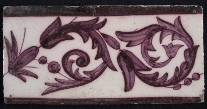 Randtegel met omslingerend decor, kolomhalfje, paars...
