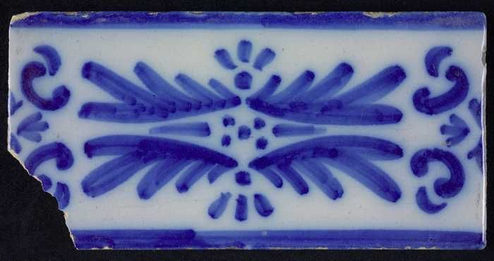 Randtegel met slingerdecor, gekrulde ranken, blauw d...