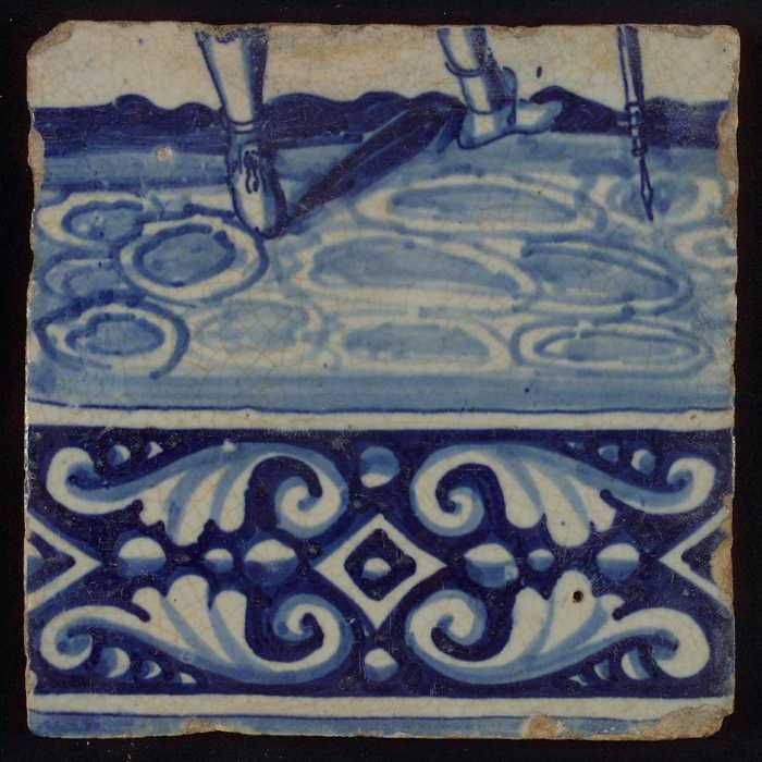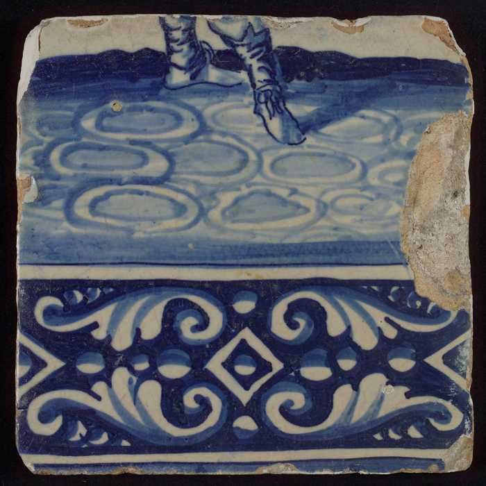 Tegel van tableau met in blauw voeten en gedecoreerd...