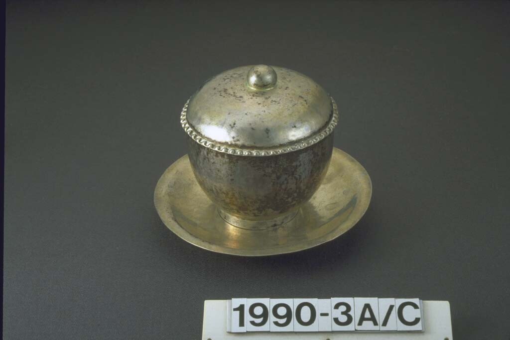 Indo-Javaanse bronzen bidschel met nandi-versiering.