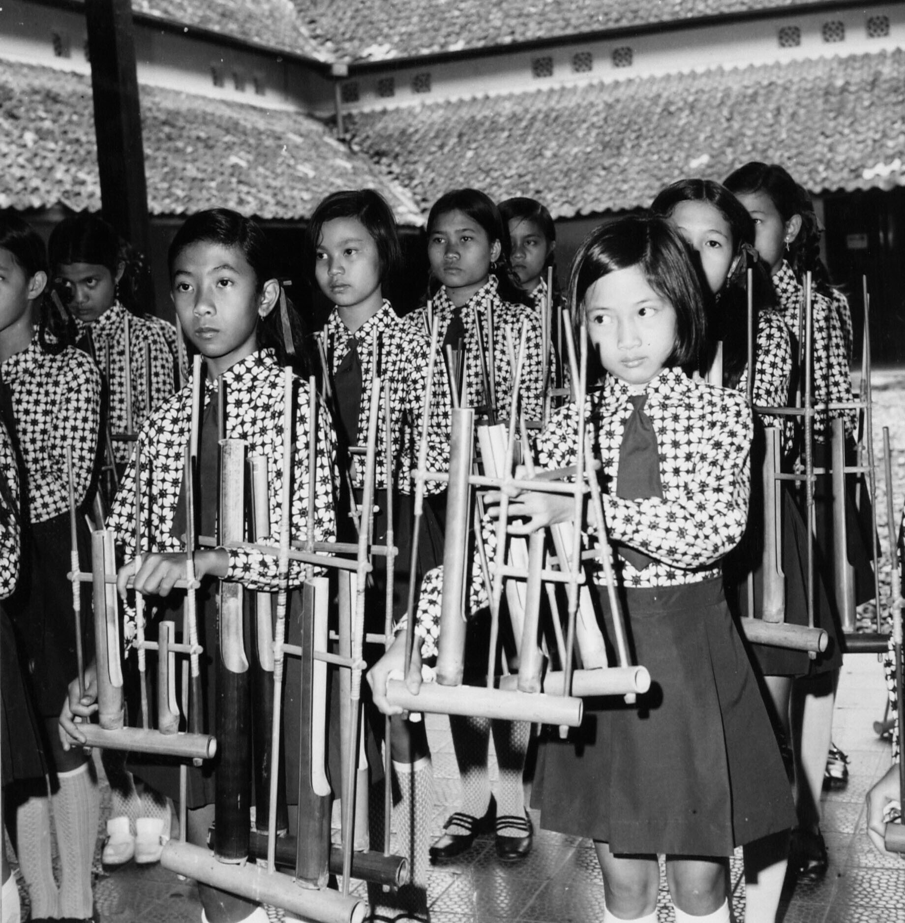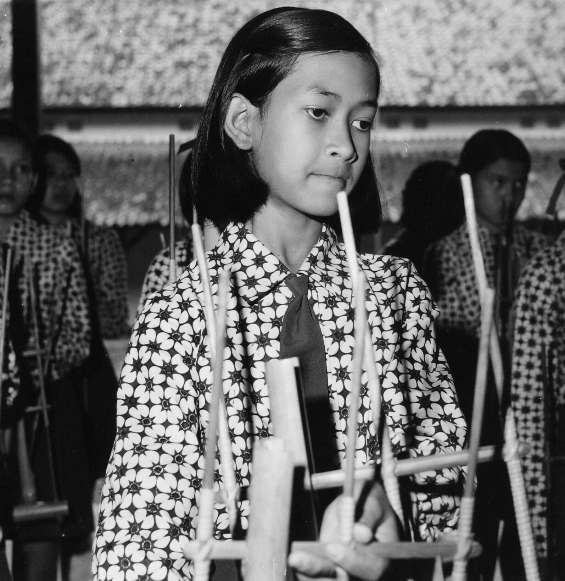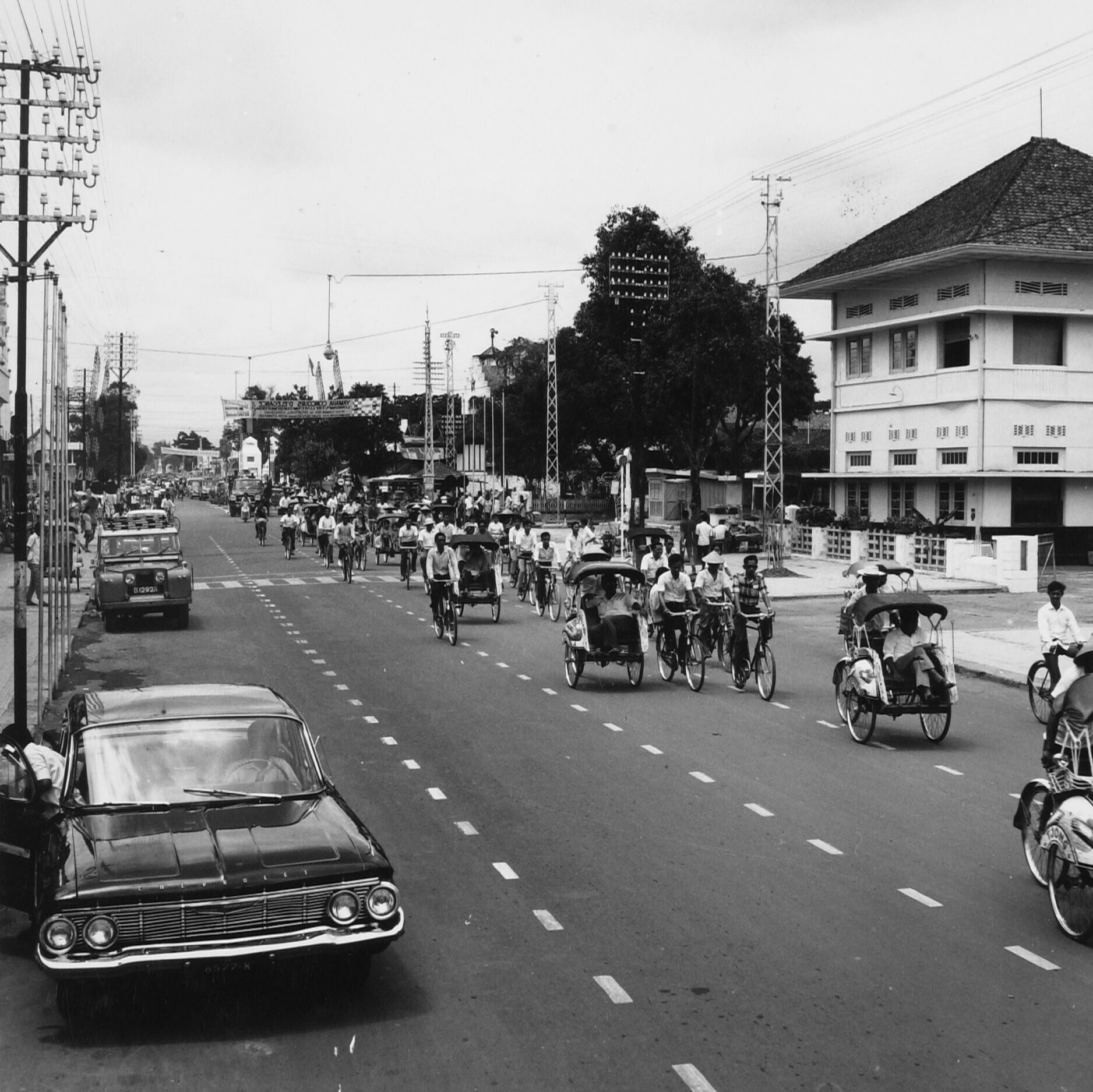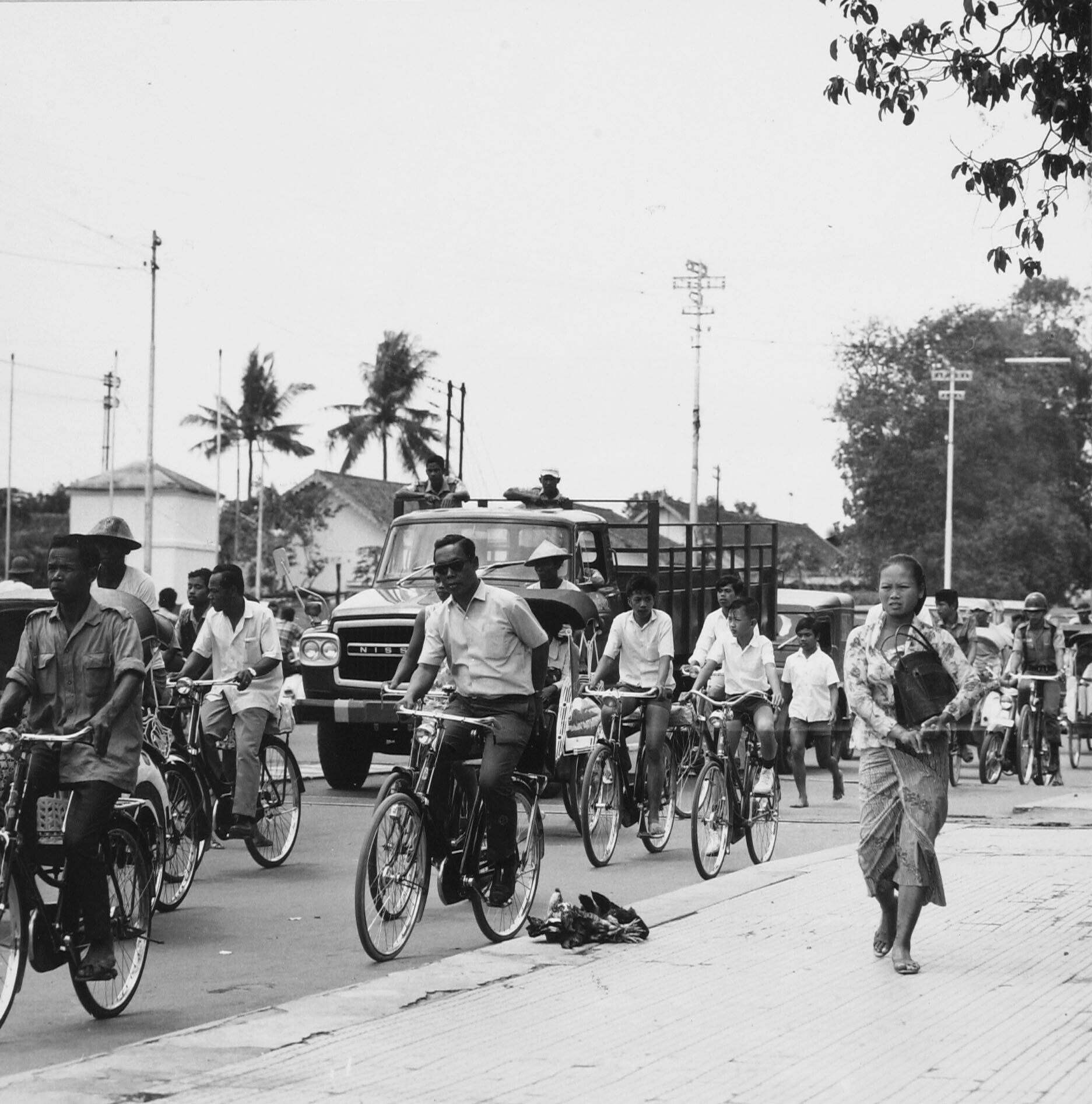 Een verkoper van tempeh op een ophaalbrug in het oud...