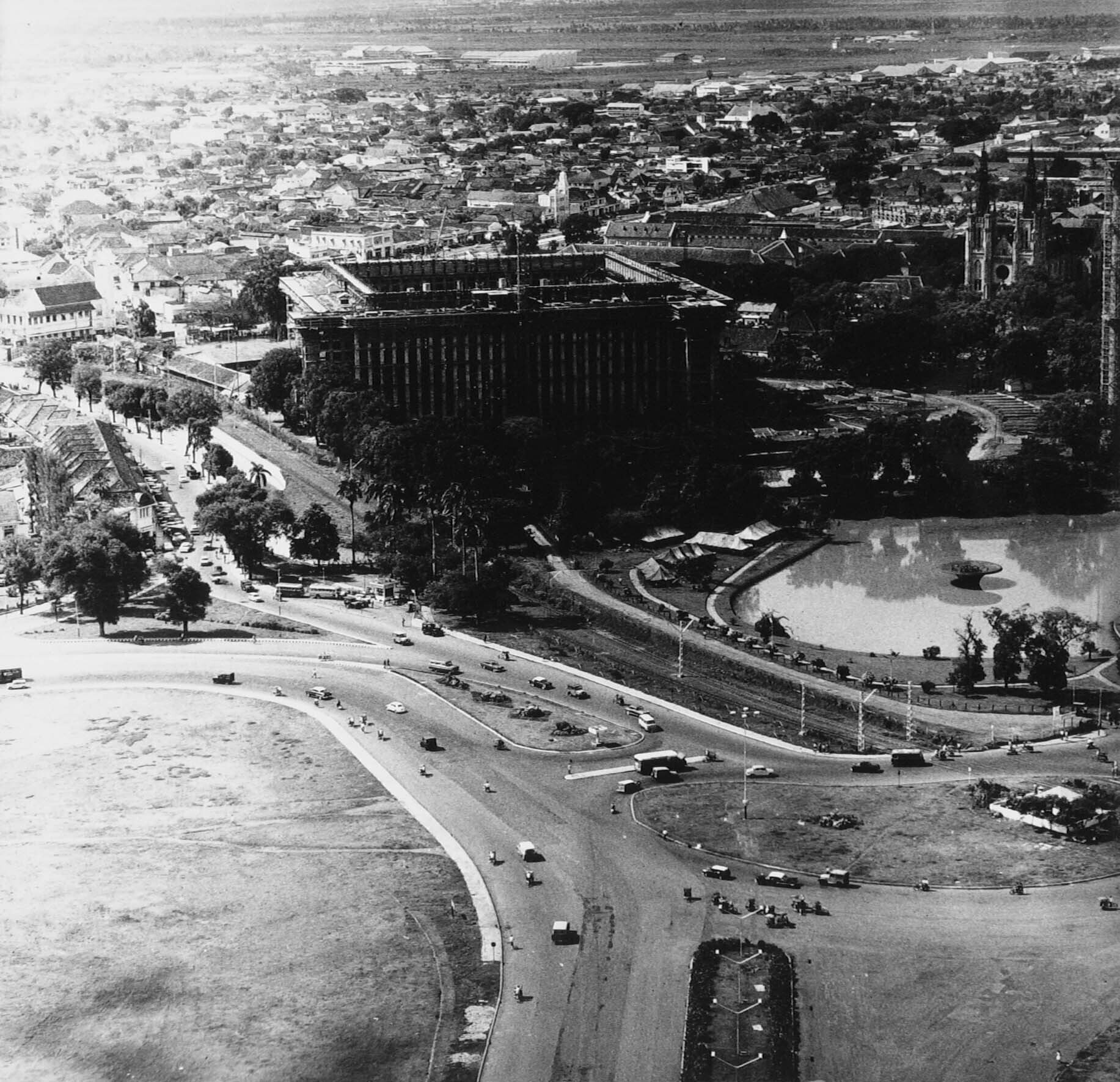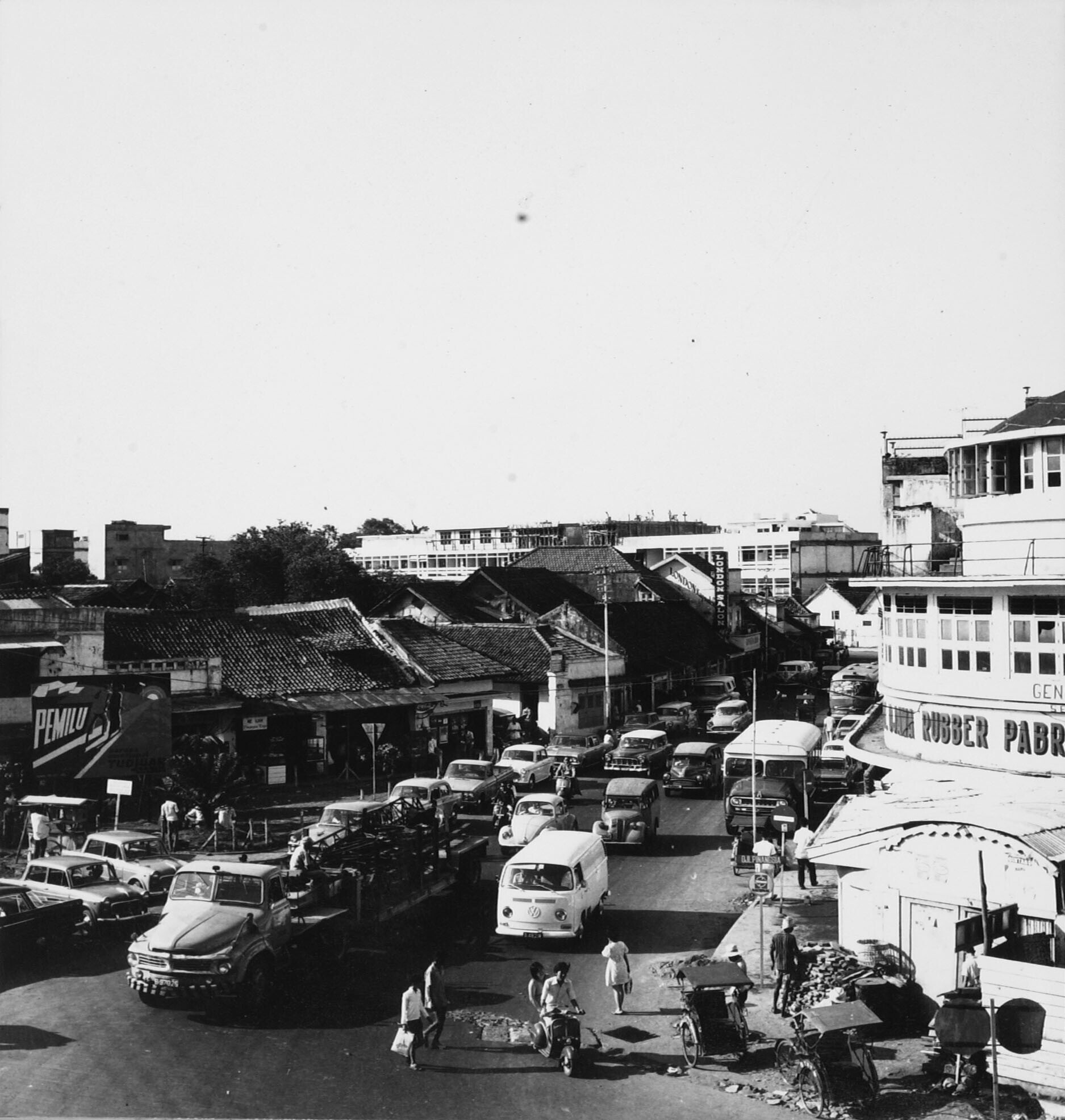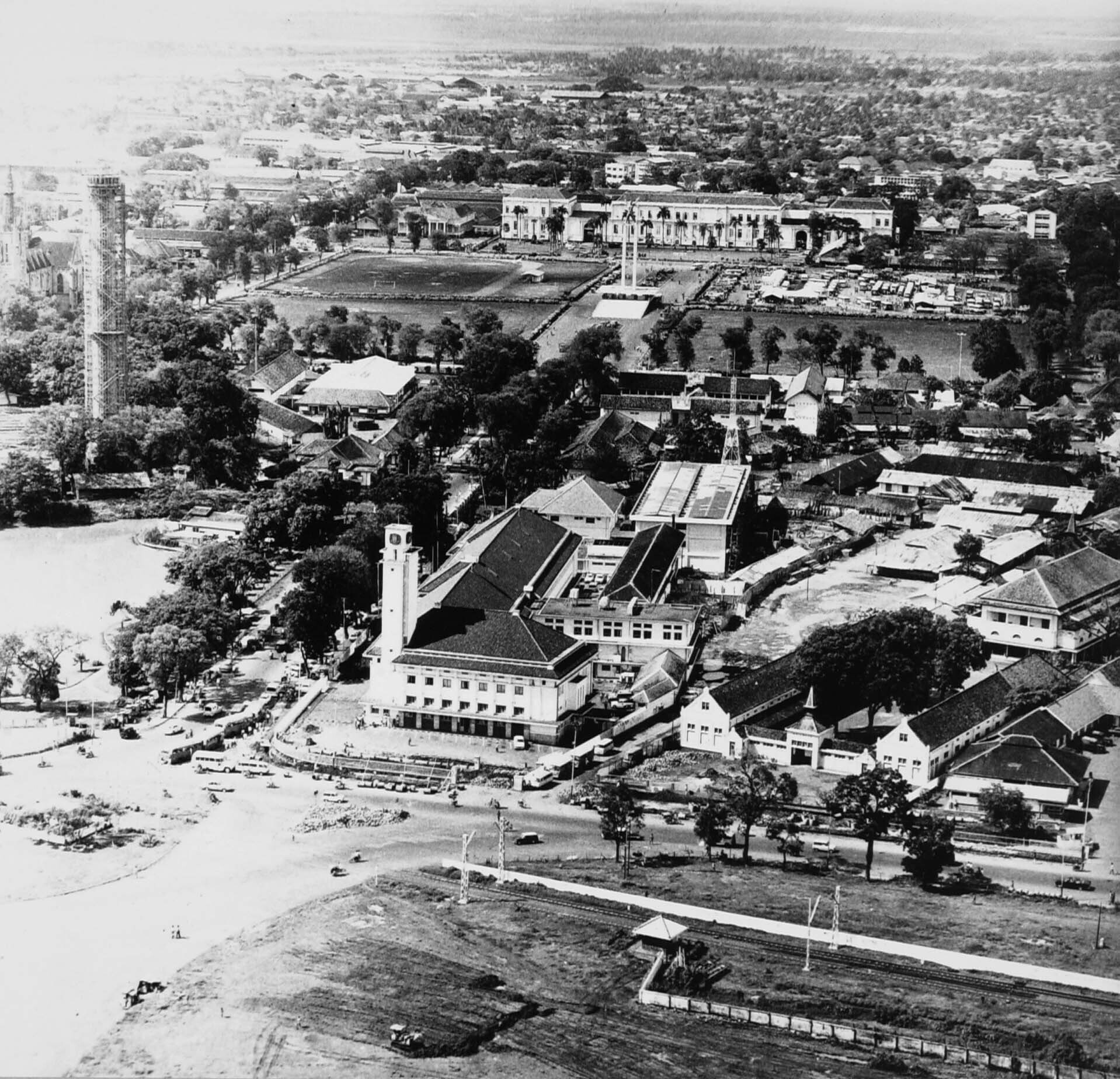 Gezicht op de wijk Menteng vanuit Hotel Kartika Plaza