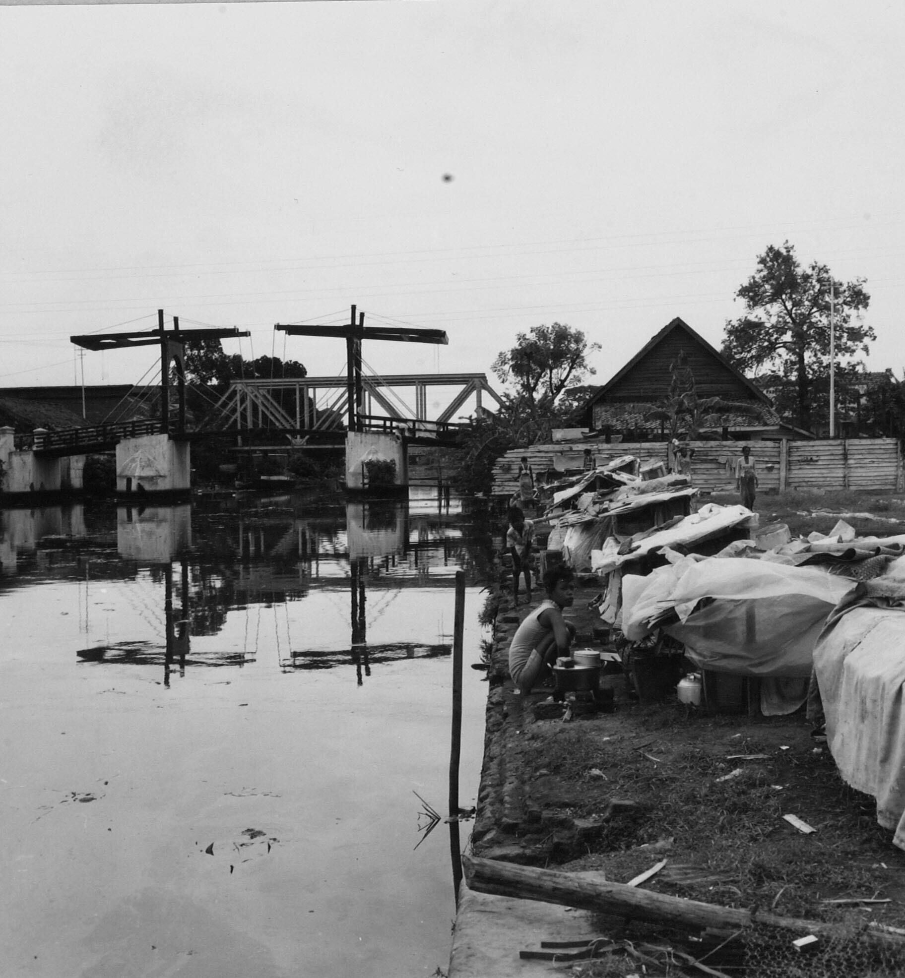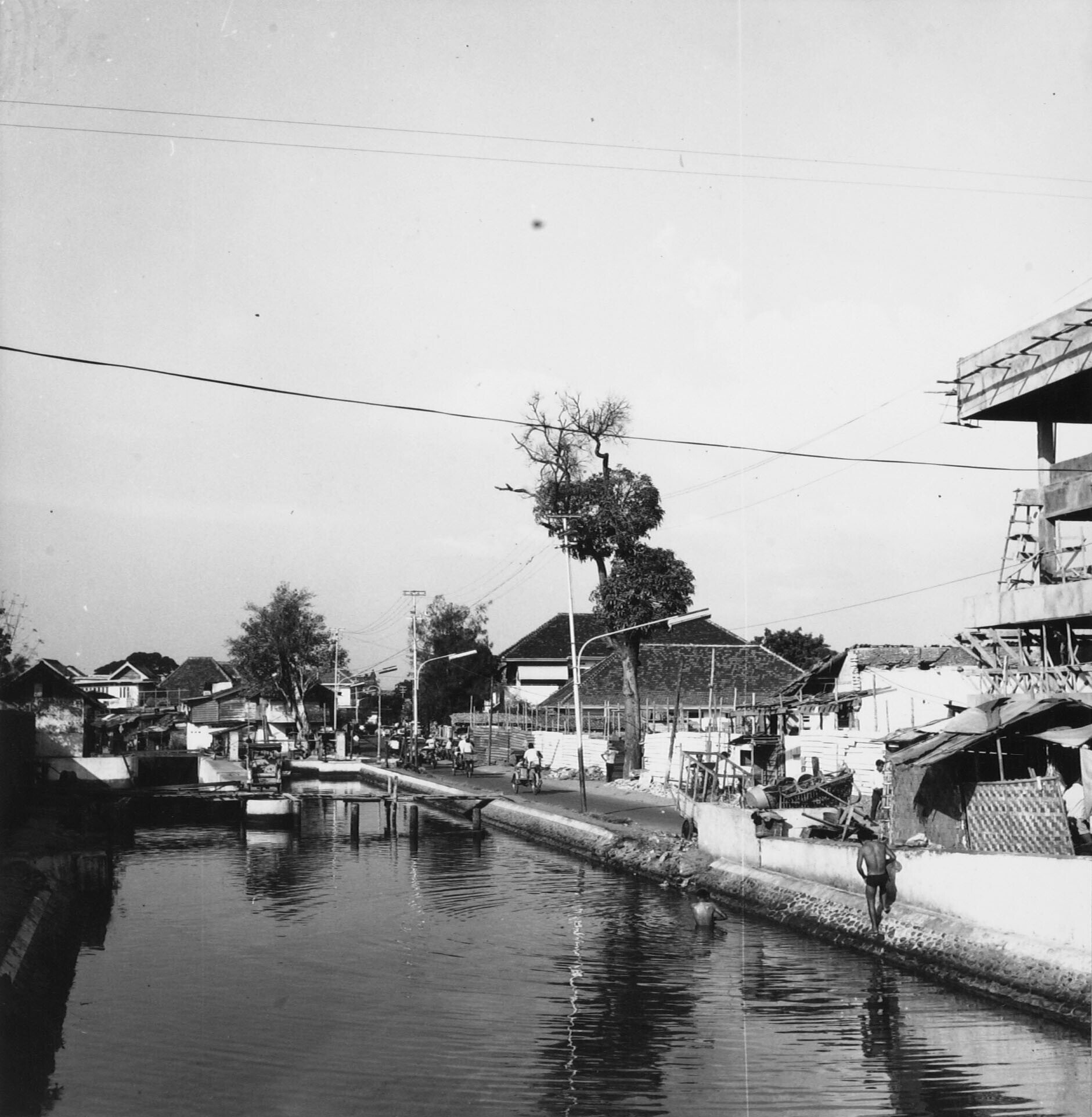 Het kanaal langs de Jalan Sultan Agung met op de oev...