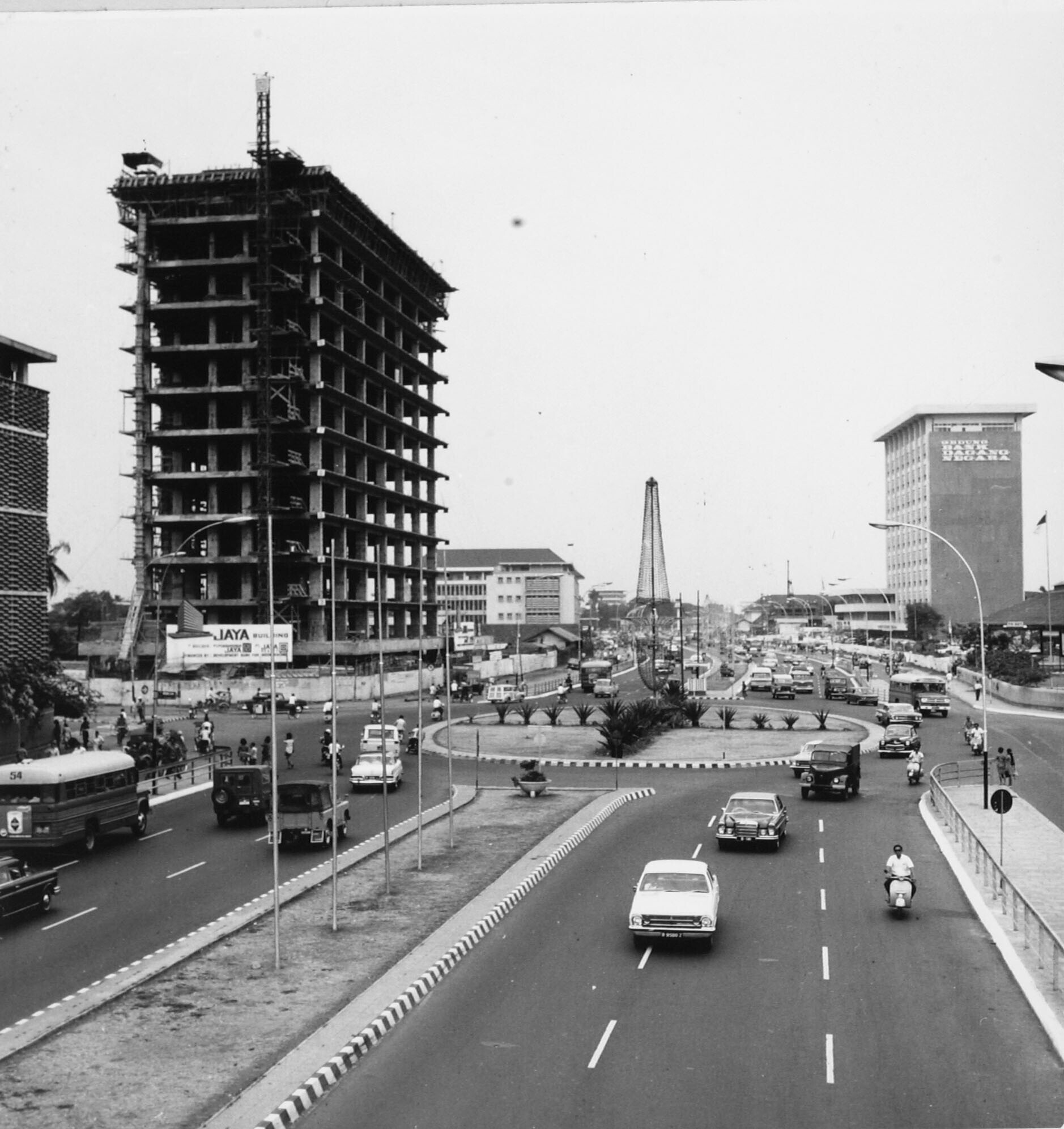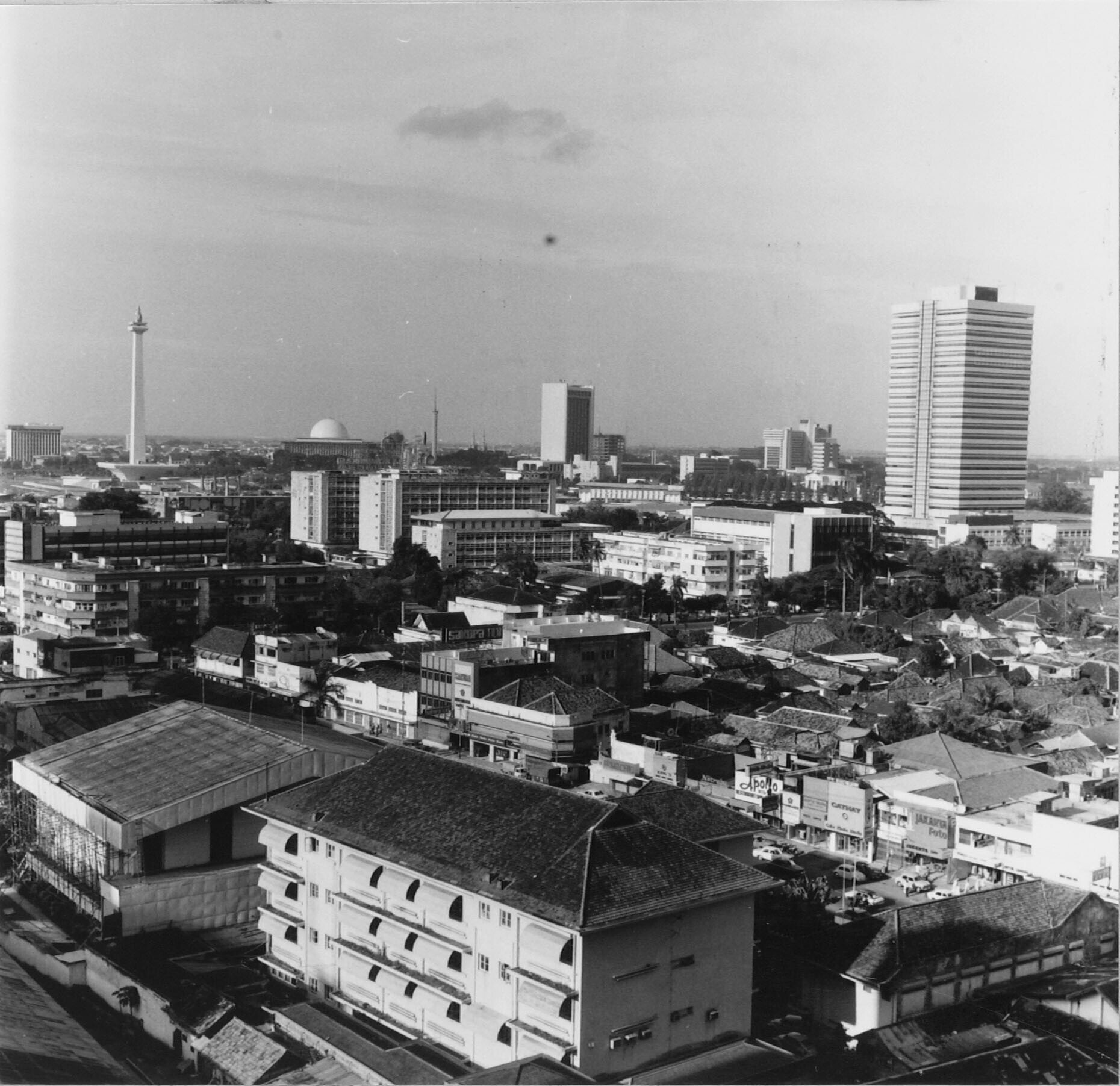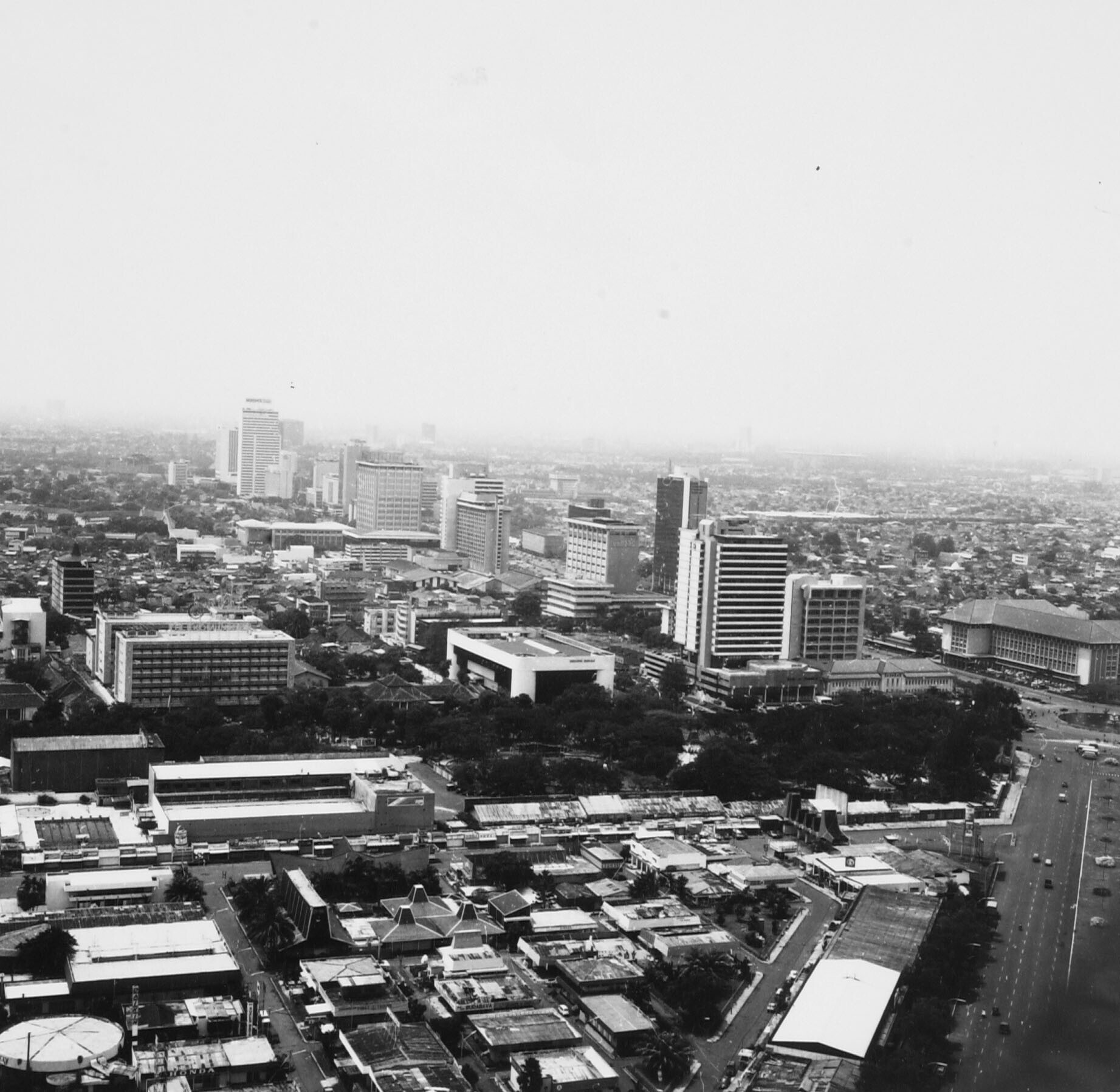 Gezicht op Jakarta vanuit Hotel Kartika Plaza in zui...